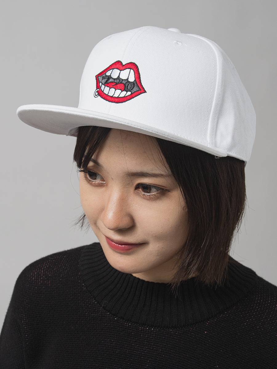 代表的なアイコンである「リップ」、「ウォーク」、「スケボー」の刺繍を配置し、バックはサイズ調整がしやすいスナップバック仕様でユニセックスに着用できます。
