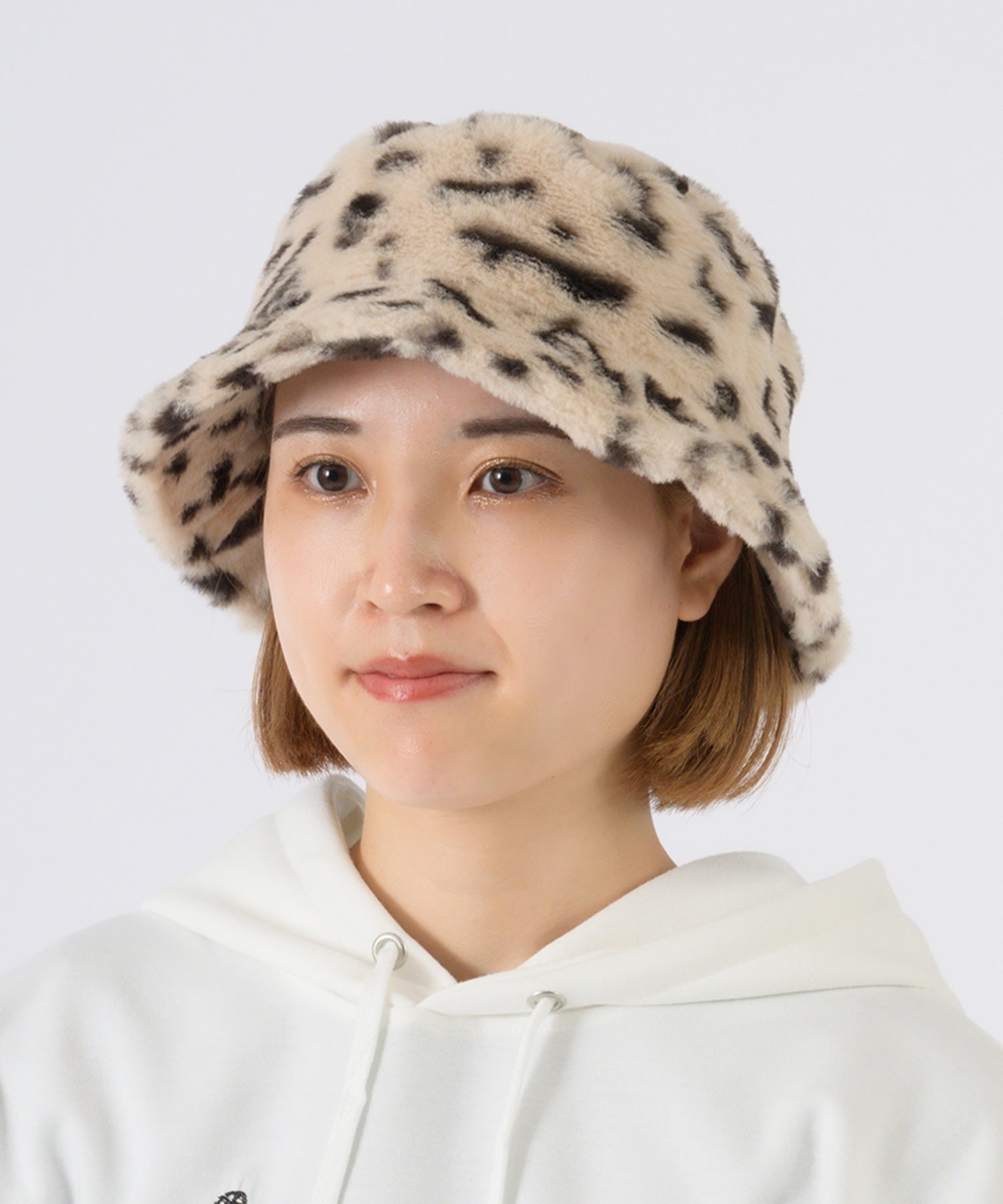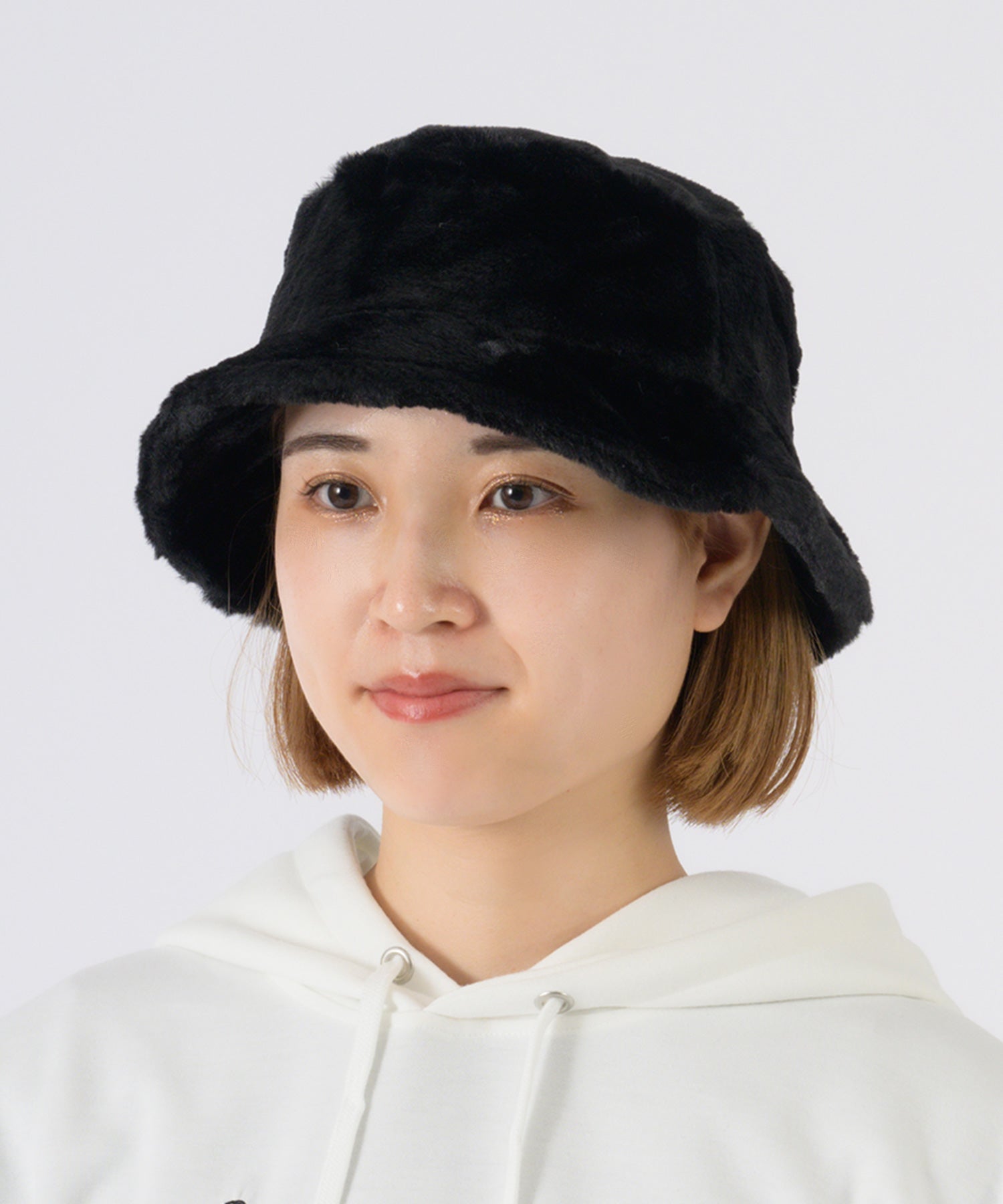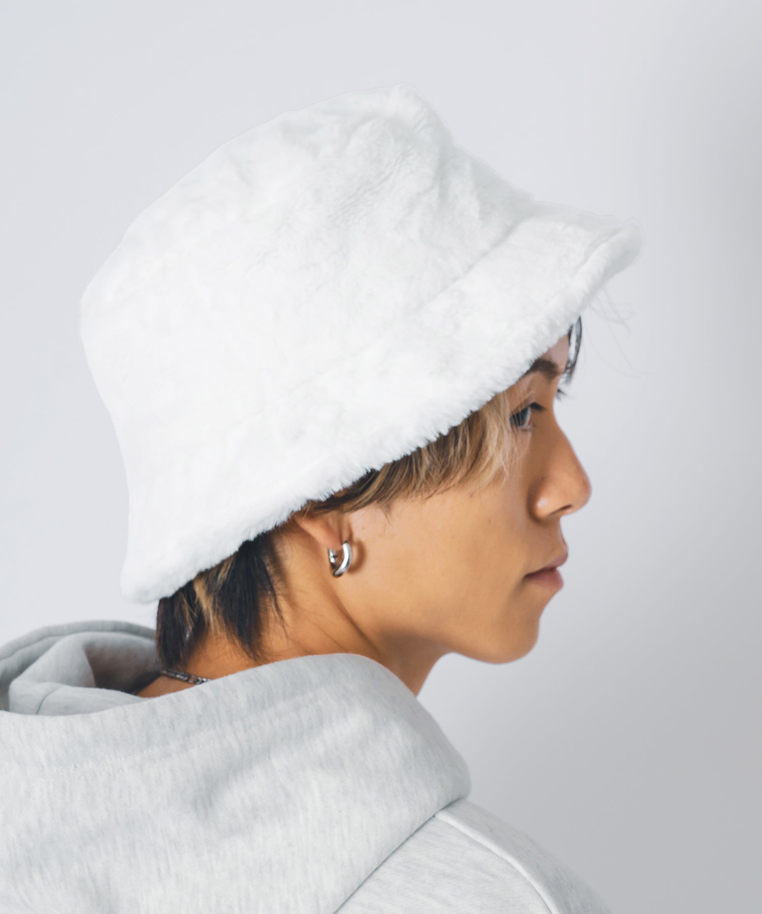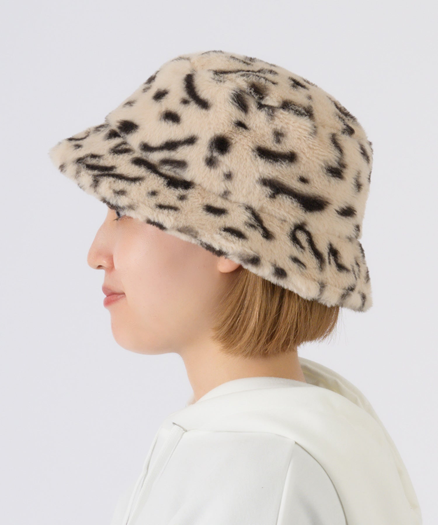 ファー素材のバケットハット。