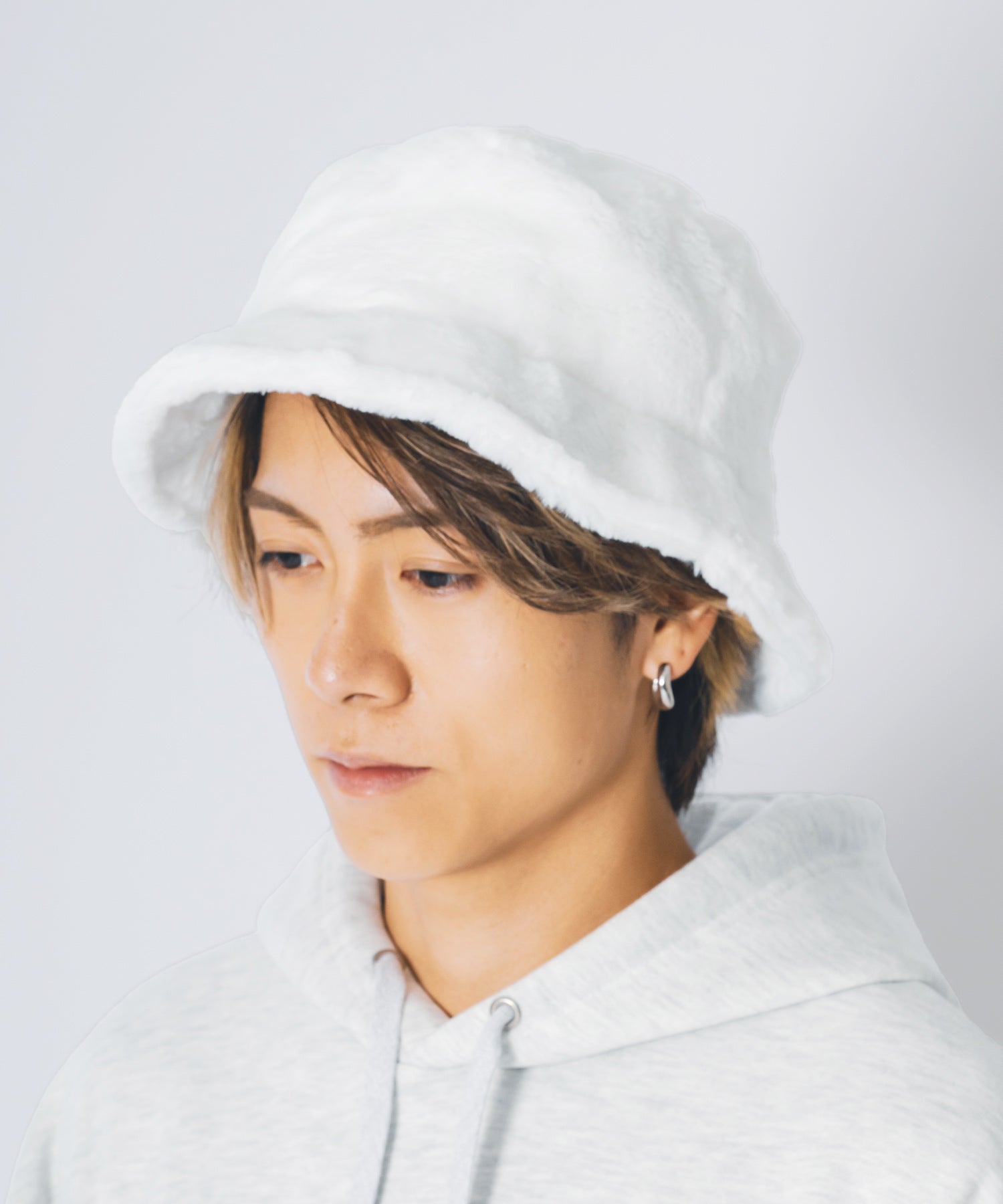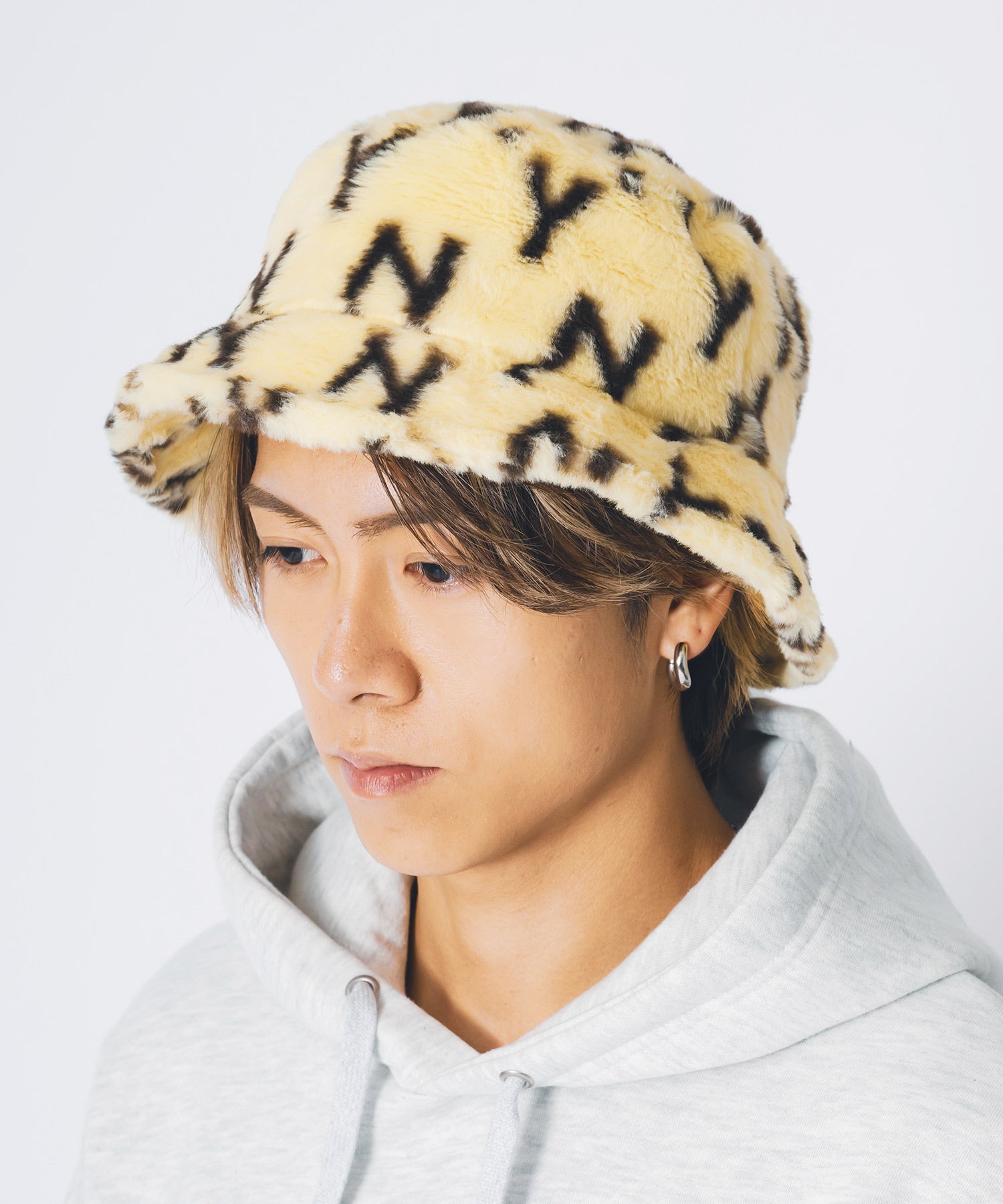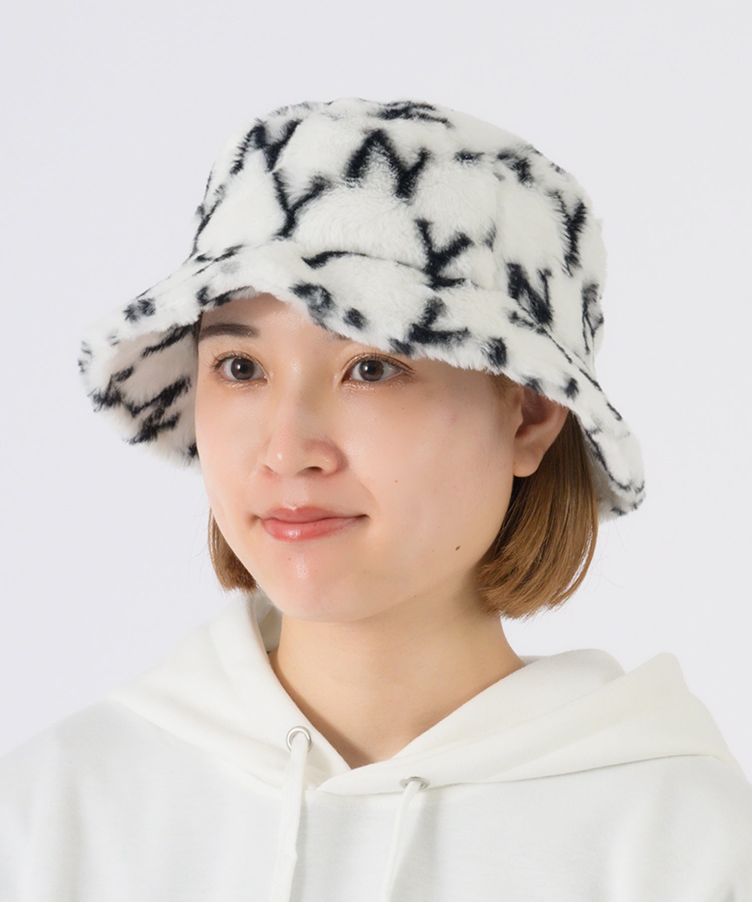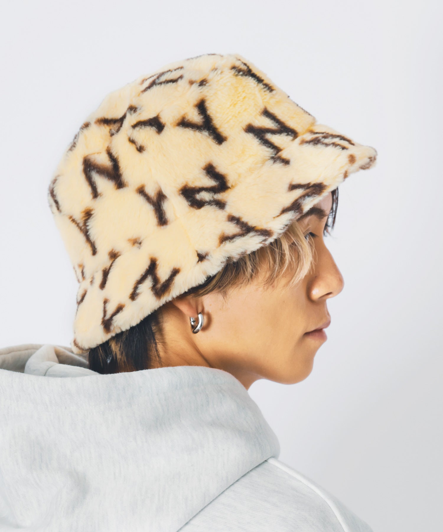 ファー素材のバケットハット。