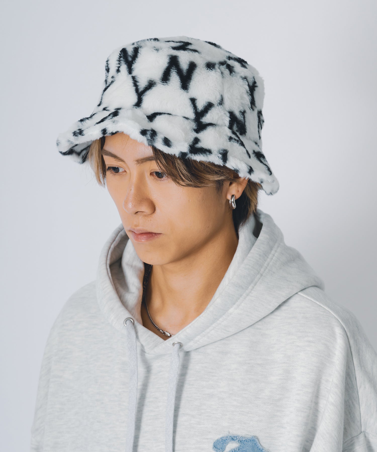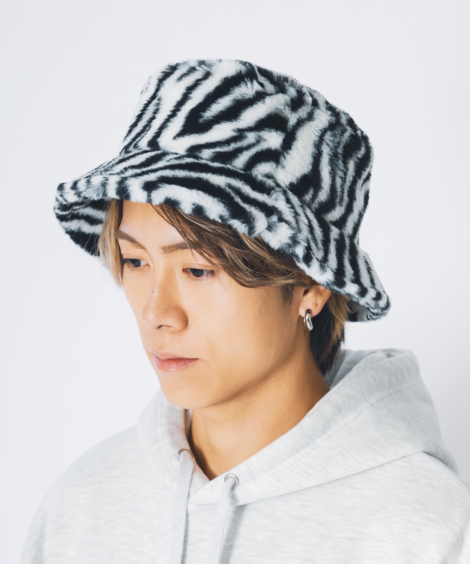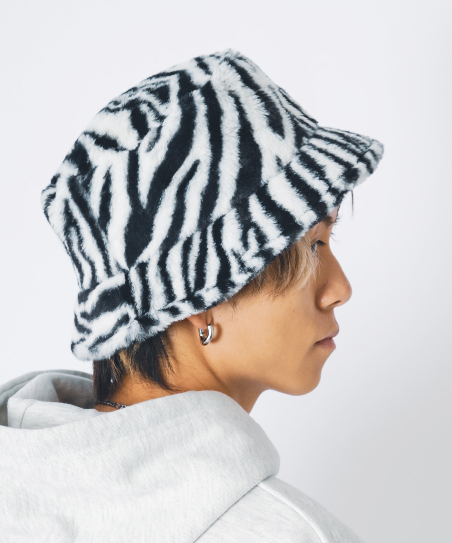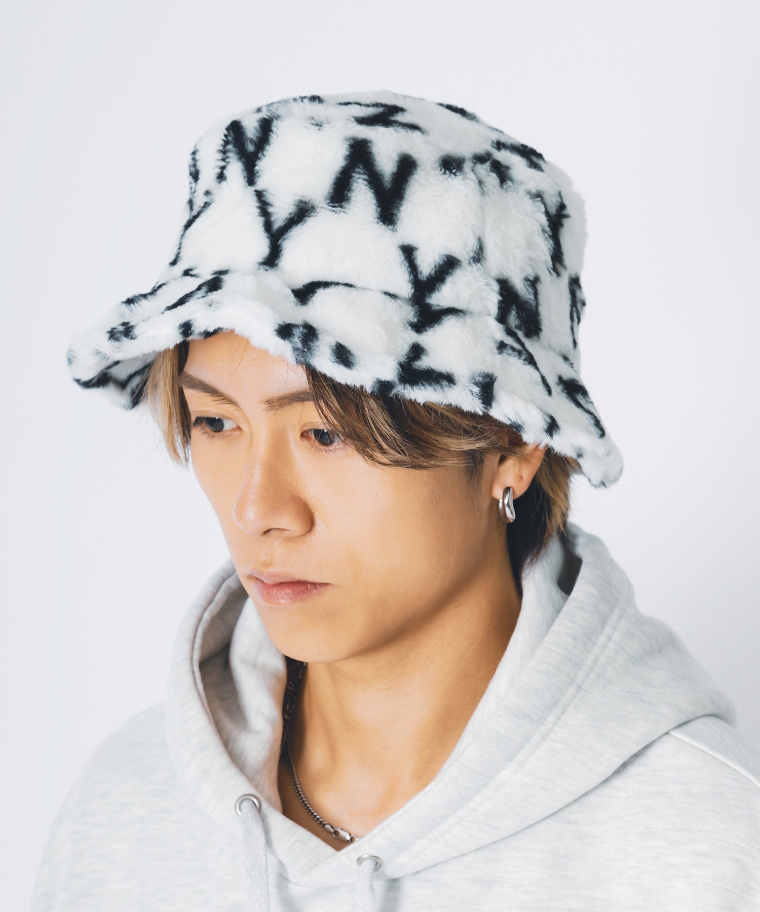 ファー素材のバケットハット。
