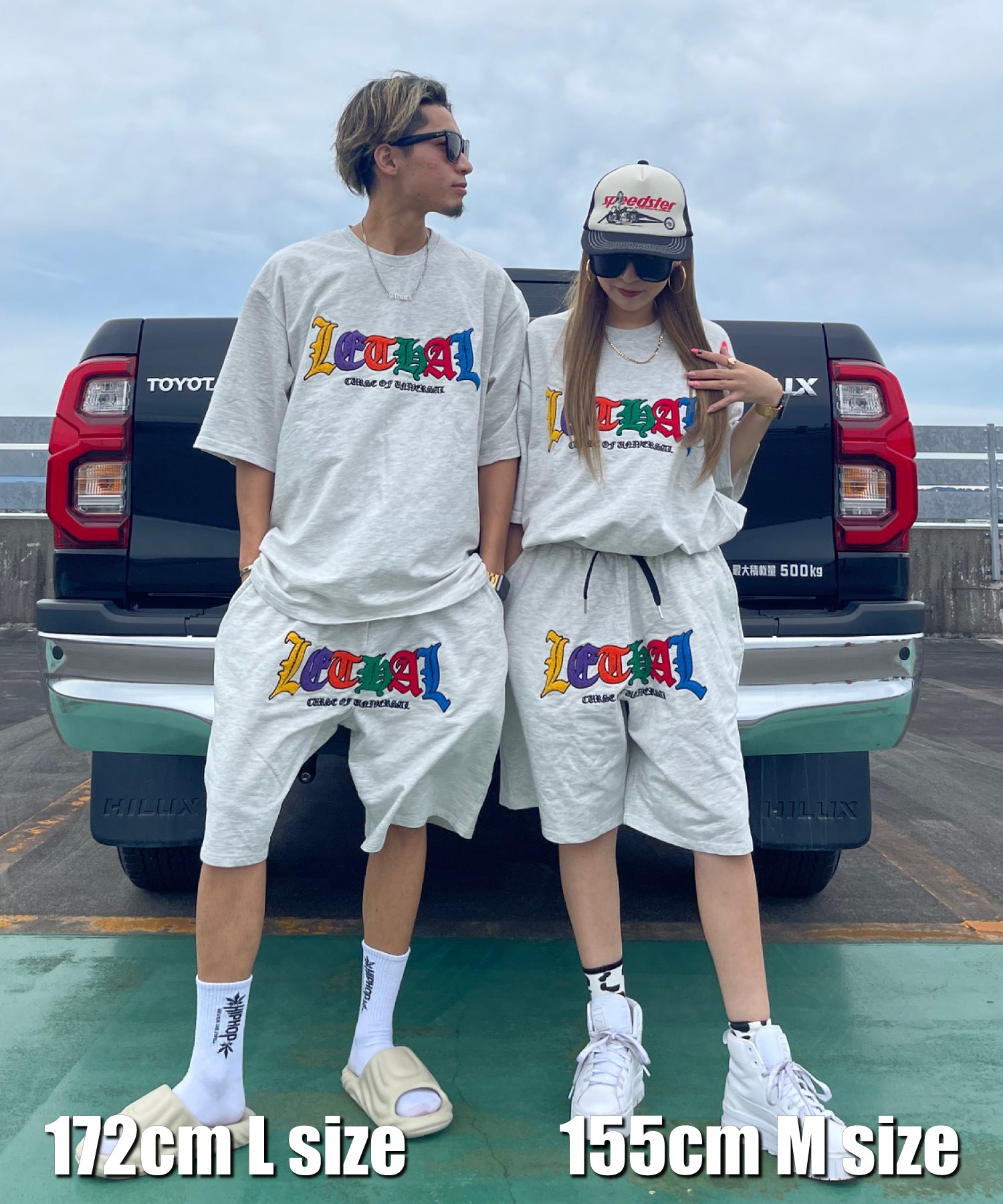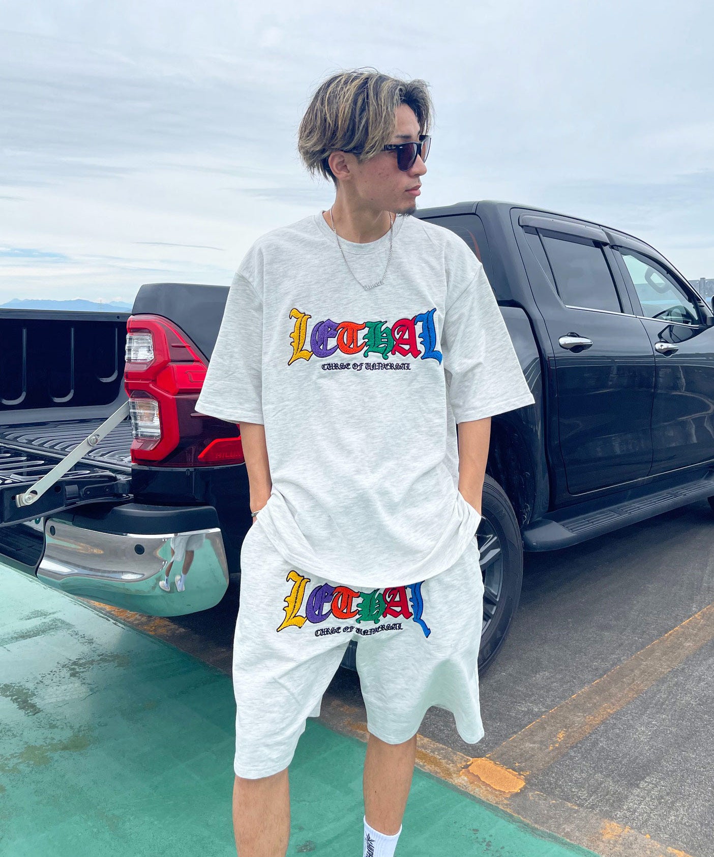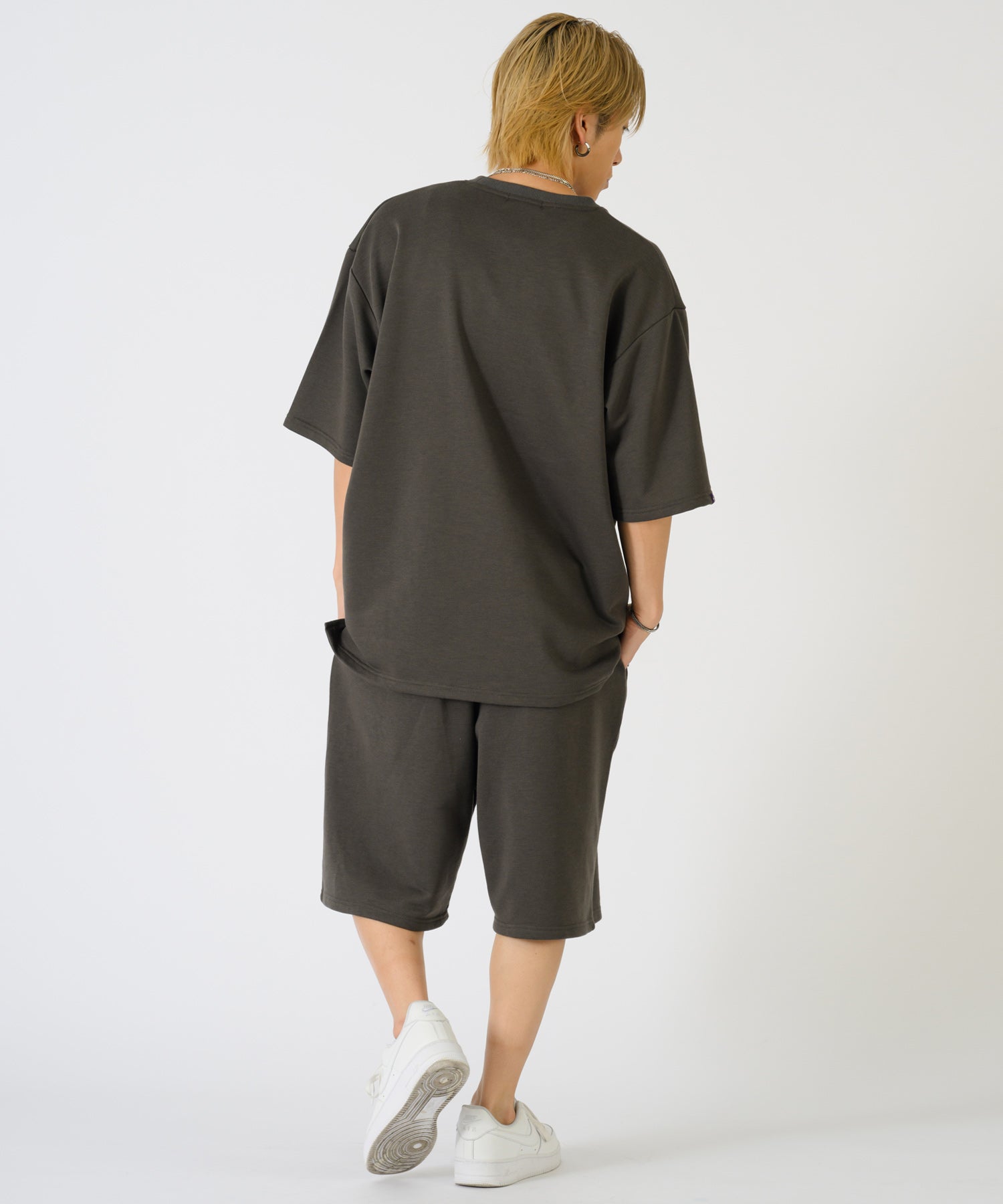 ドロップショルダーの程よいオーバーサイズ感のTシャツとぐウエストがゴム仕様でリラックスして履けるショートパンツ