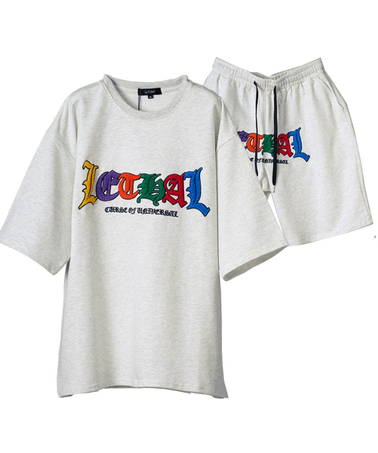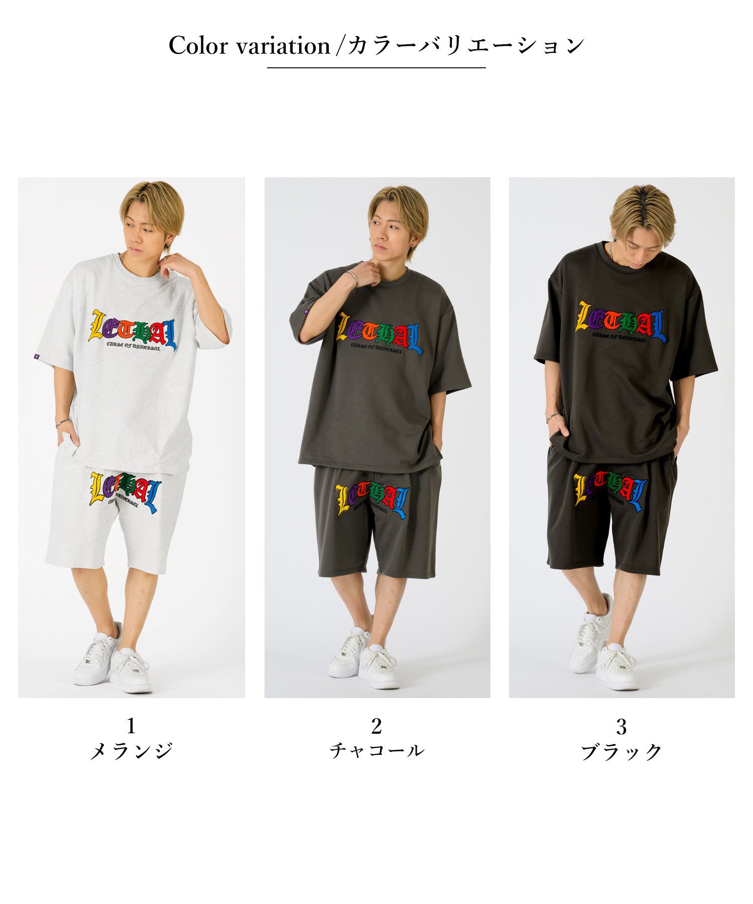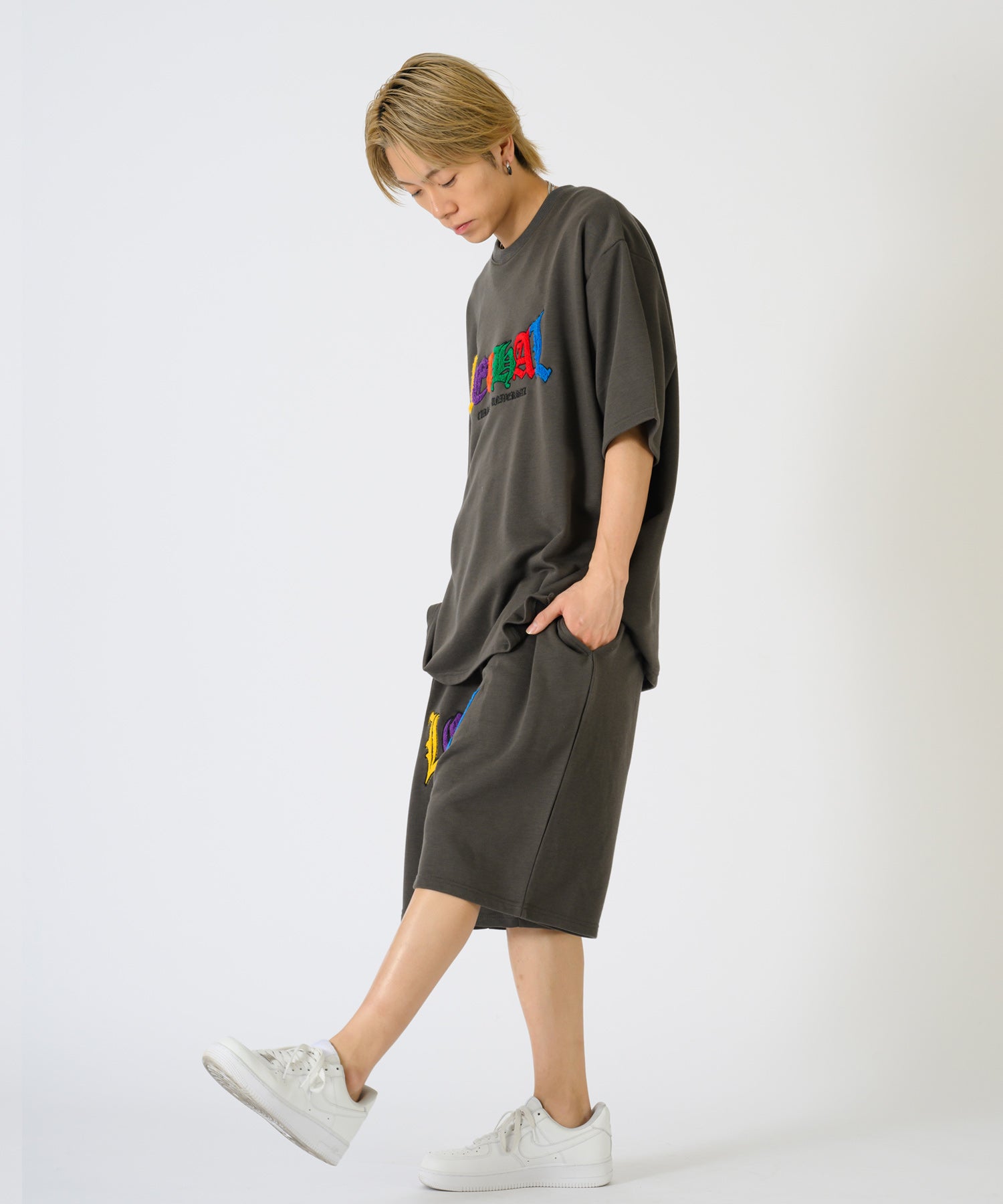 カラフルな刺繍がかわいいTシャツとショートパンツのセットアップ