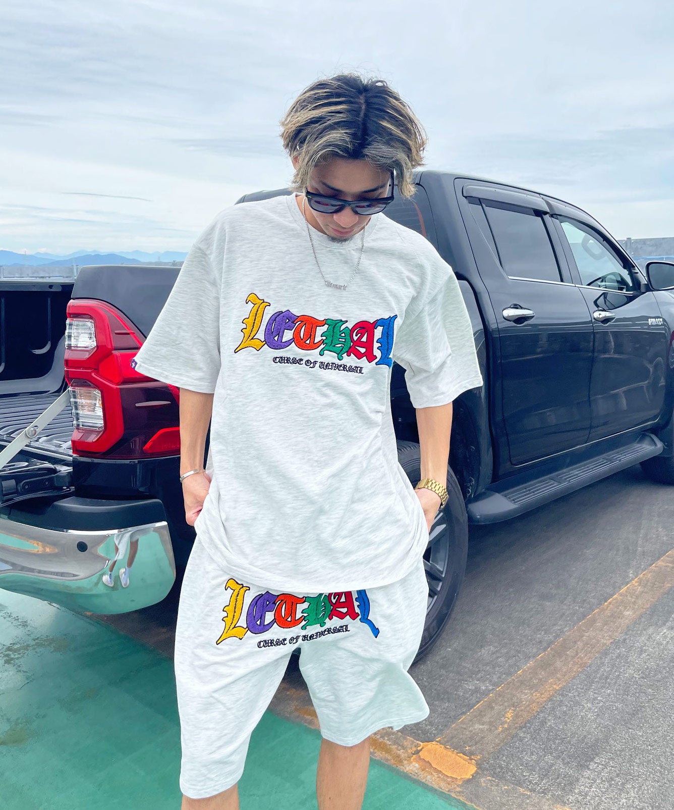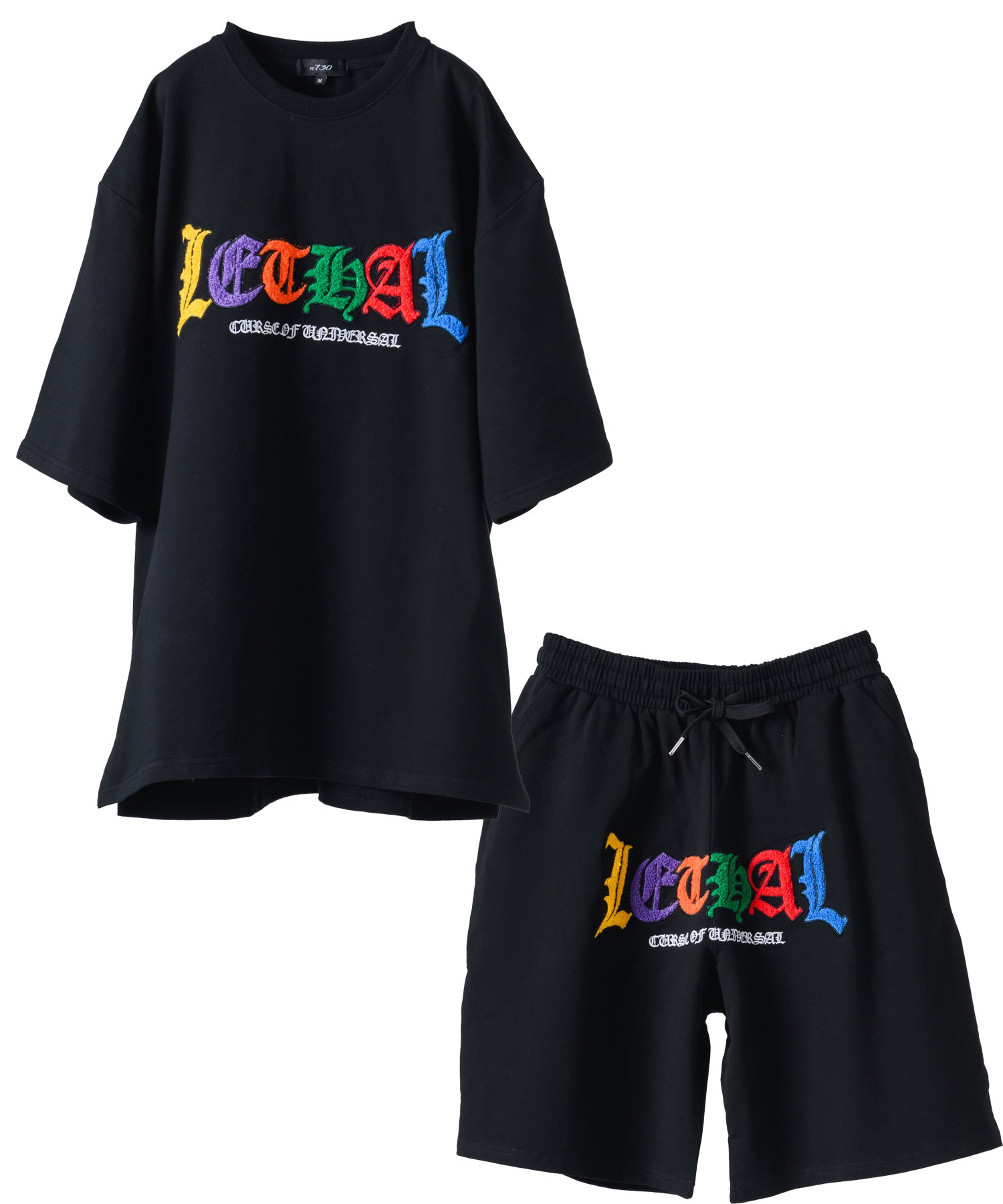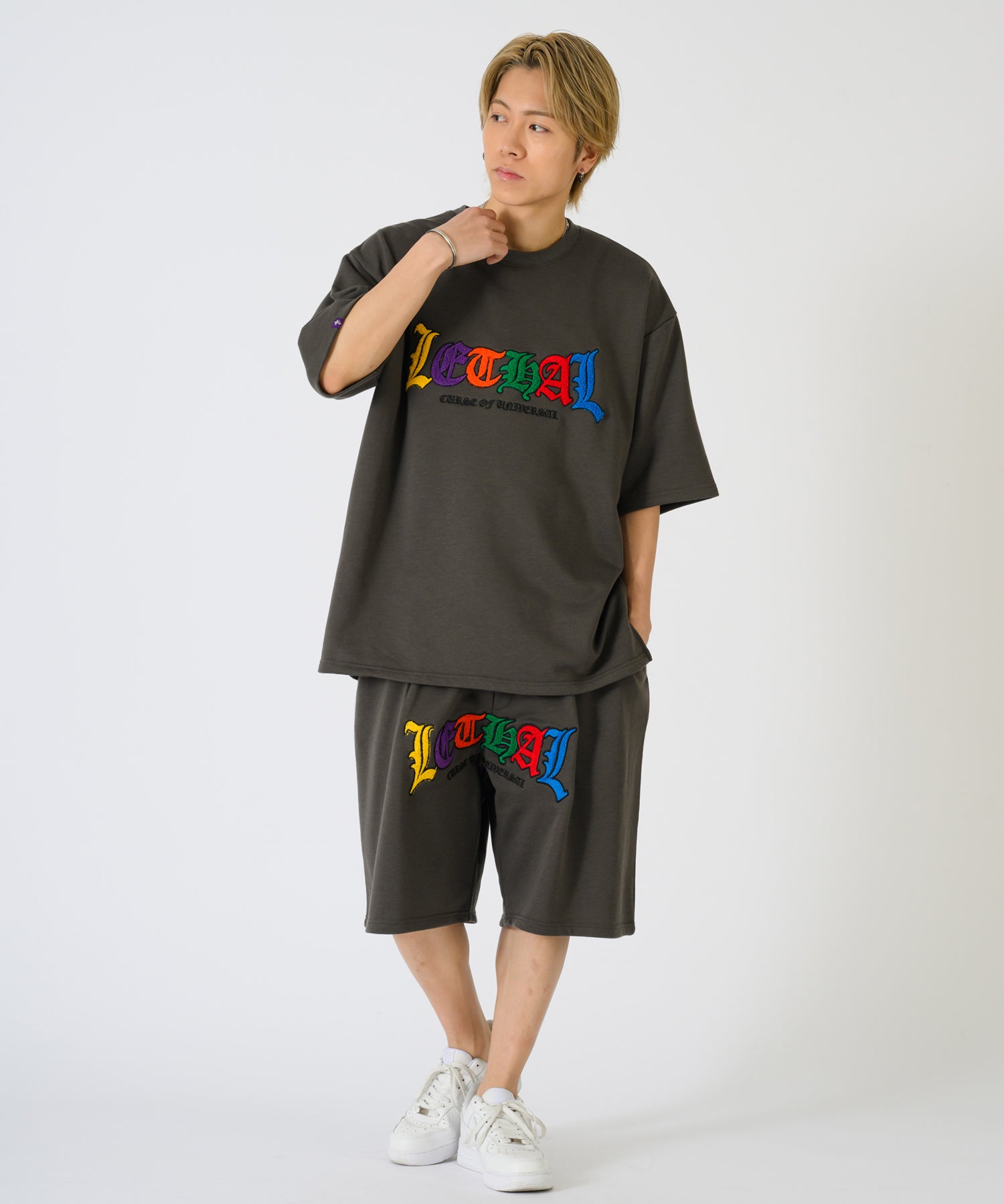 カラフルな刺繍がかわいいTシャツとショートパンツのセットアップ