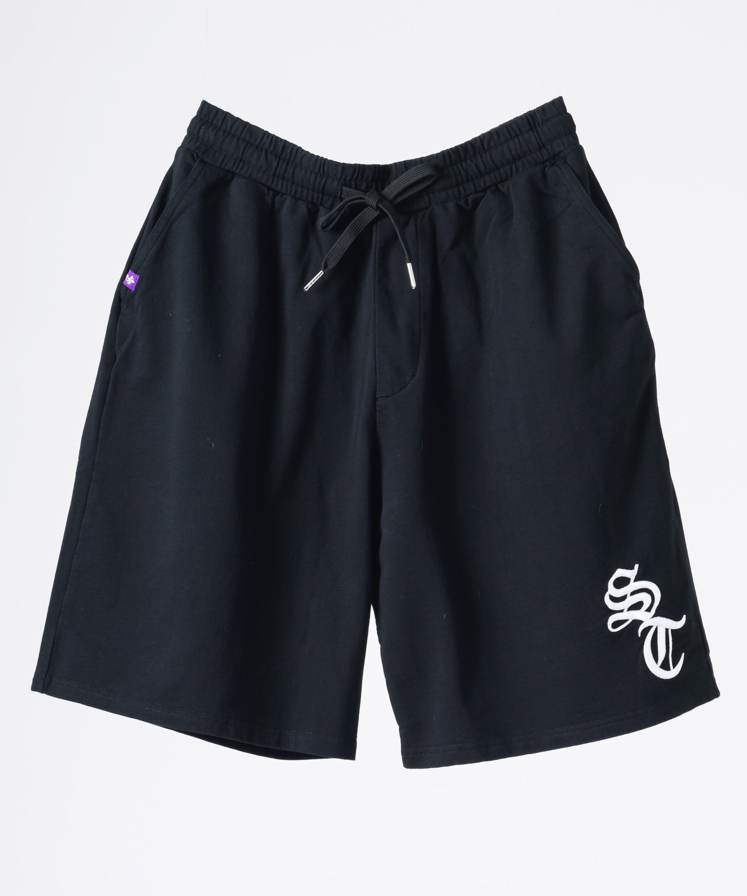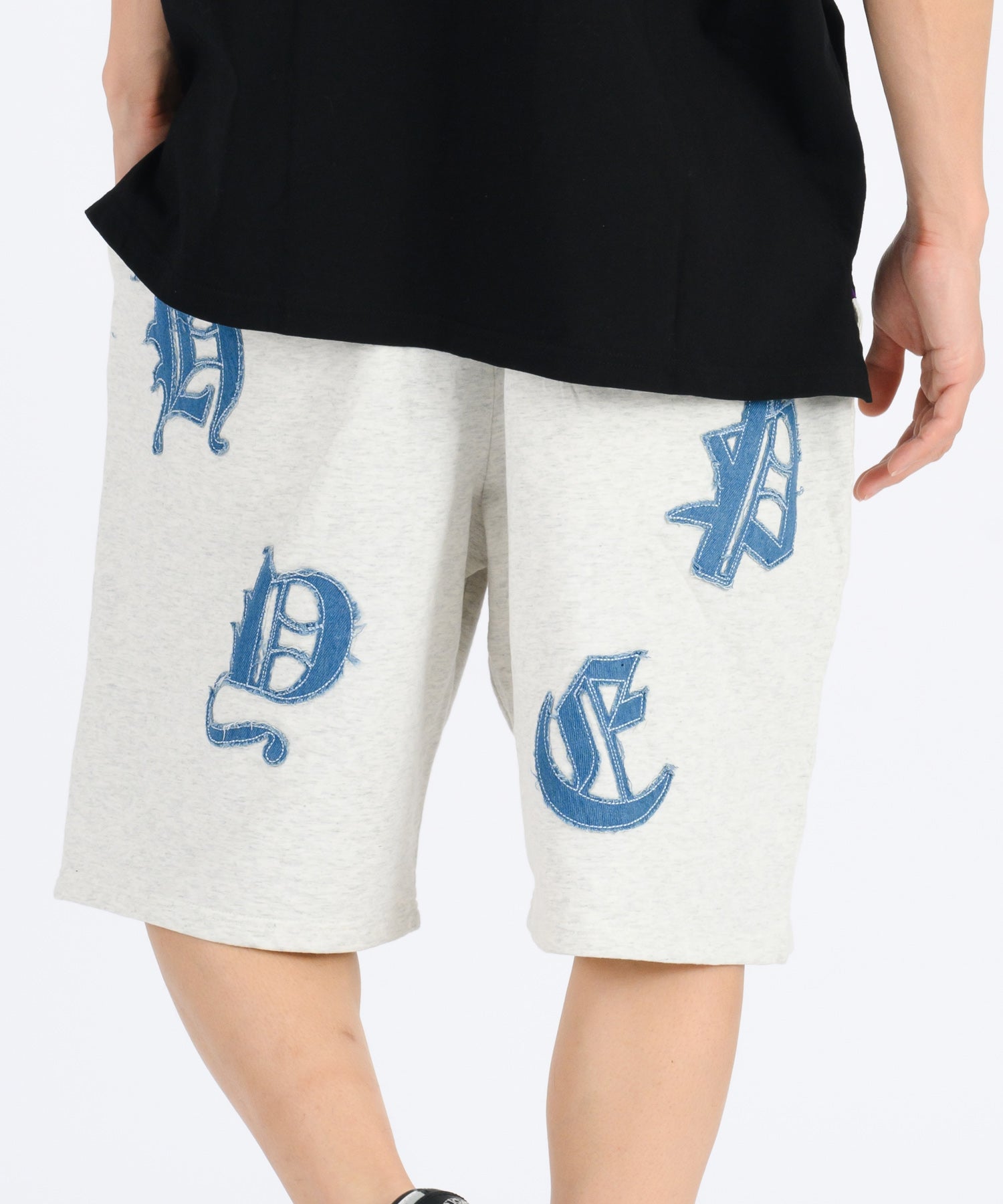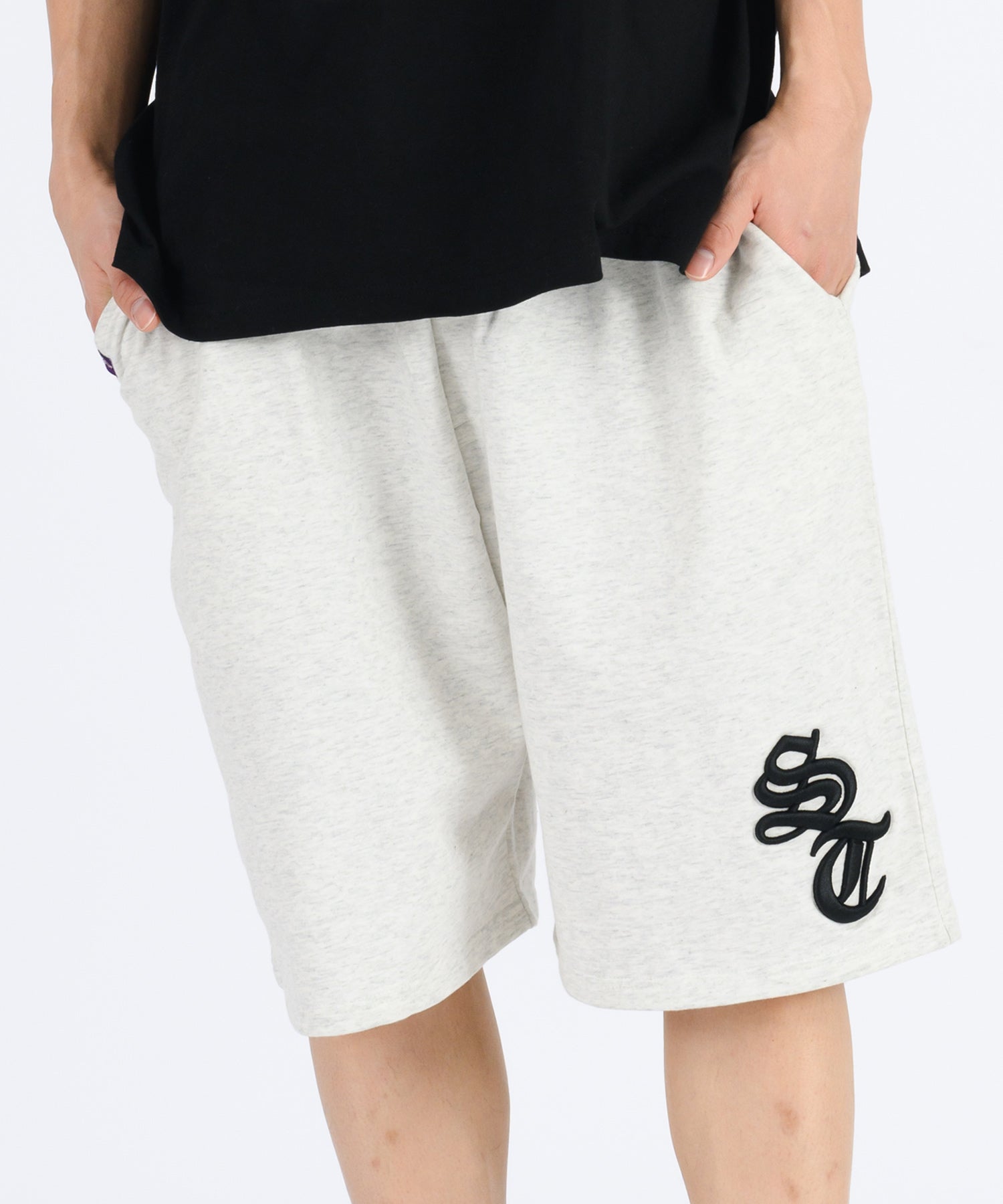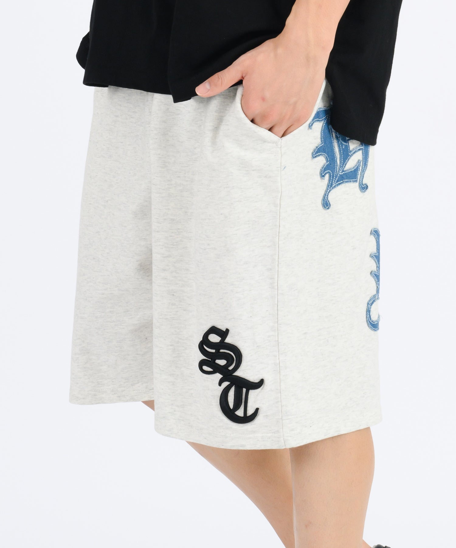 フロントの裾にも厚盛りの立体的な刺繍を配置しており、スウェット素材なのにデザイン性が高いショートパンツ。