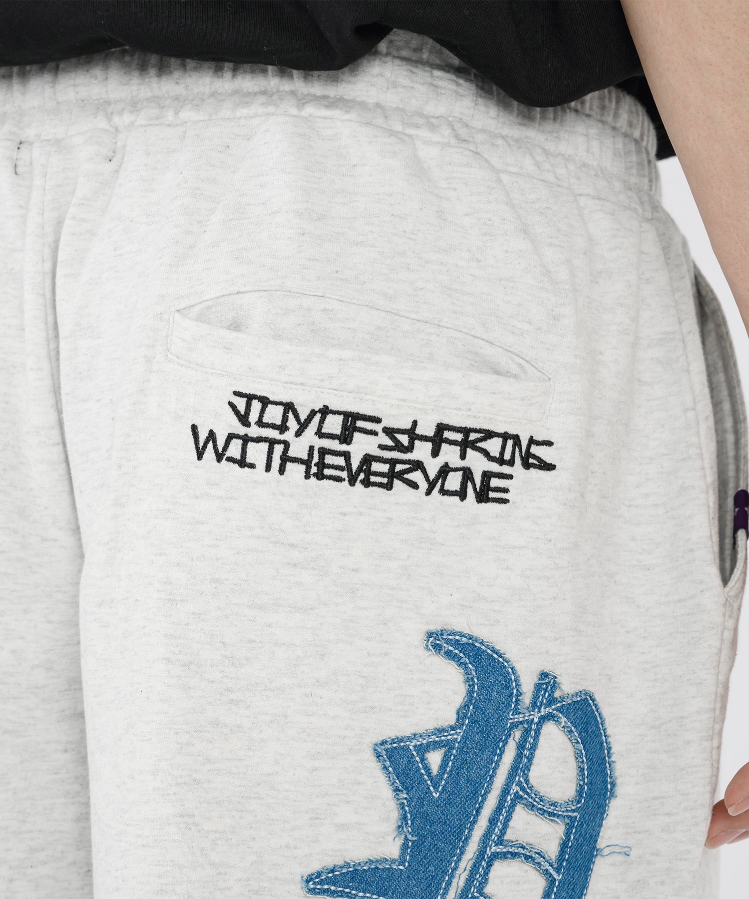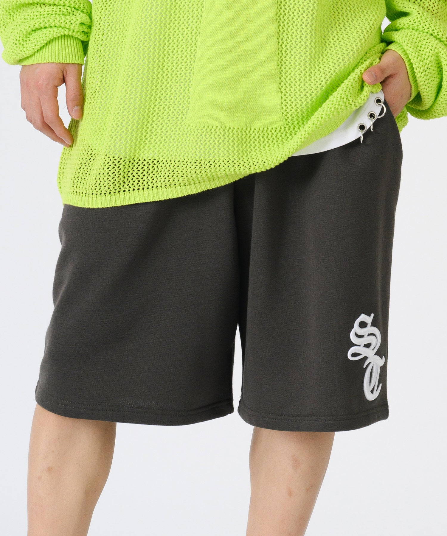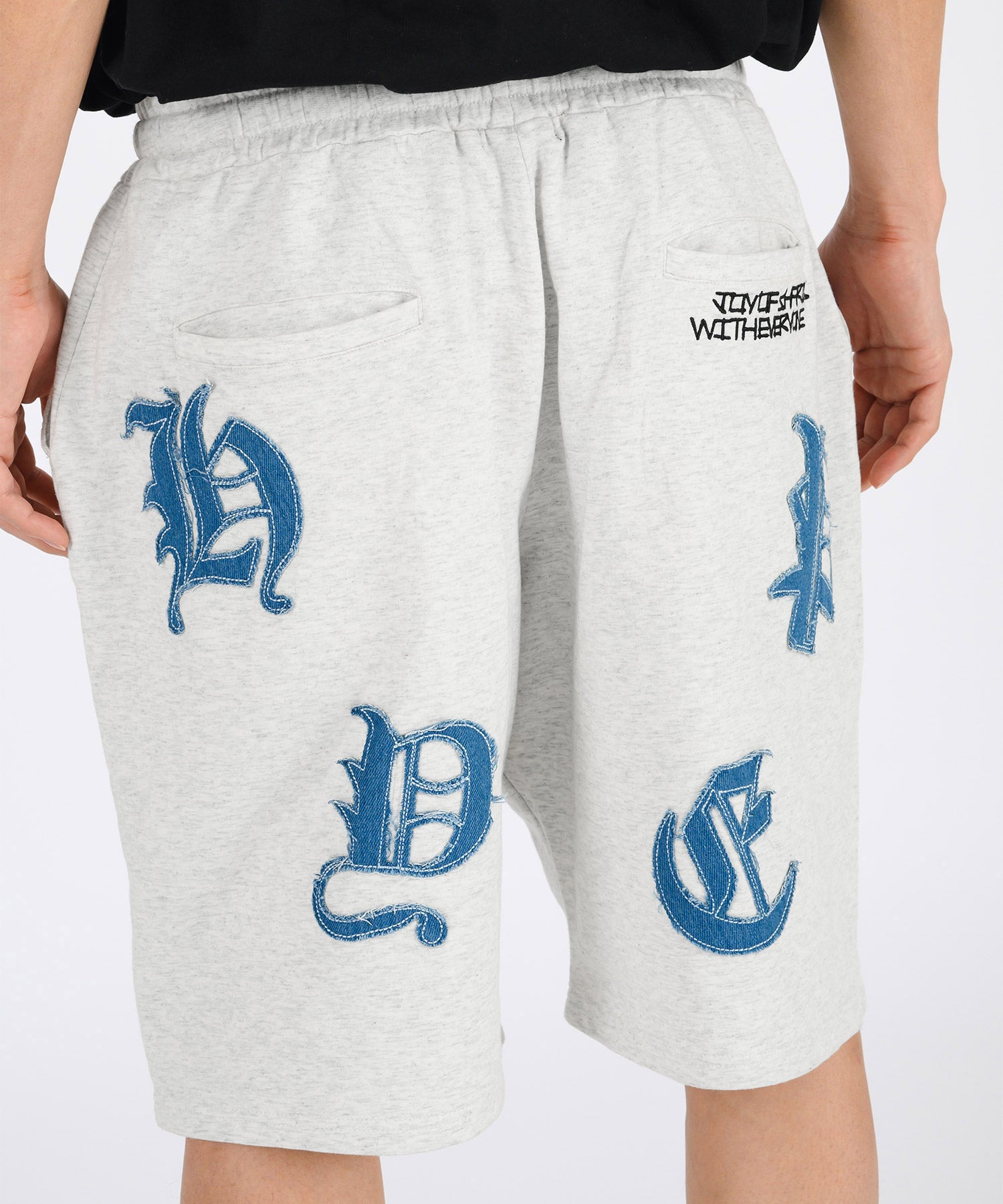 フロントの裾にも厚盛りの立体的な刺繍を配置しており、スウェット素材なのにデザイン性が高いショートパンツ。