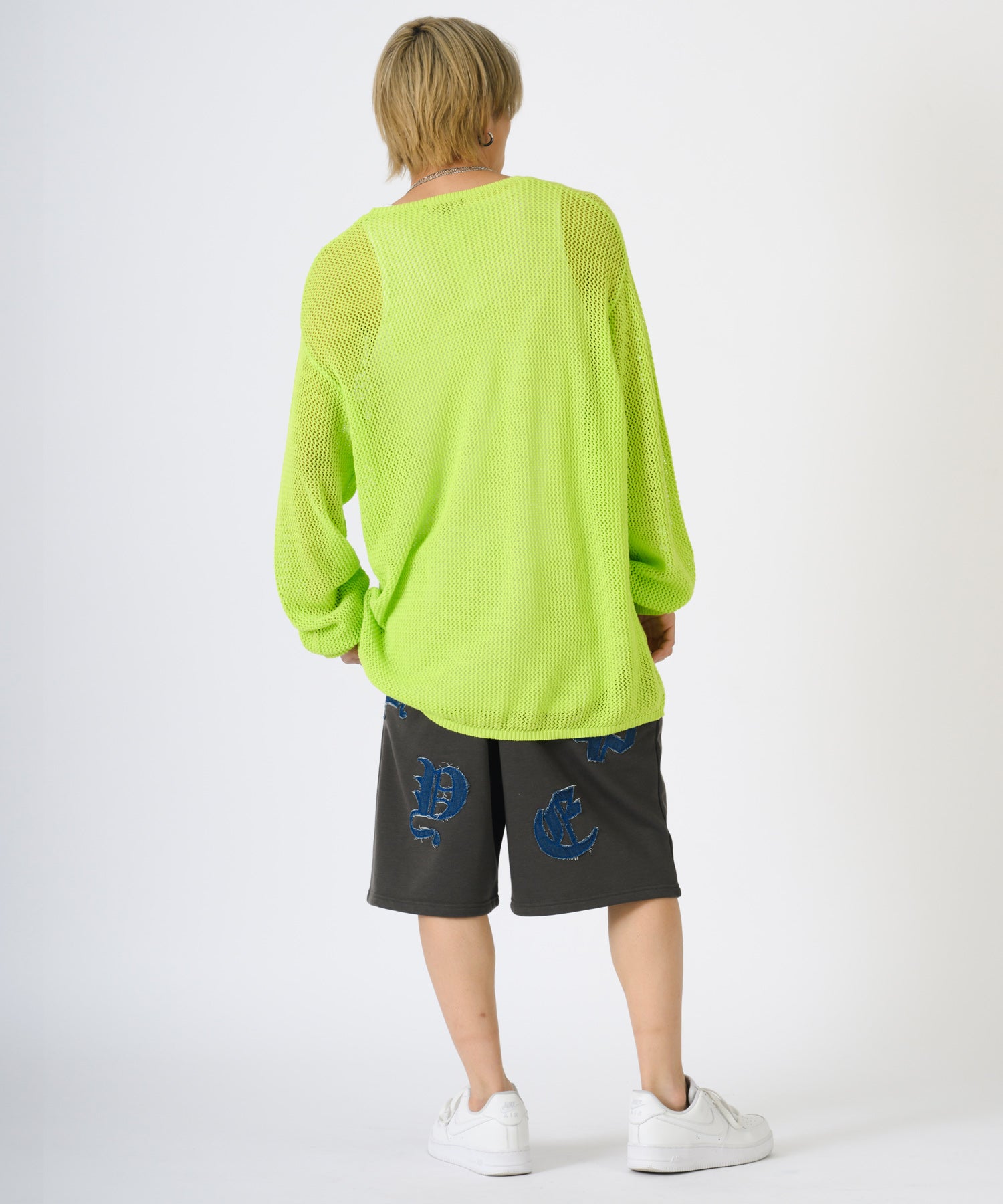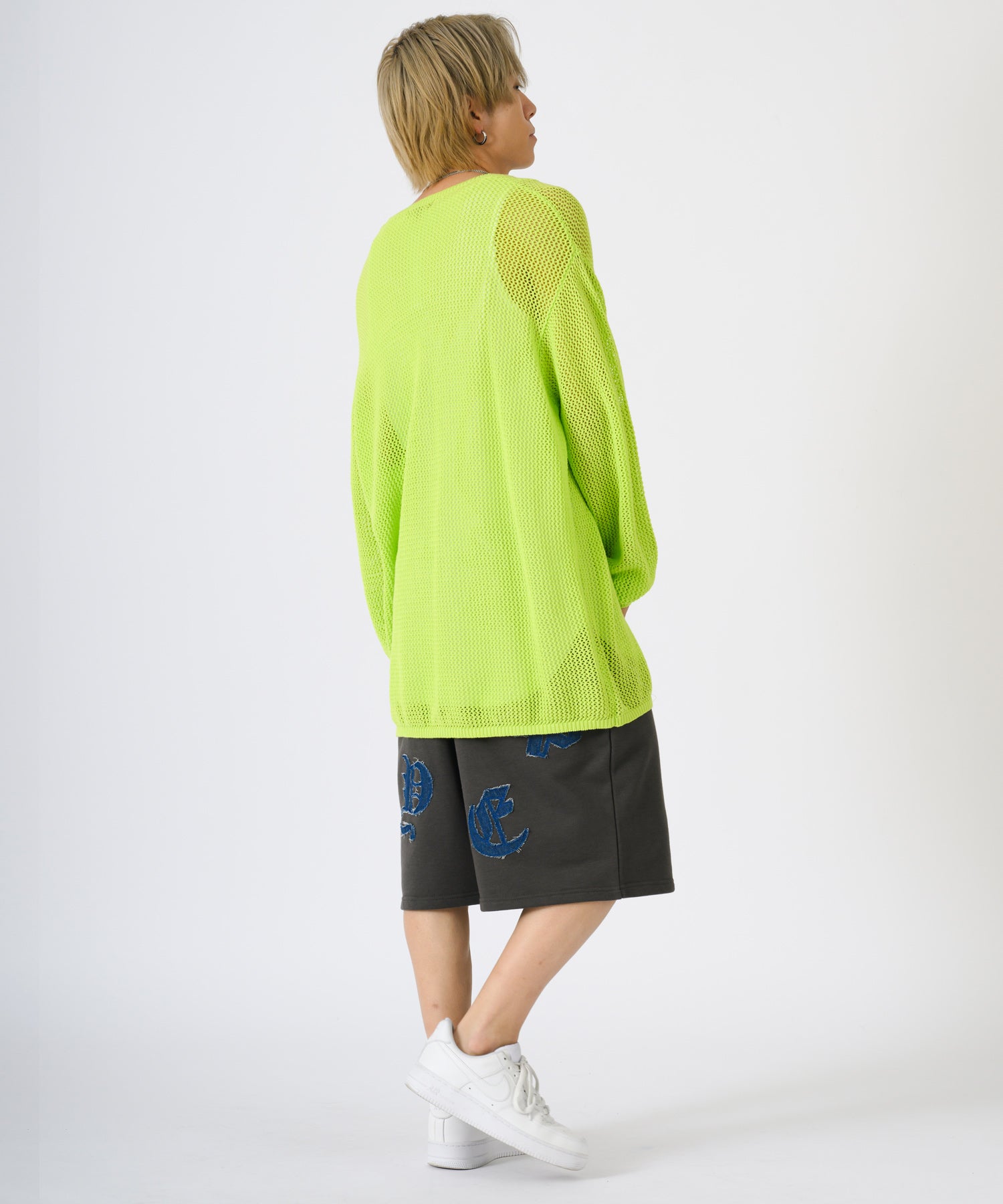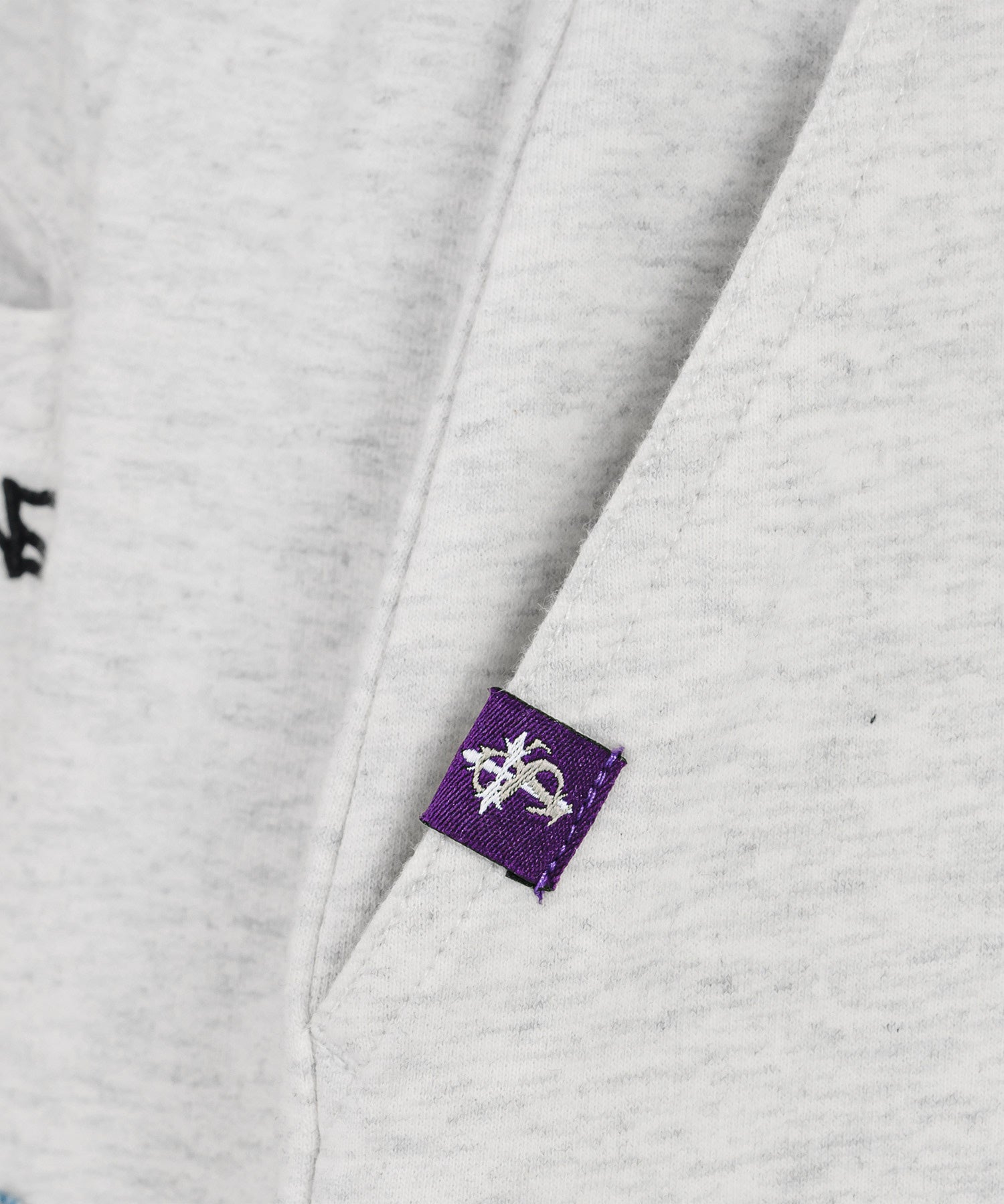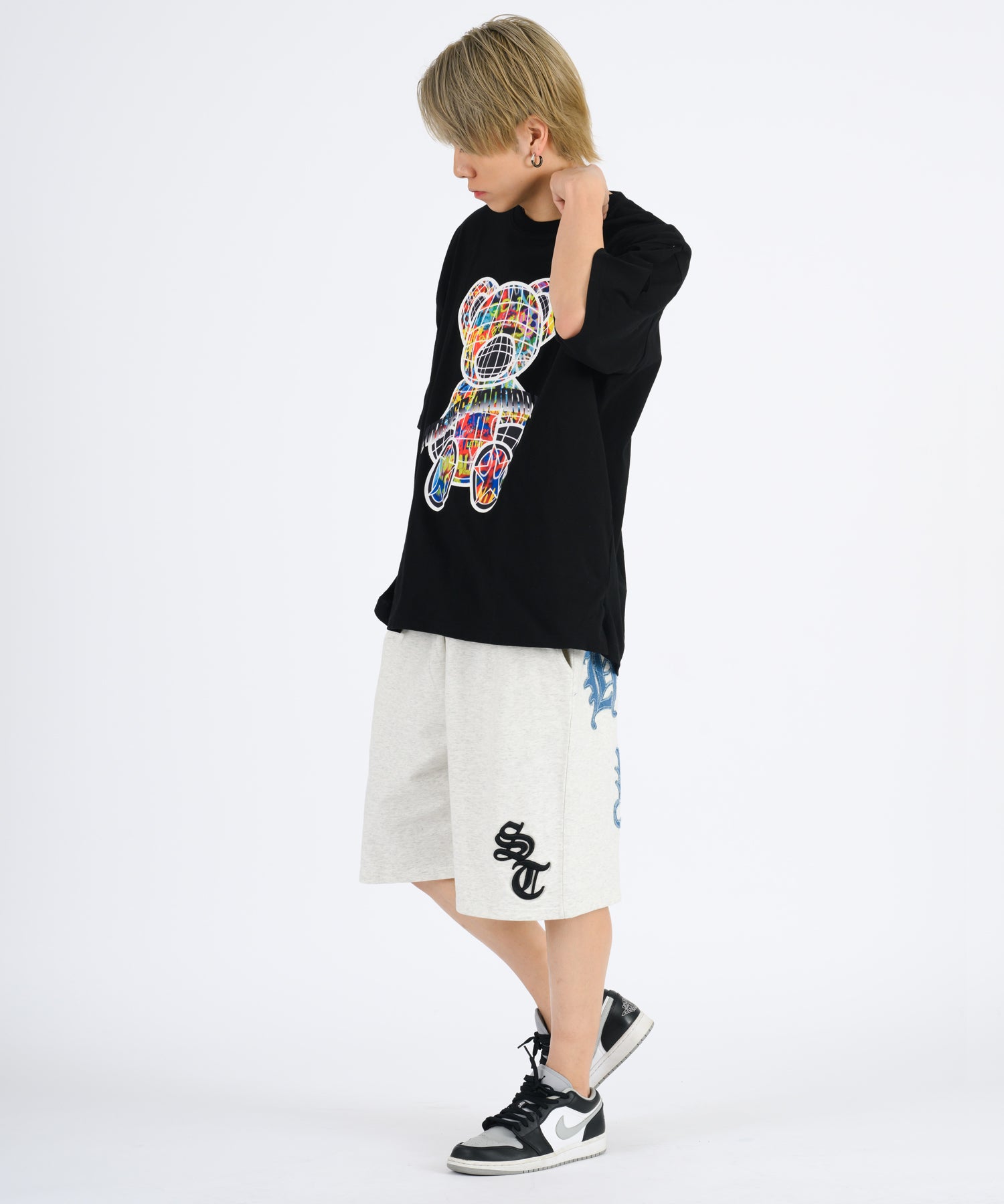 フロントの裾にも厚盛りの立体的な刺繍を配置しており、スウェット素材なのにデザイン性が高いショートパンツ。