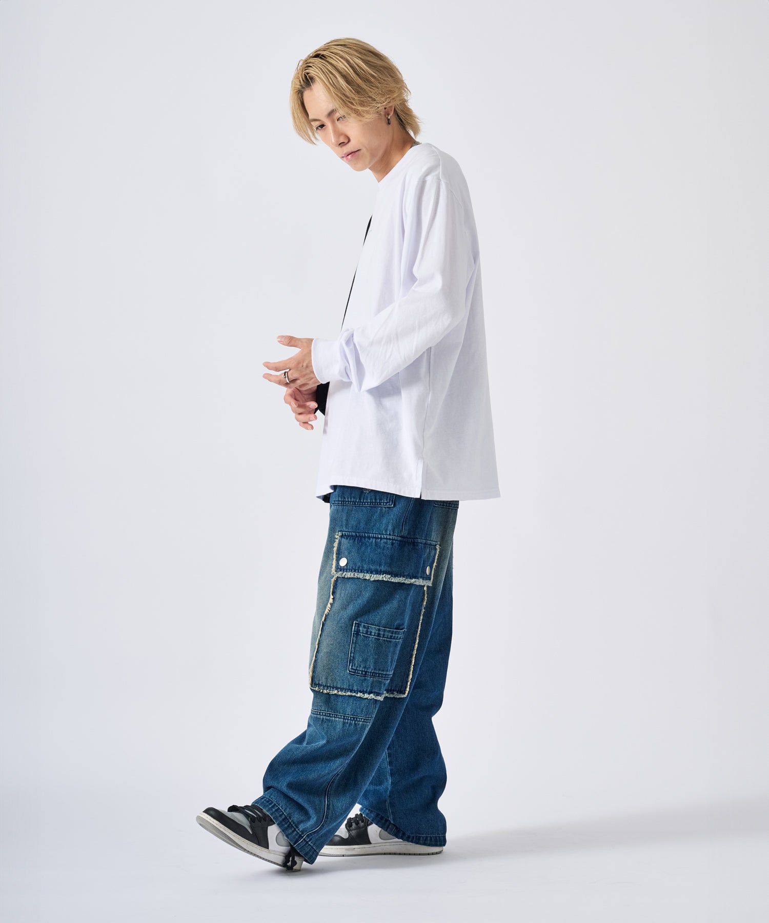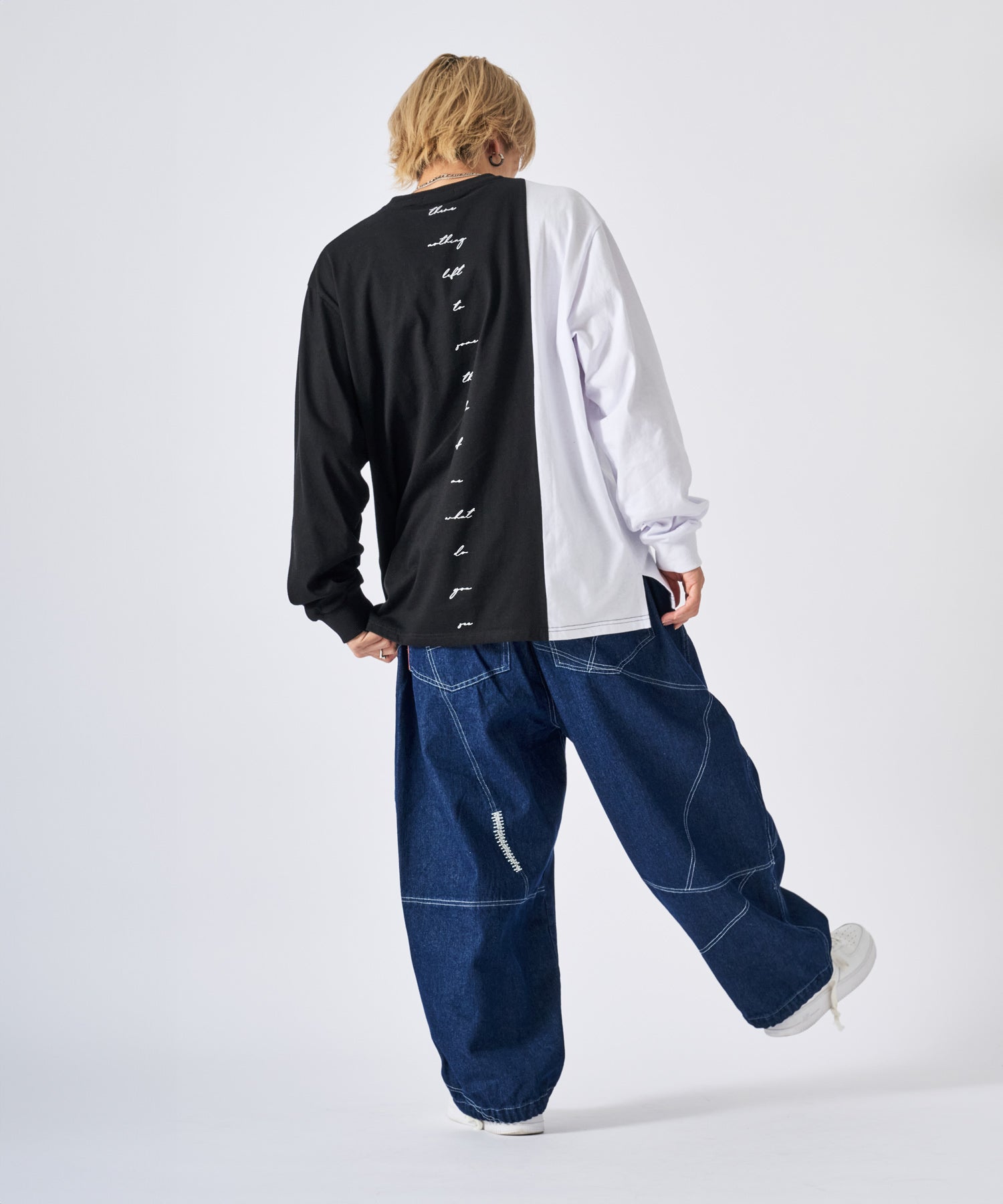 モノトーンのすっきりとしたデザインながら、ルーズフィットなサイズ感とリブ付きの袖がストリートスタイル醸し出している