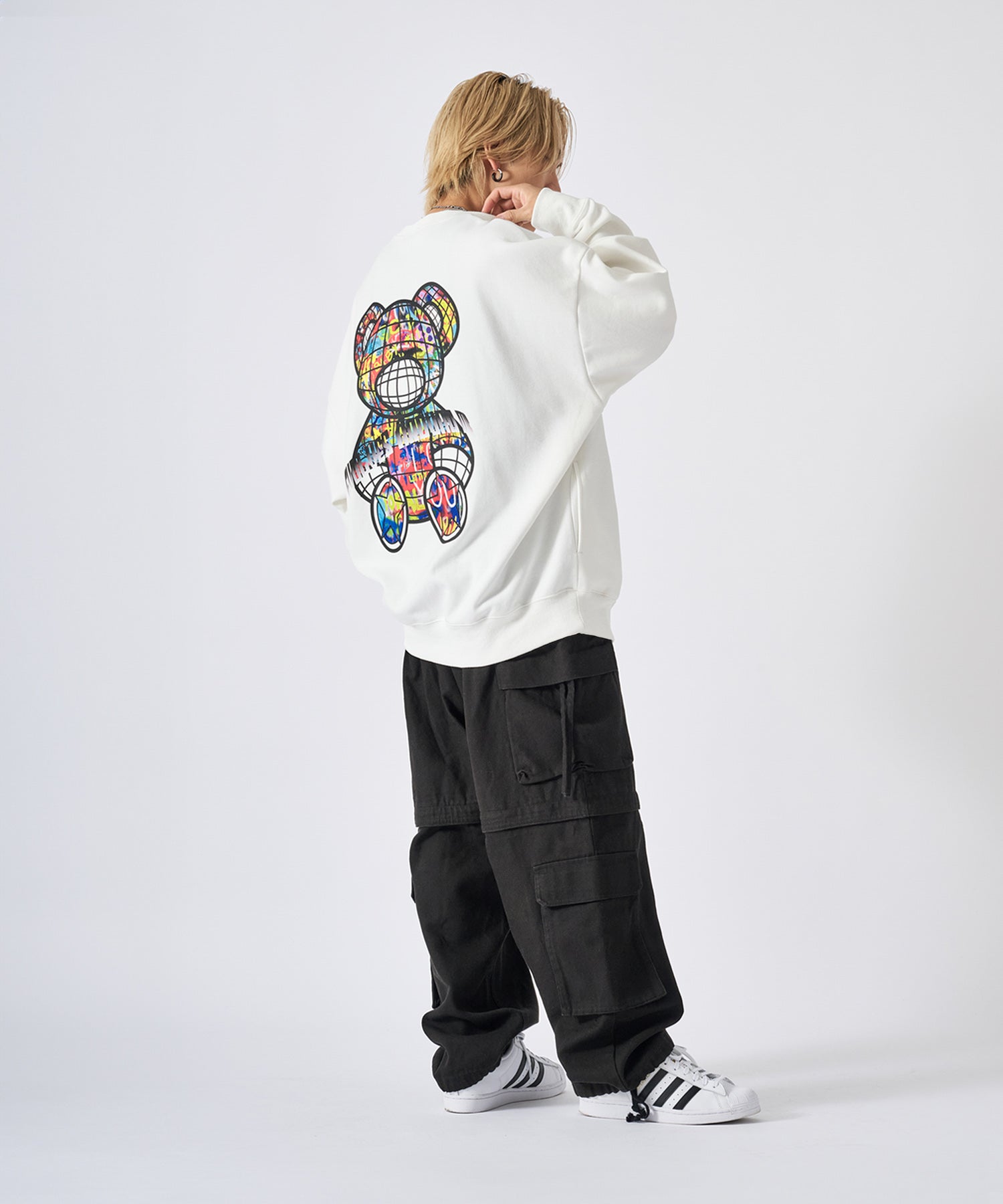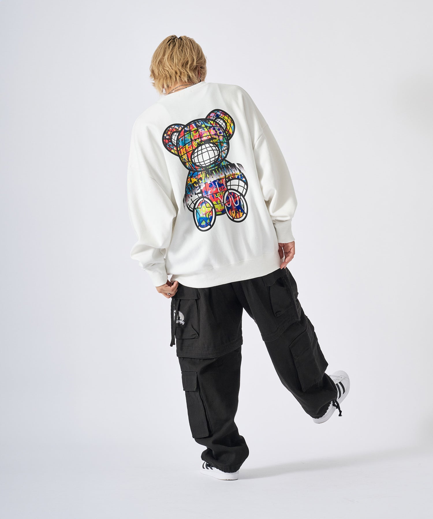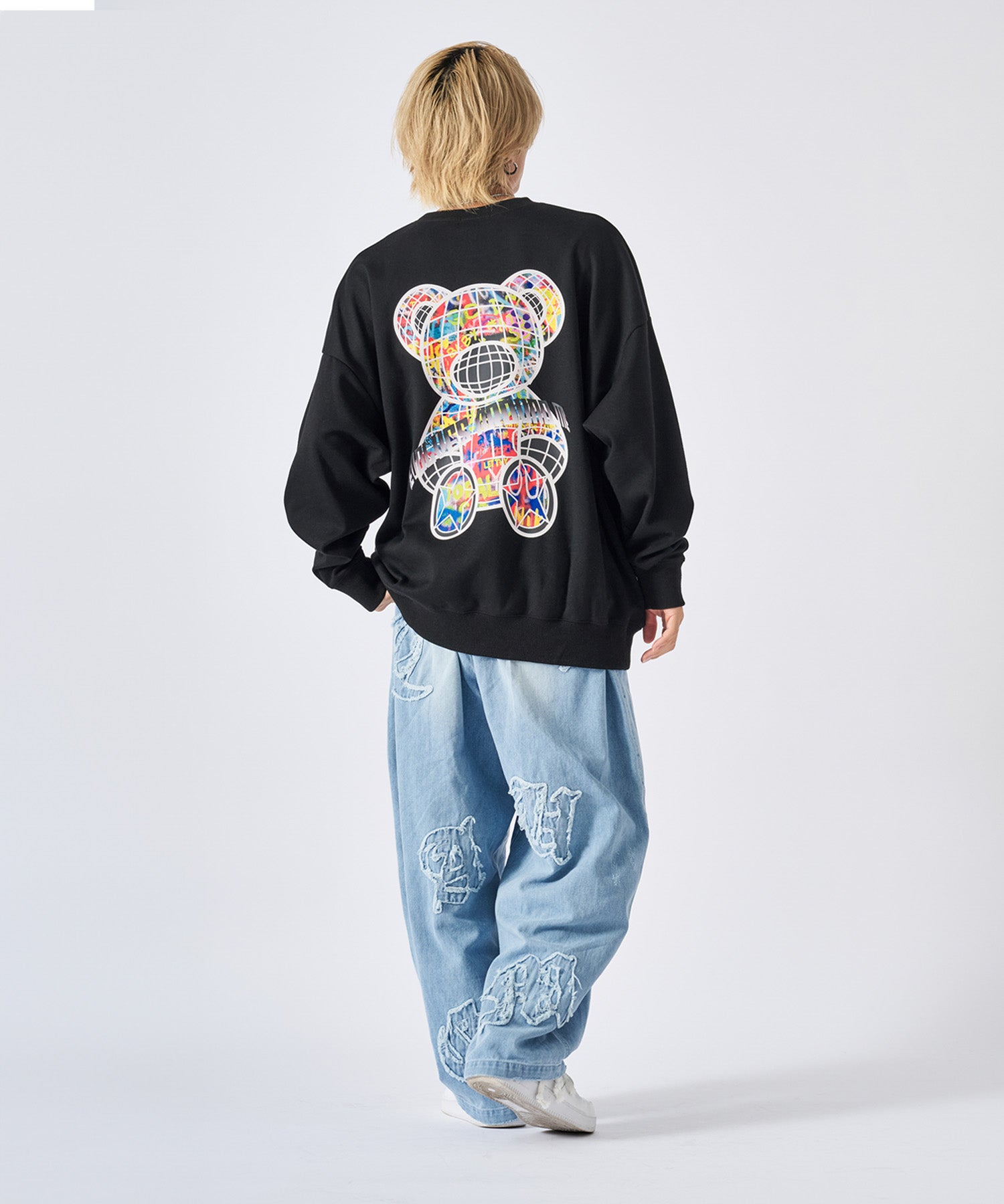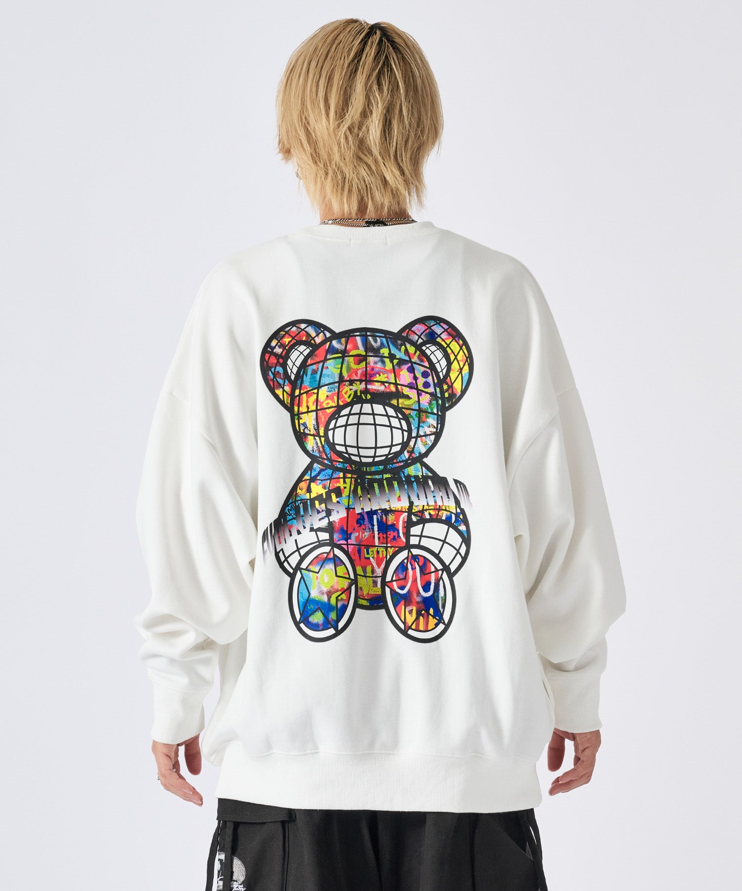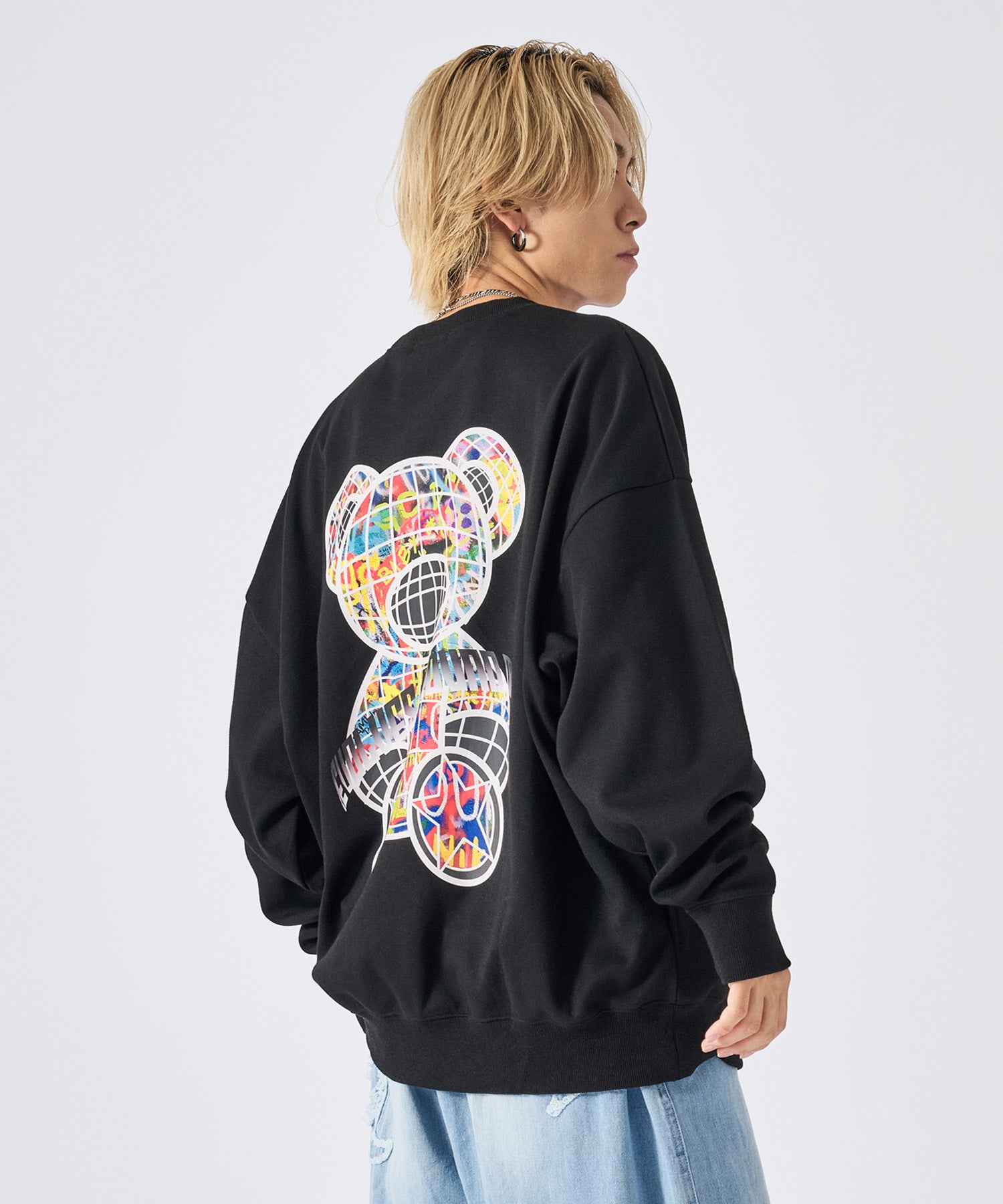 立体的なクマのバックプリントが可愛いオーバーサイズのトレーナー