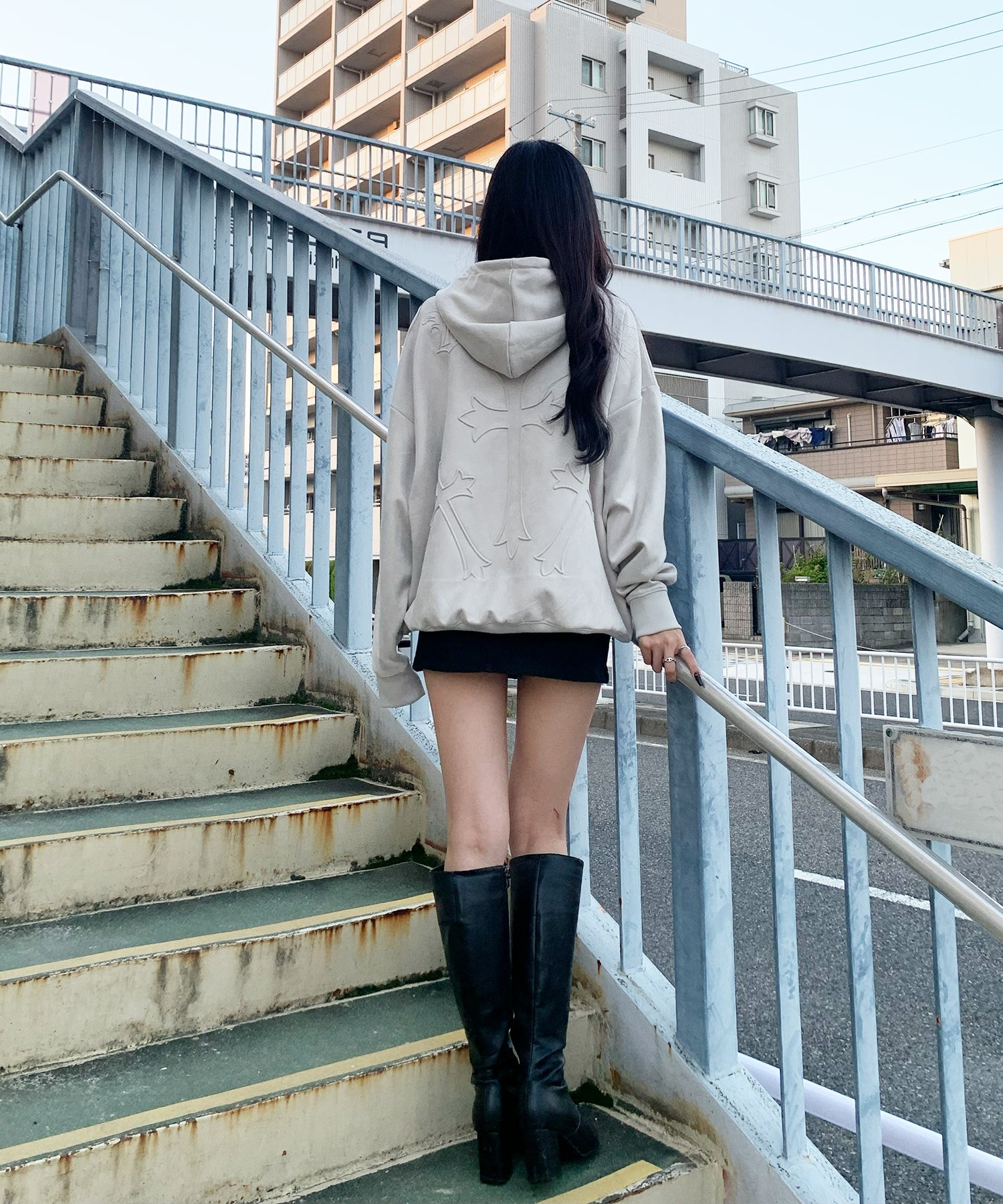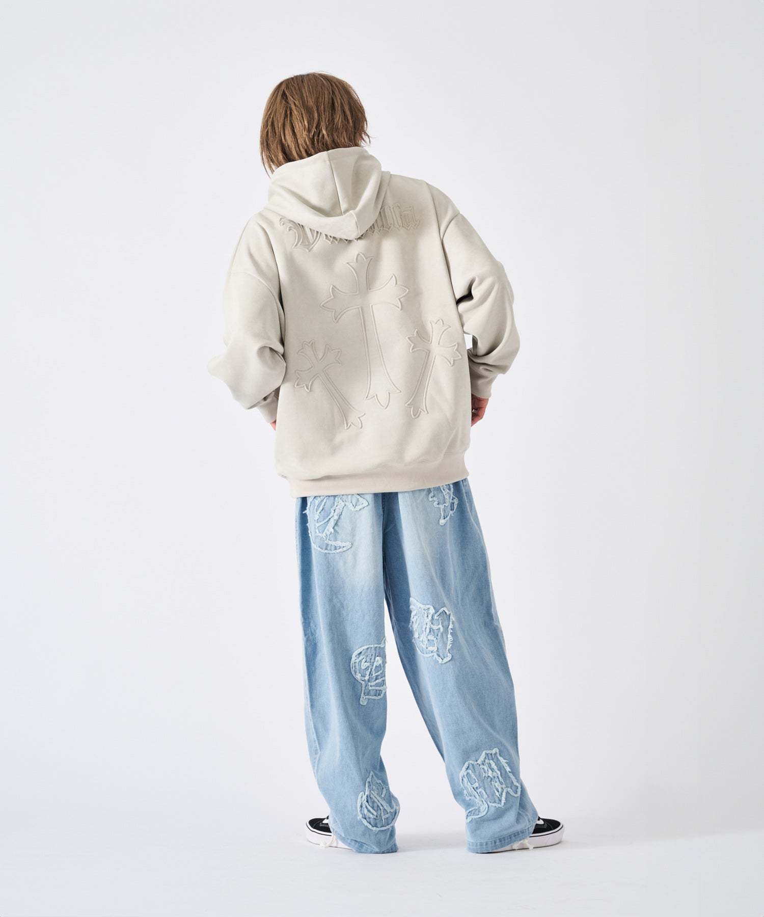 クロスをモチーフにしたエンボス加工のプルパーカー☆
