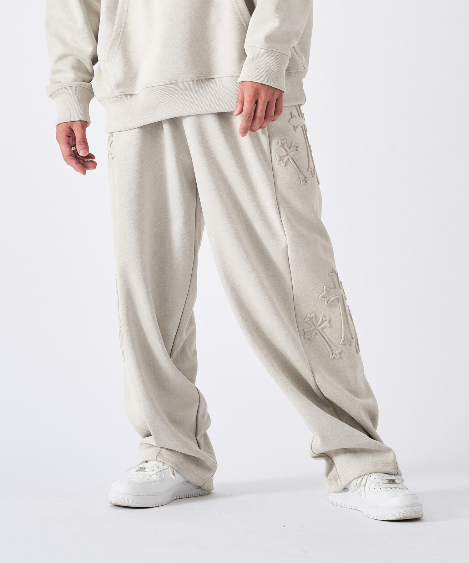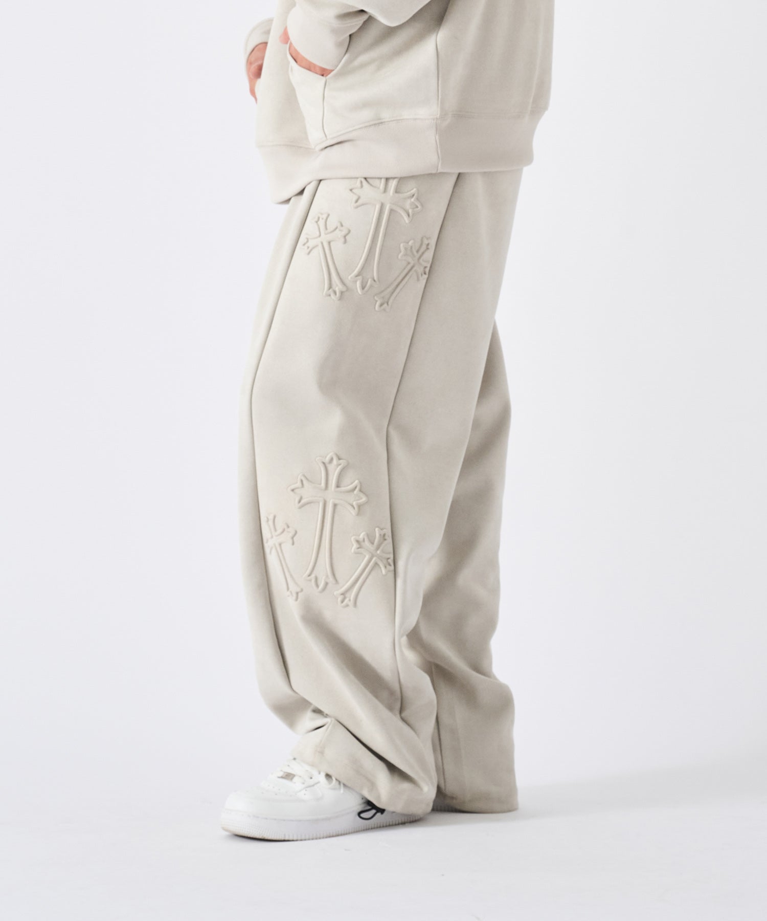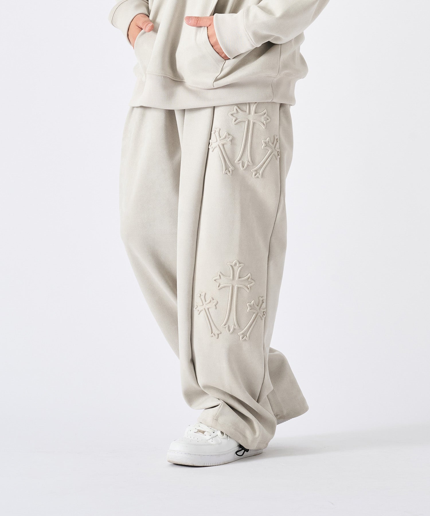 エンボスのクロスが印象的なスエードのワイドパンツです☆