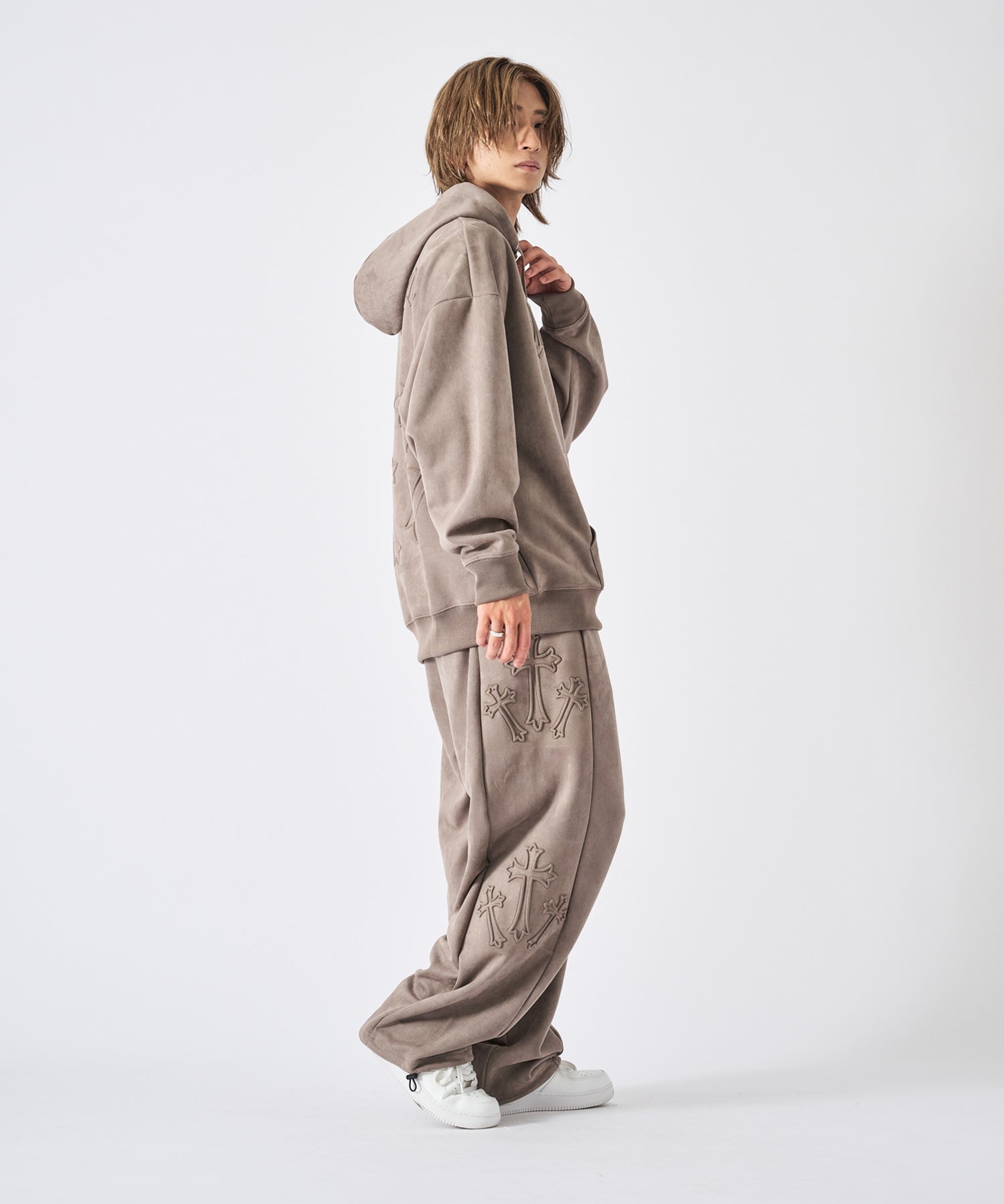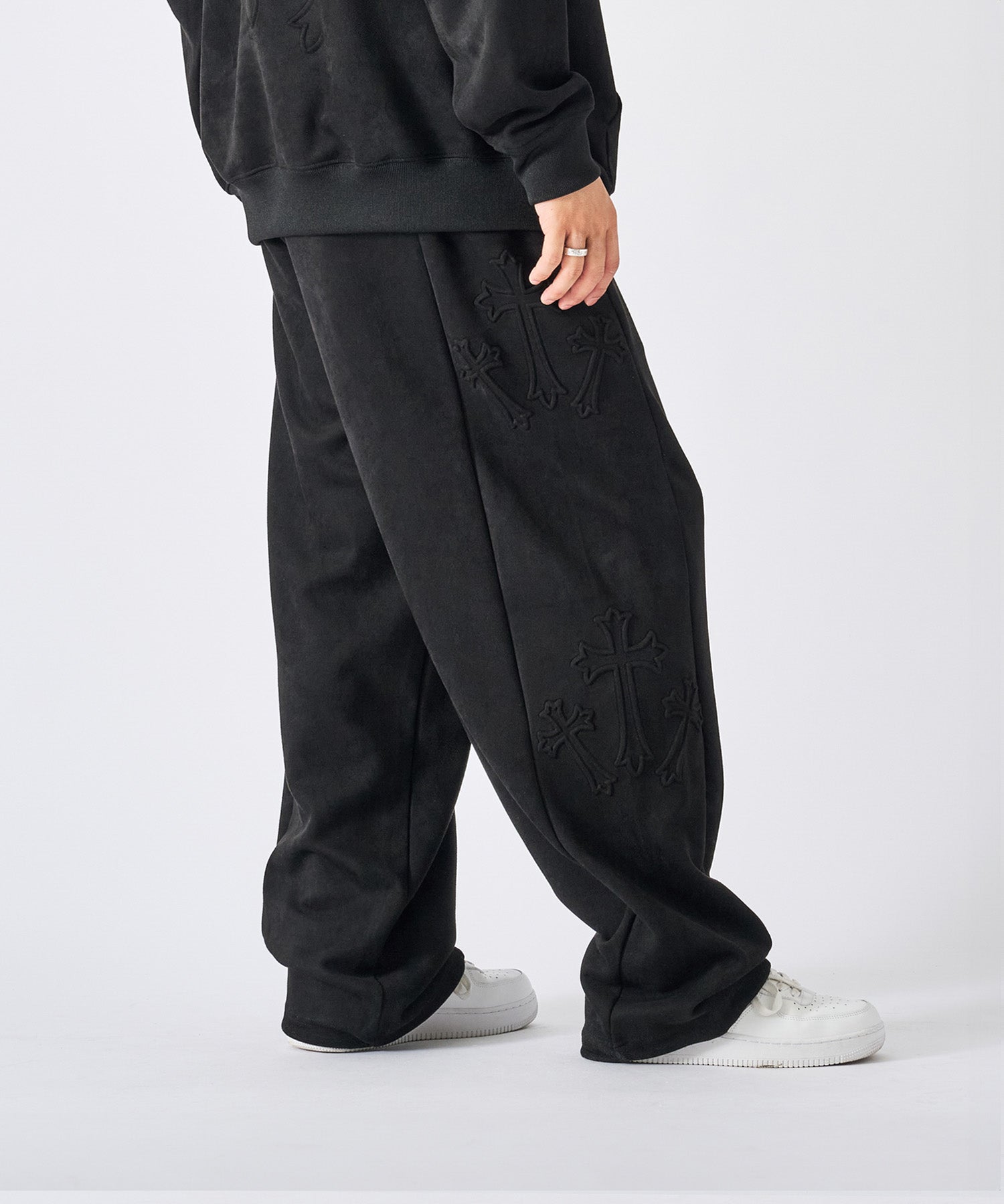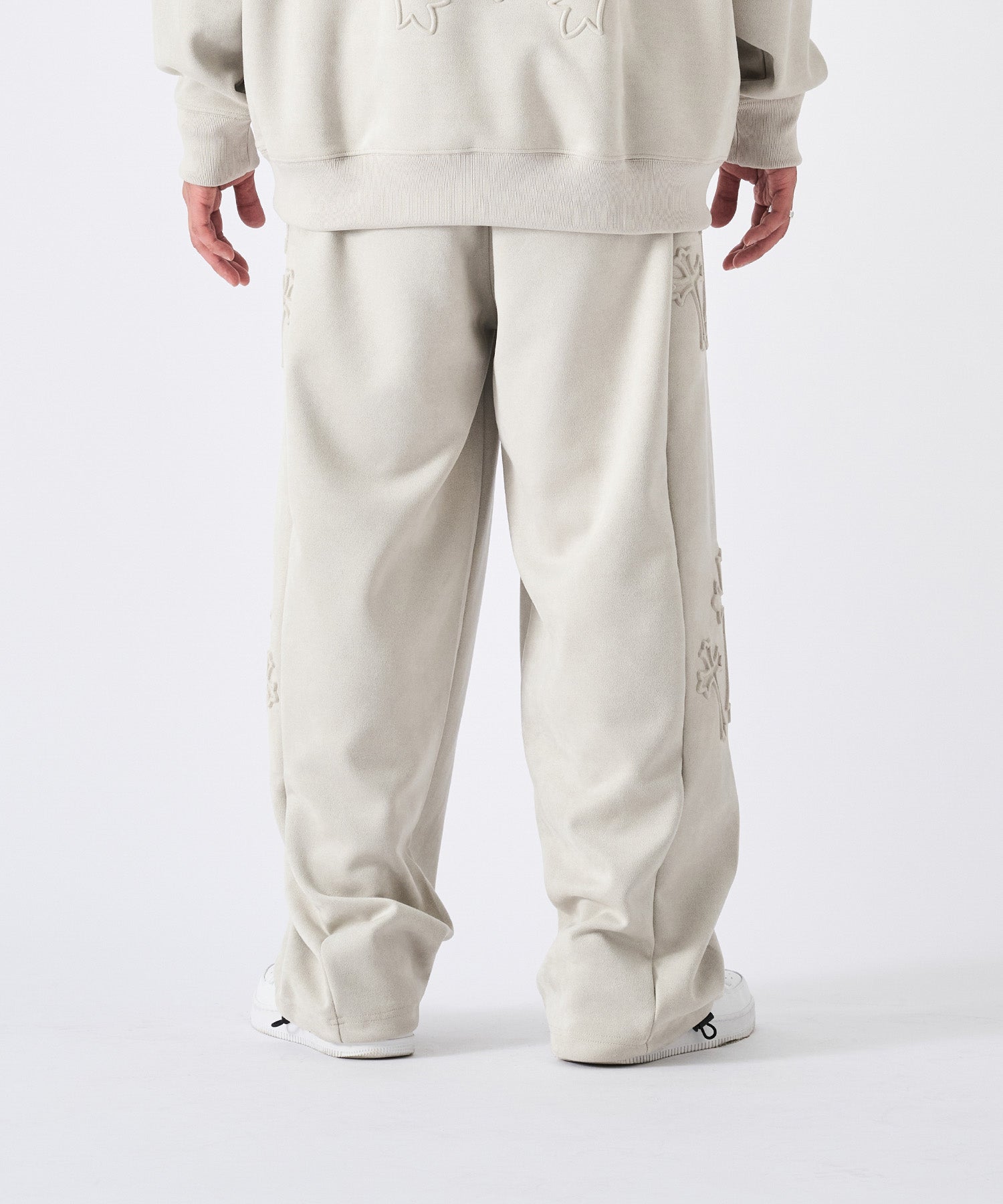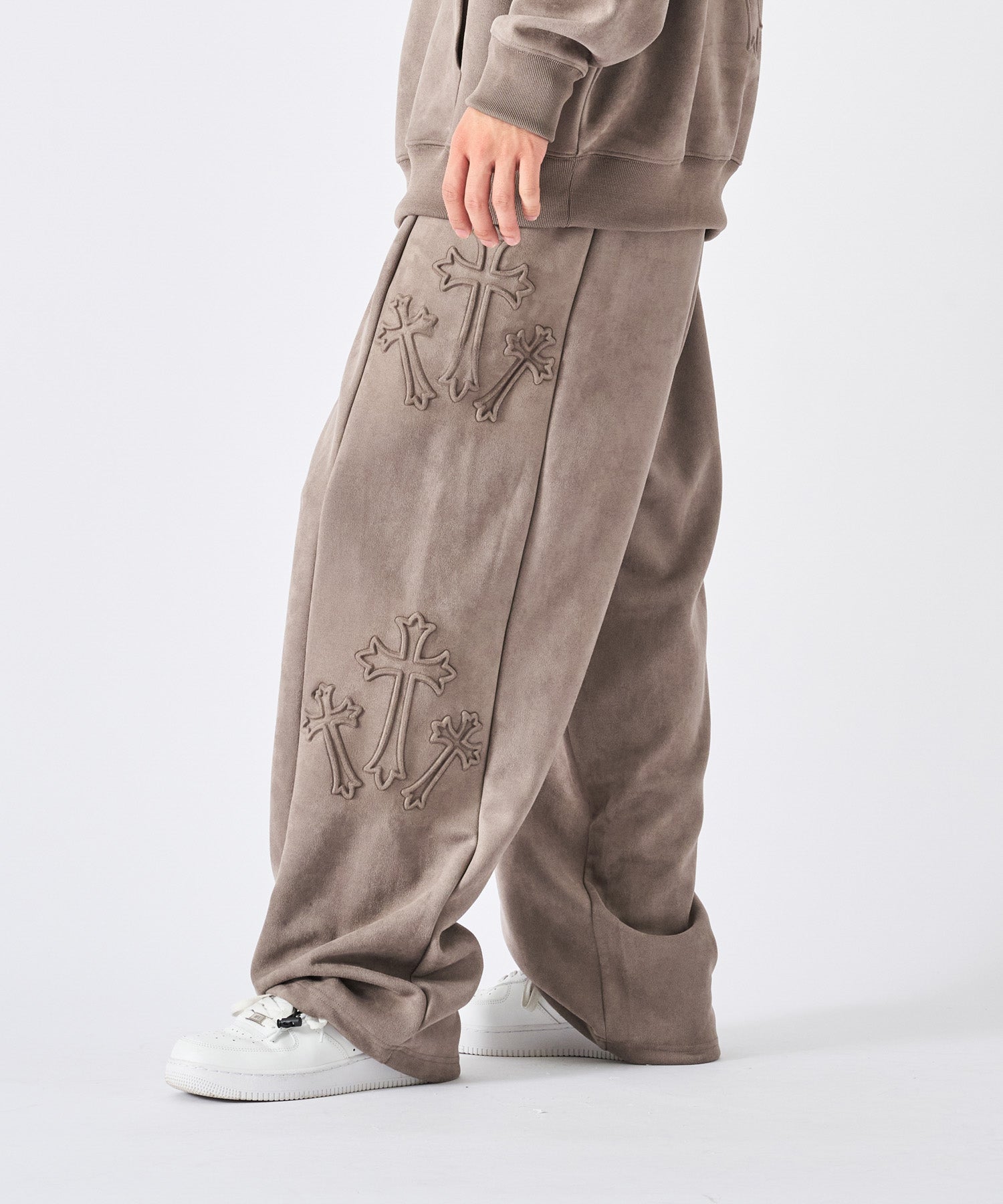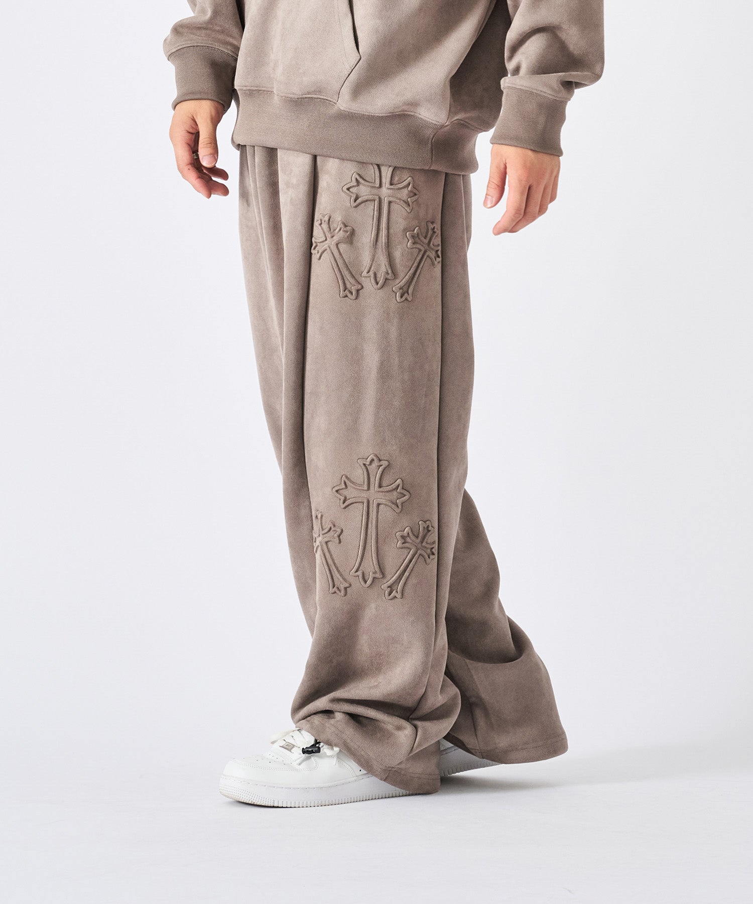 ゆったりとしたワイドシルエットながら、スエード素材だからこその独特のツヤが高級感を演出!