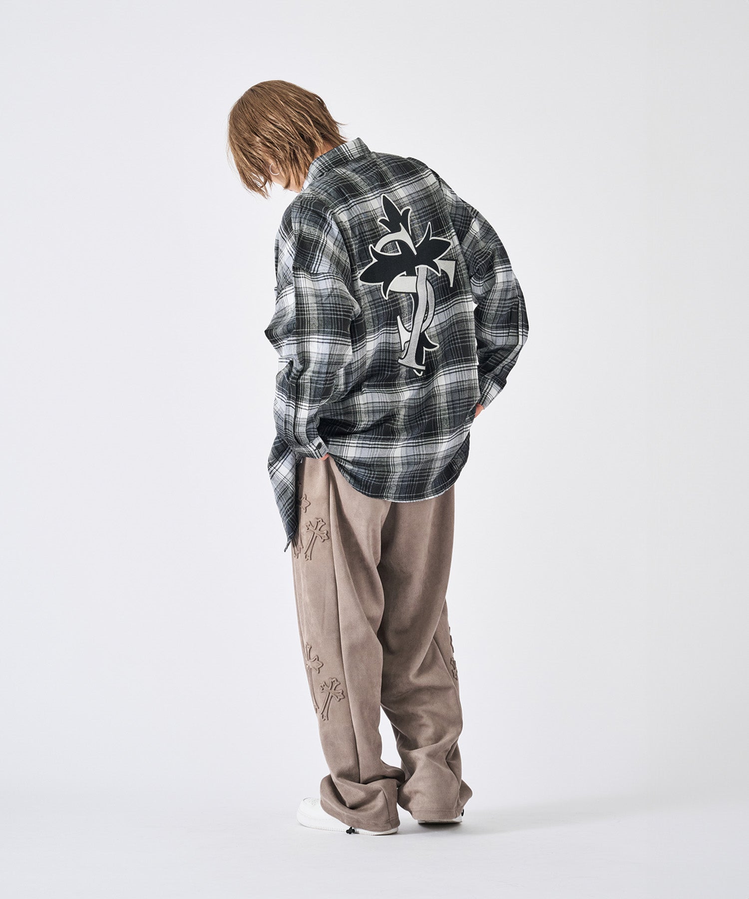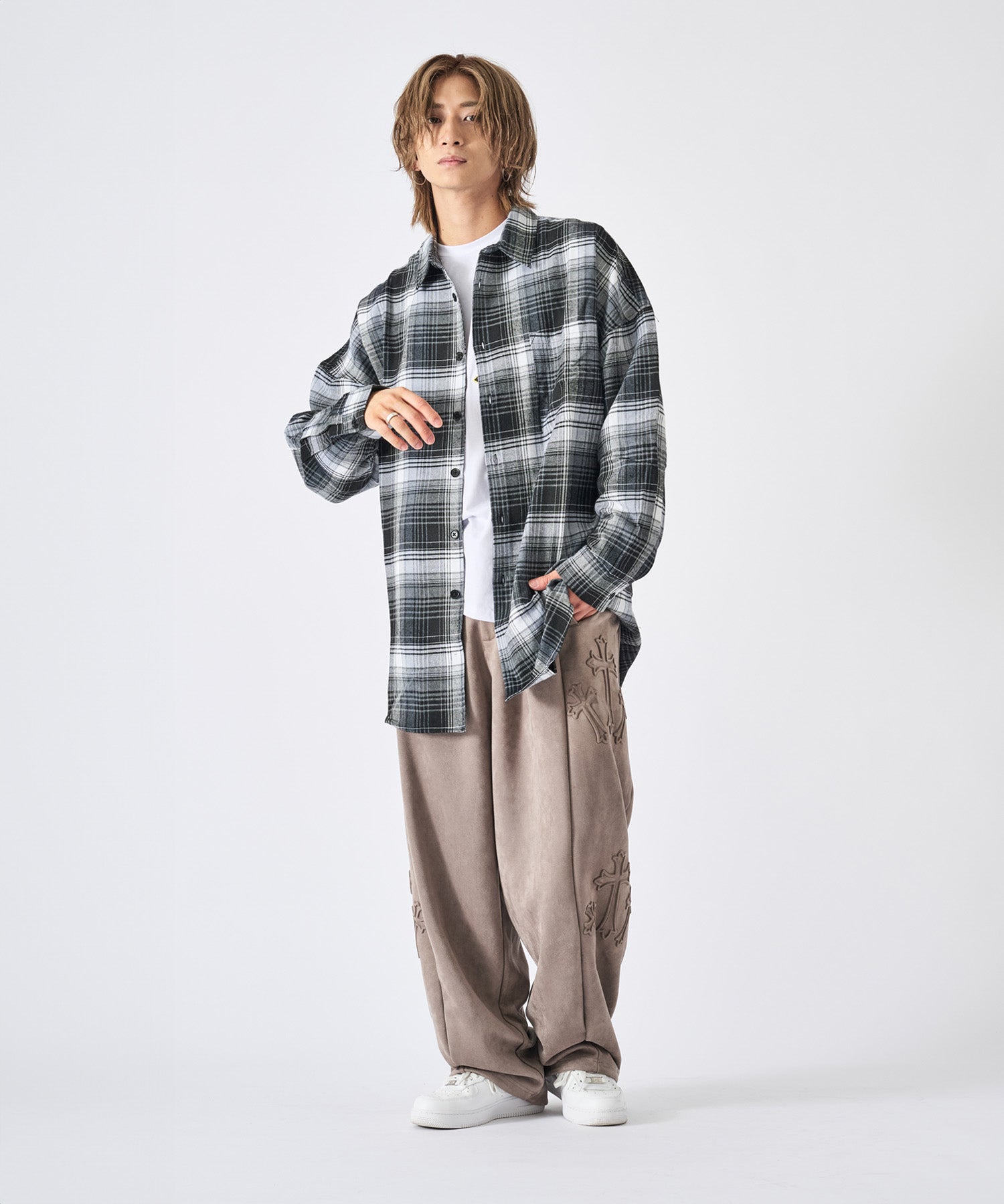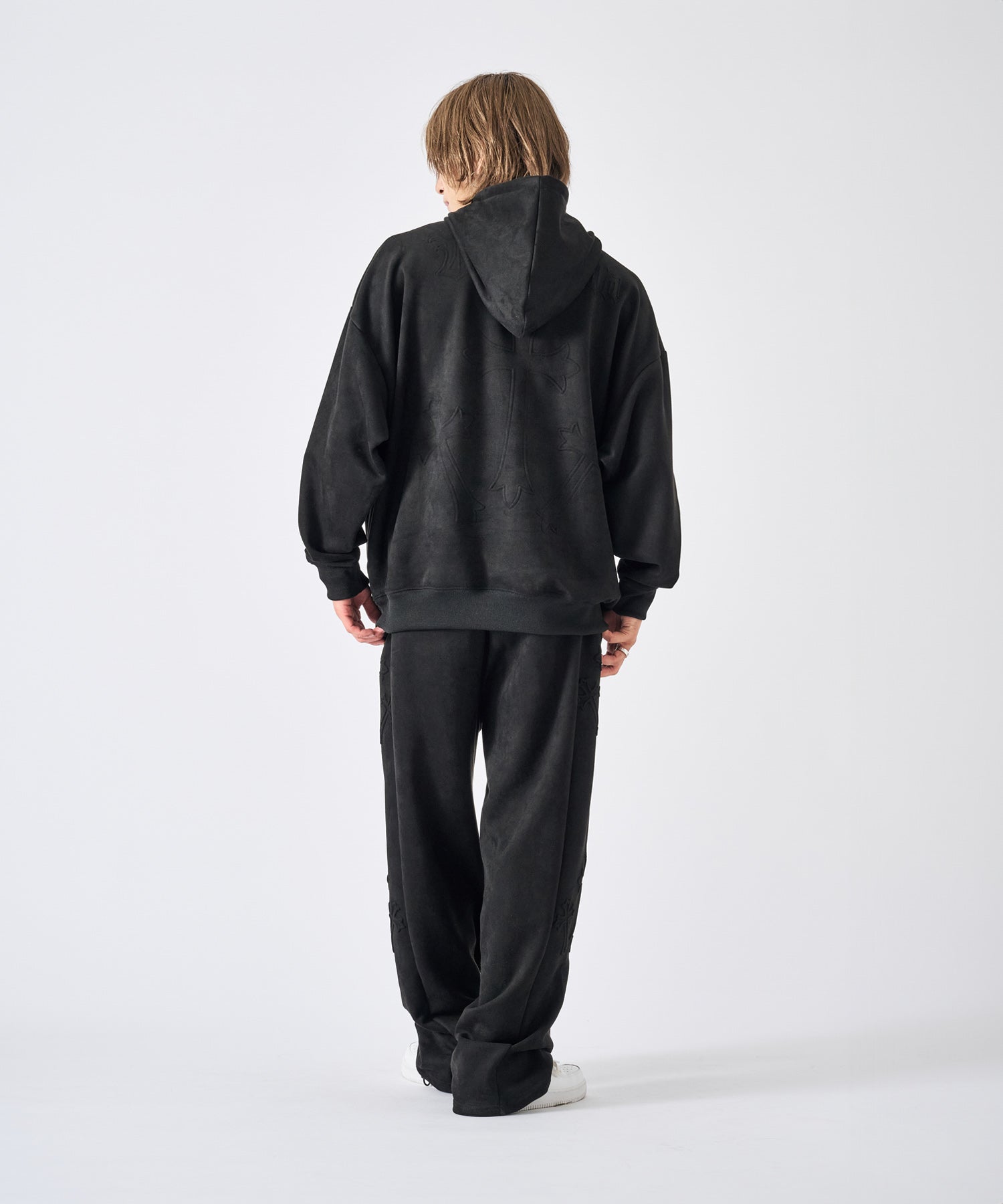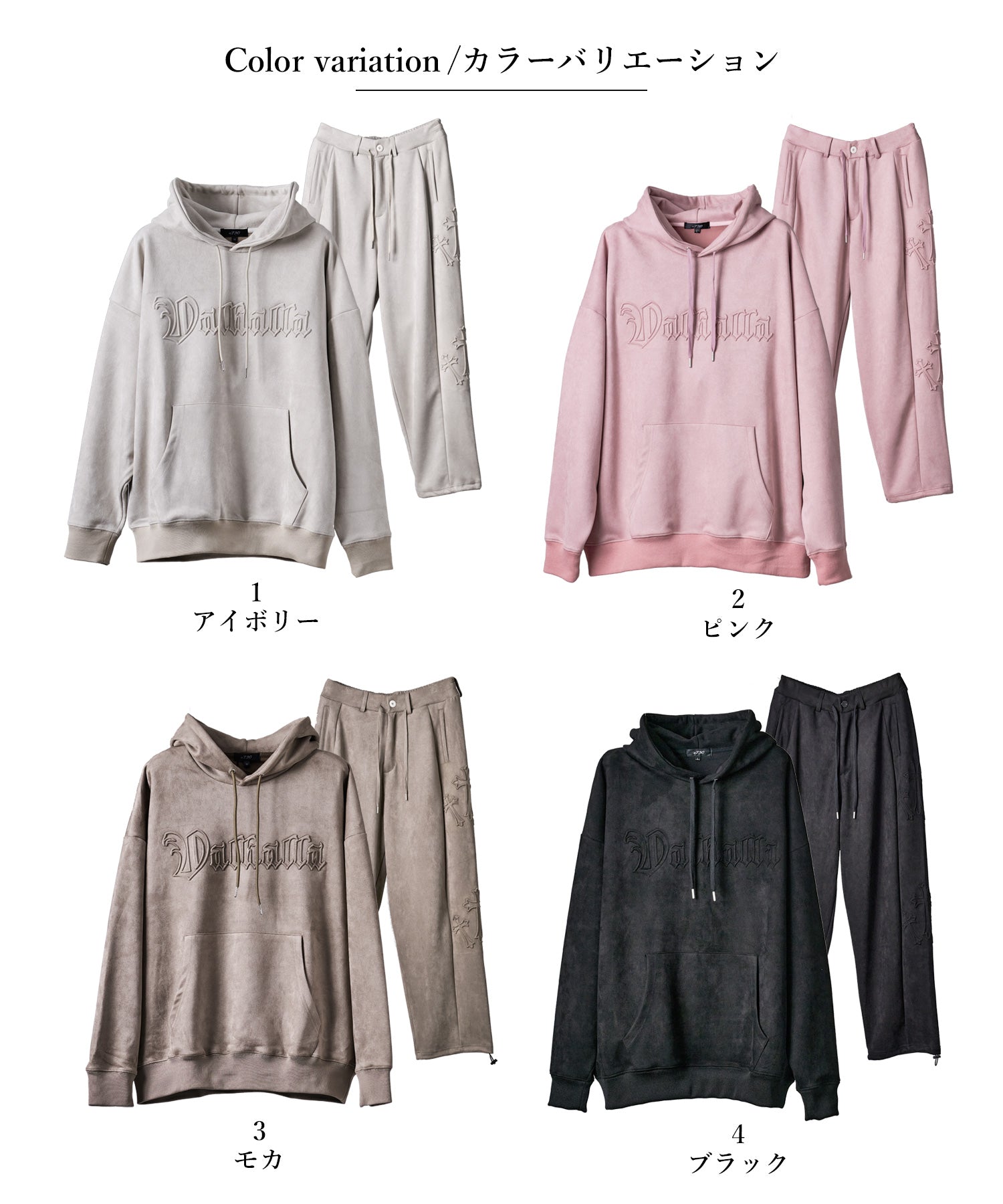 ゆったりとしたワイドシルエットながら、スエード素材だからこその独特のツヤが高級感を演出!