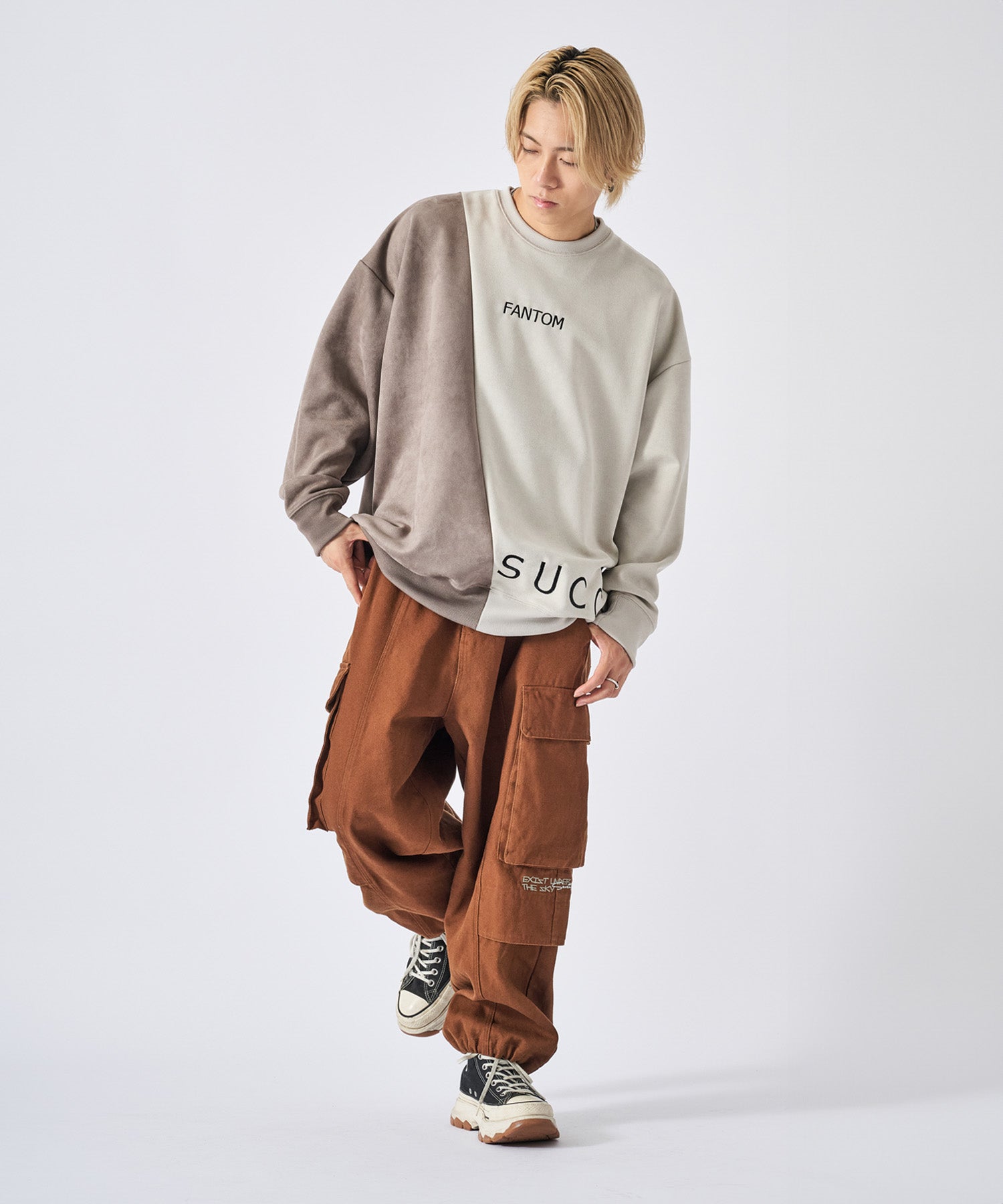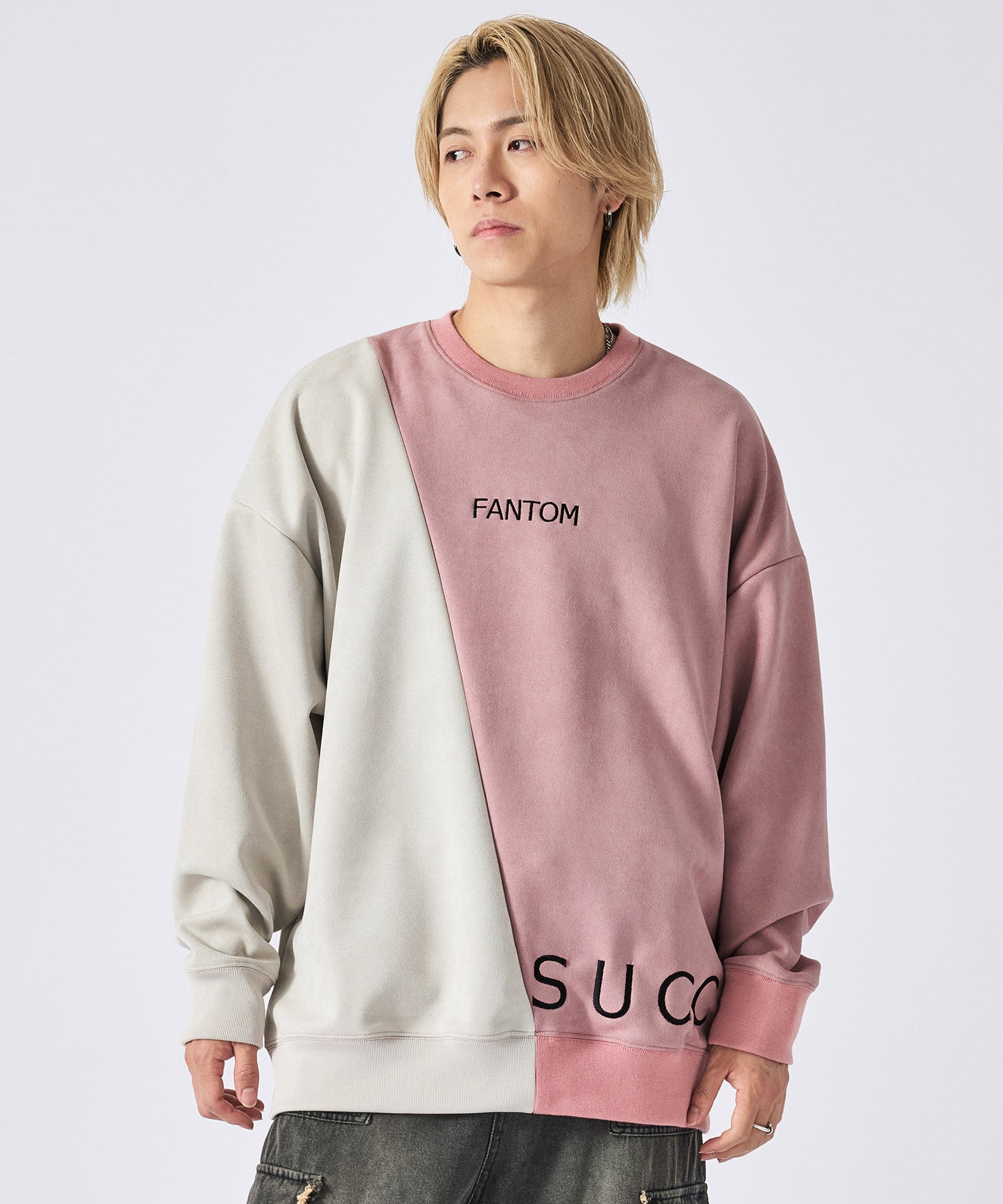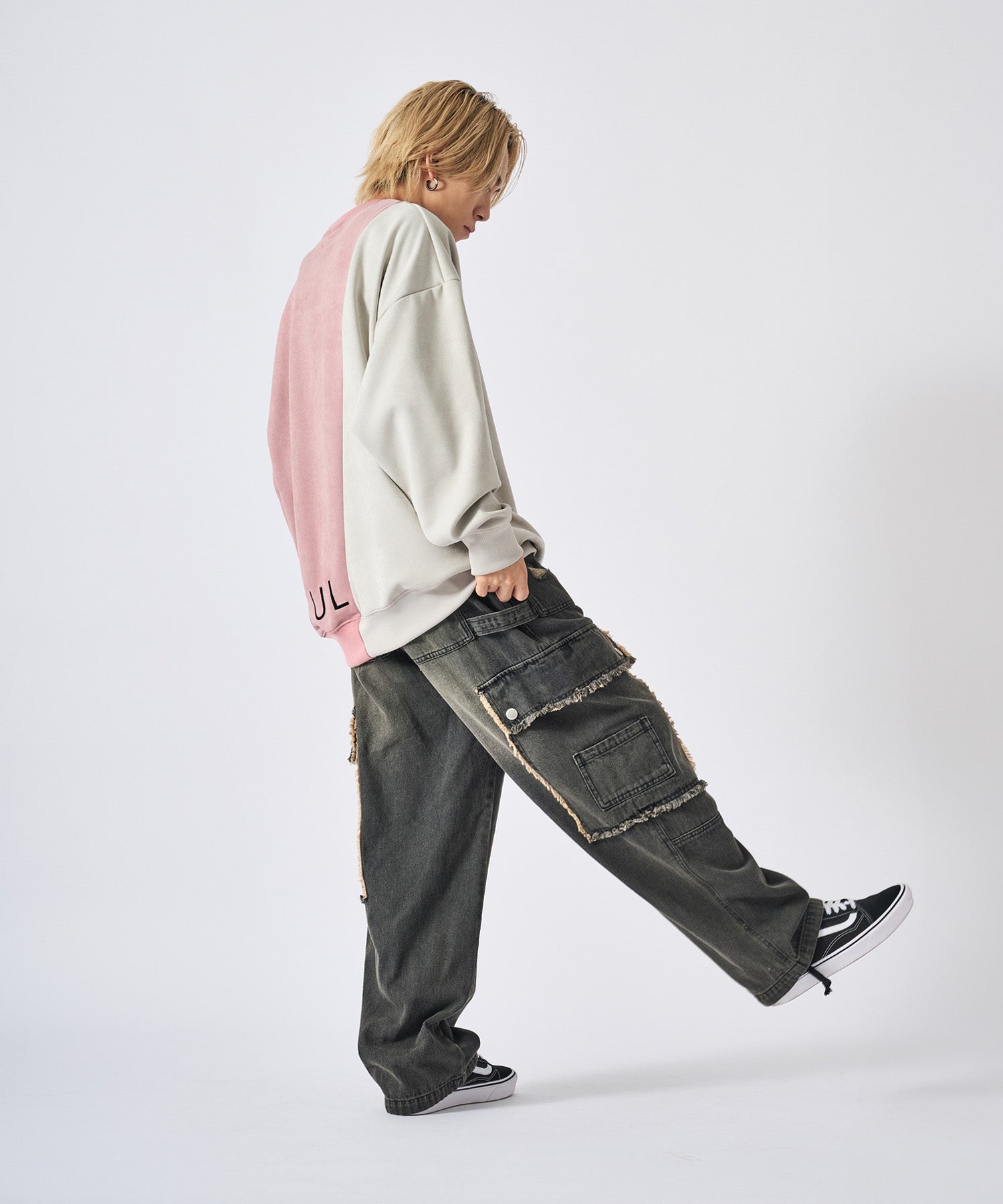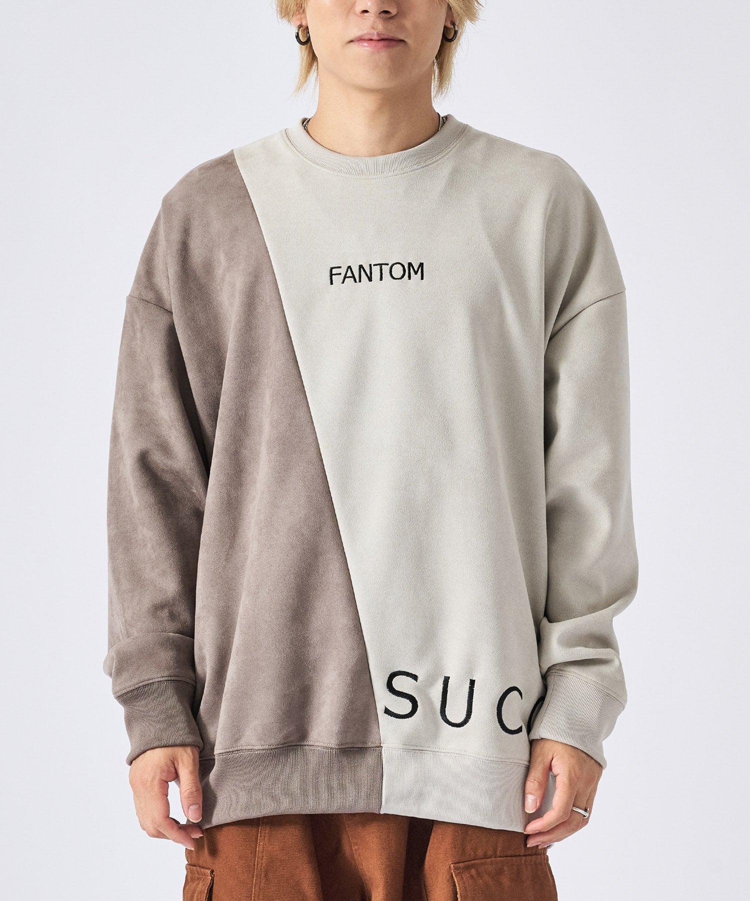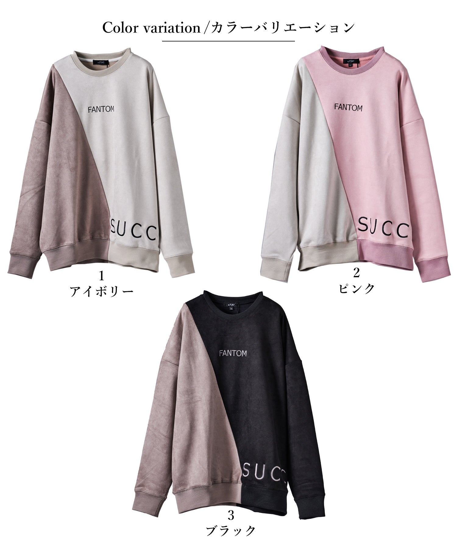 スエード調の素材をバイアスに切り替えたオーバーサイズのトレーナー