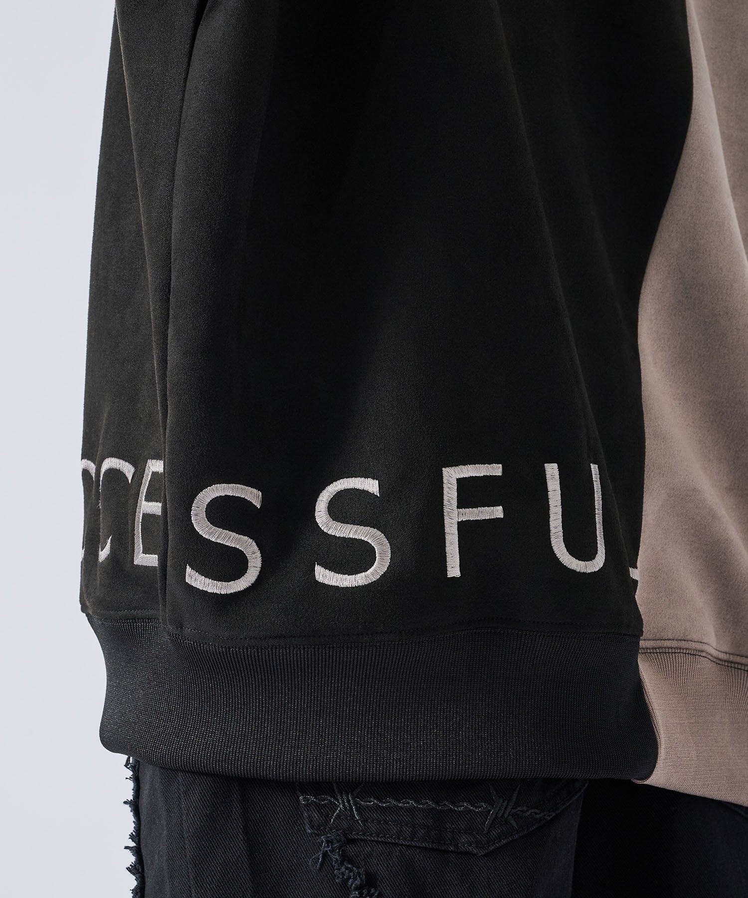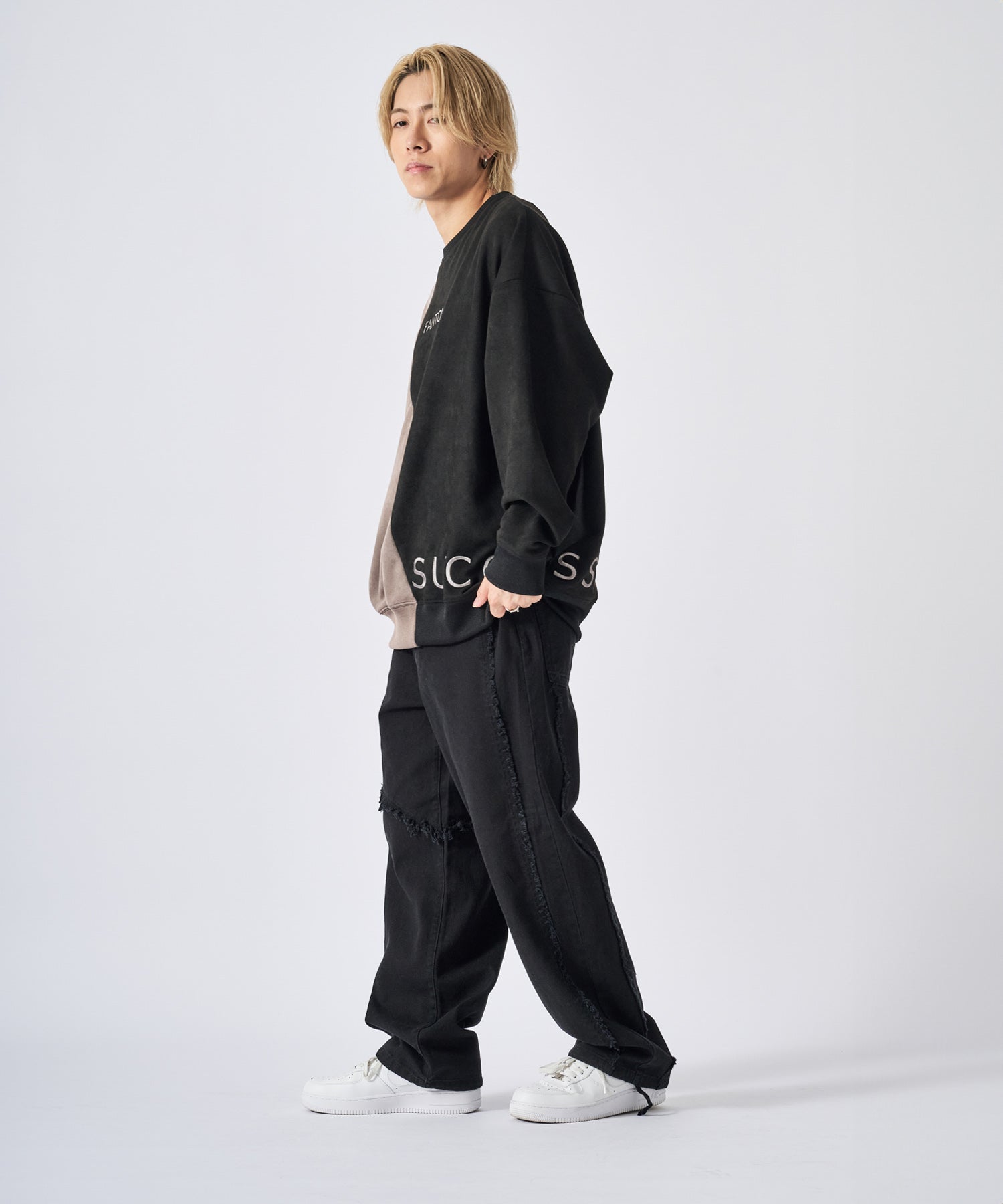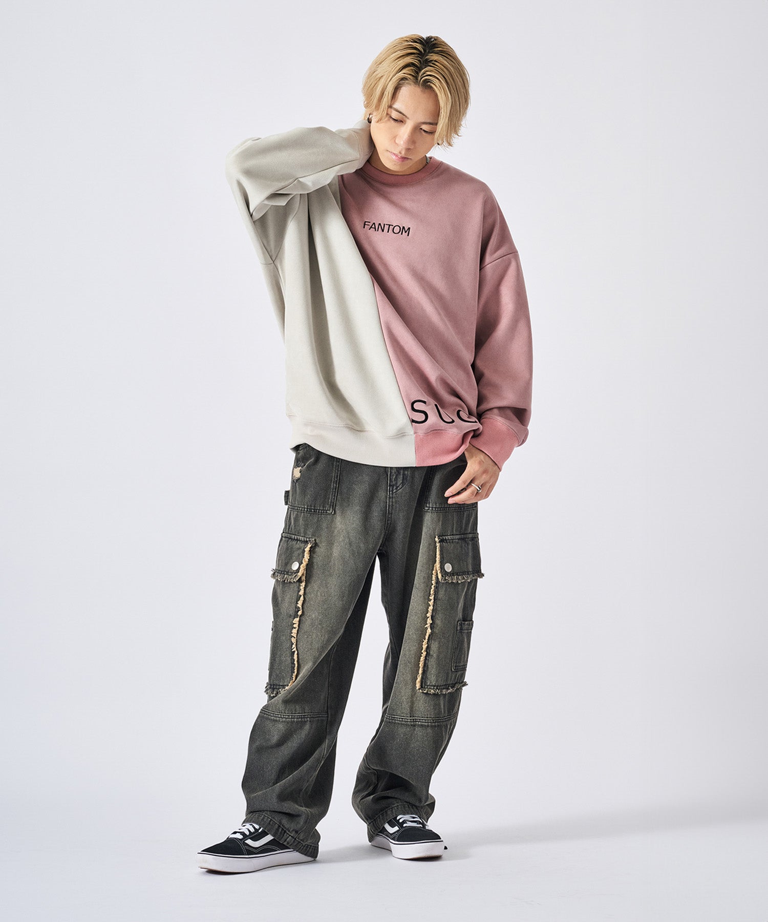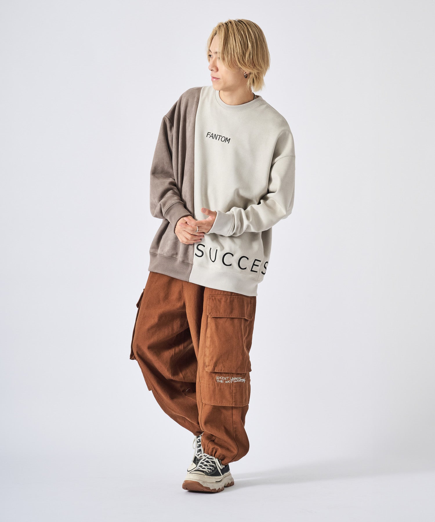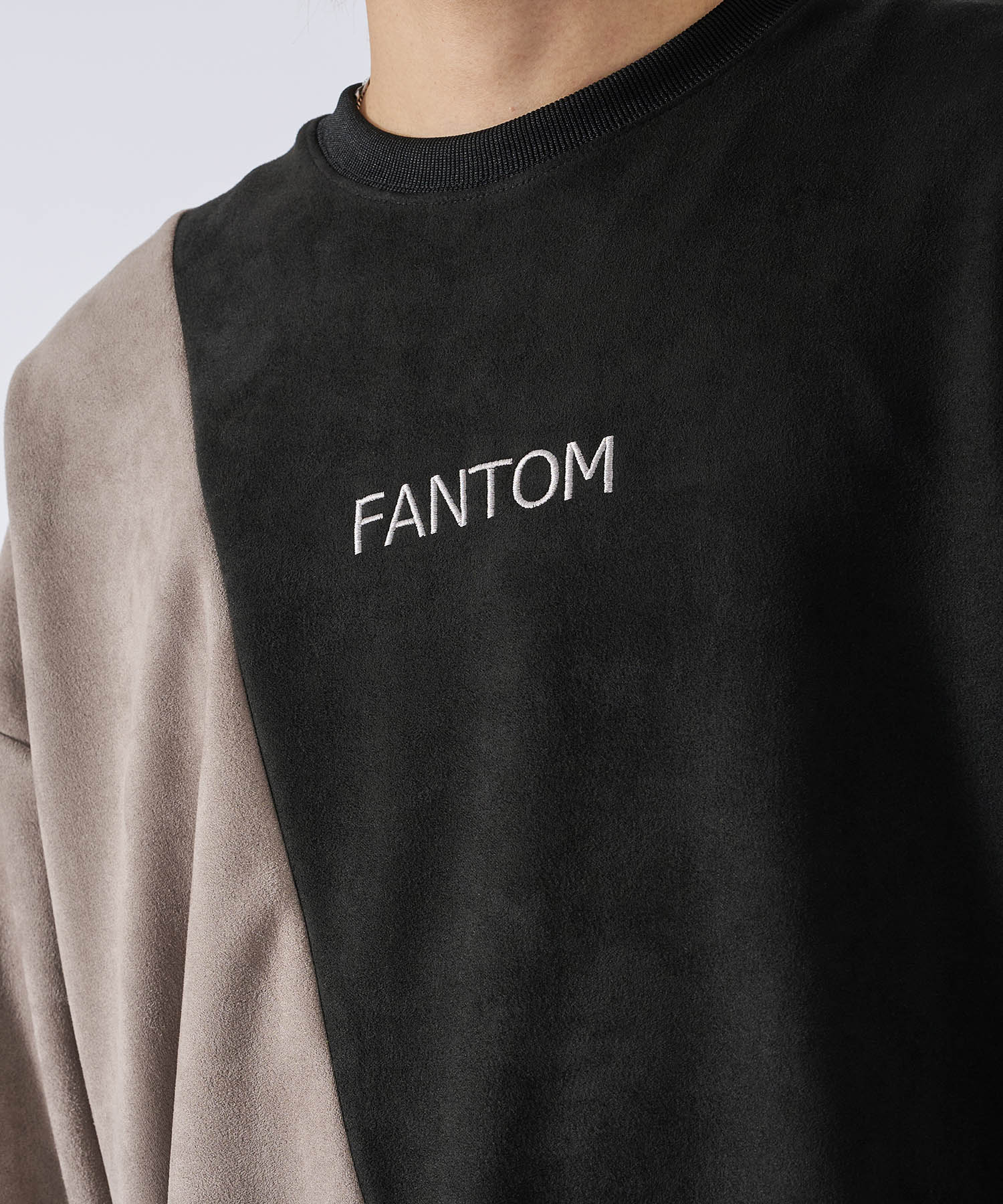 スエード調の素材をバイアスに切り替えたオーバーサイズのトレーナー