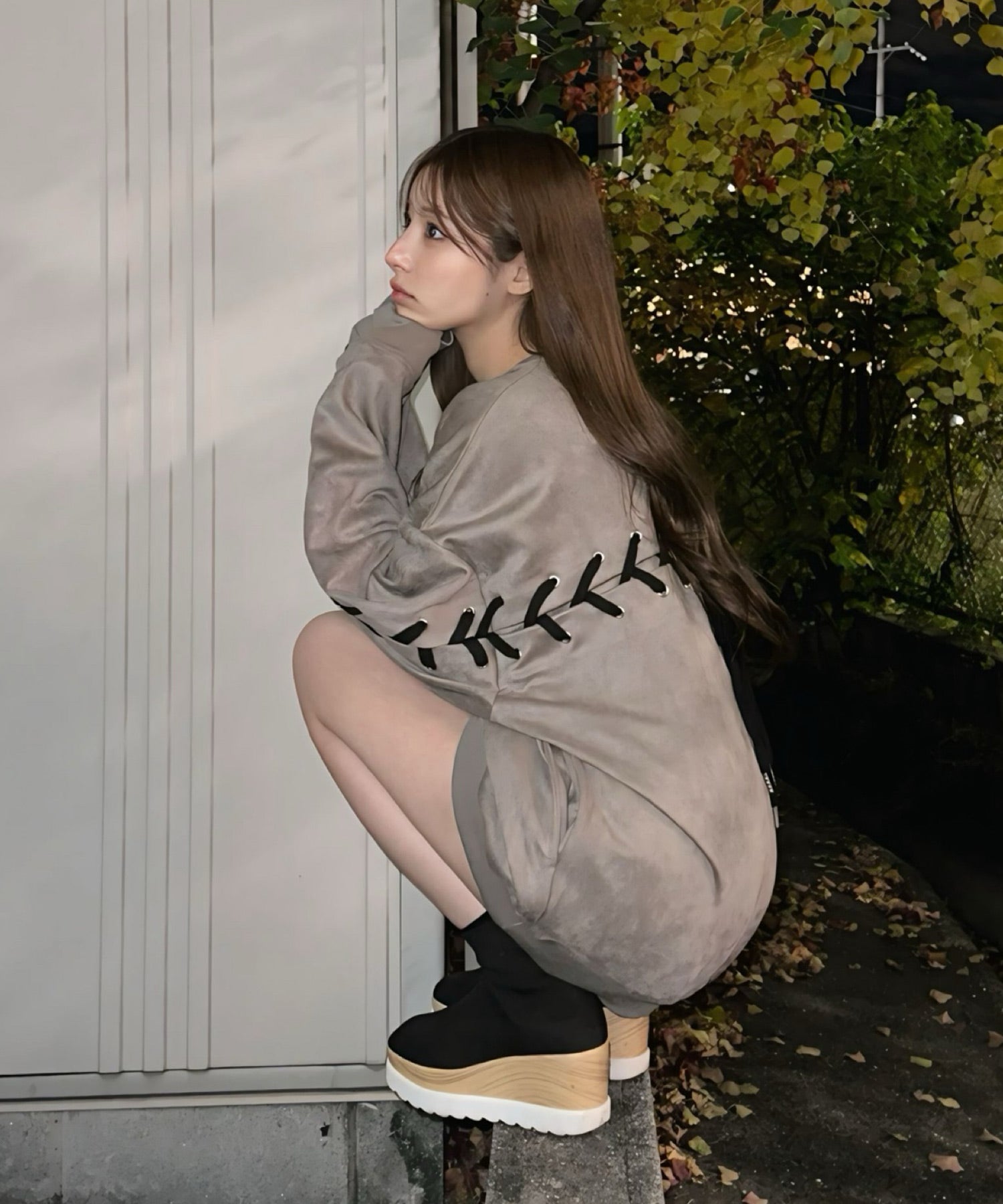スエードと相性が良いレースアップのデザインですが、リボンの様な可愛いさもあるデザイン