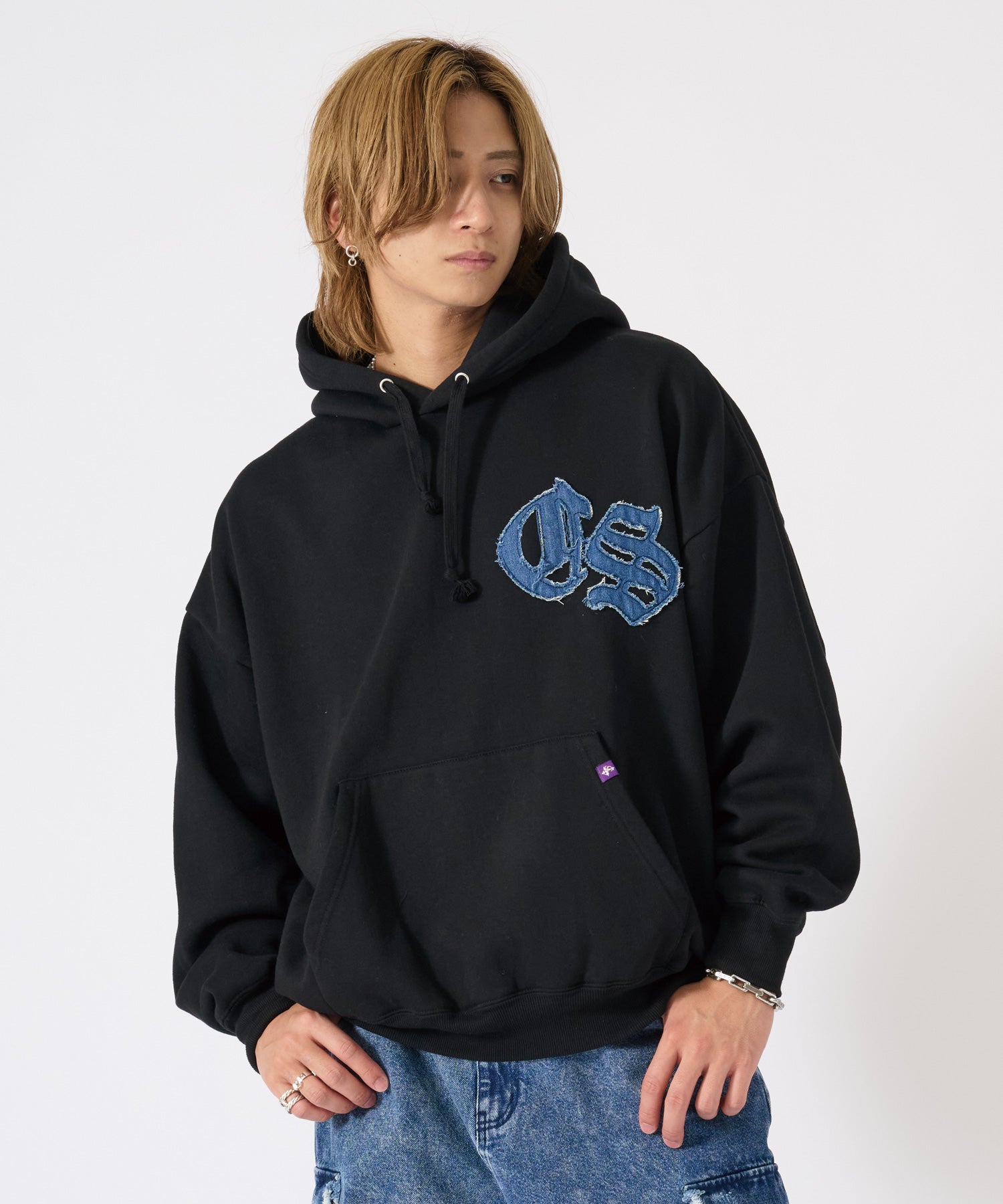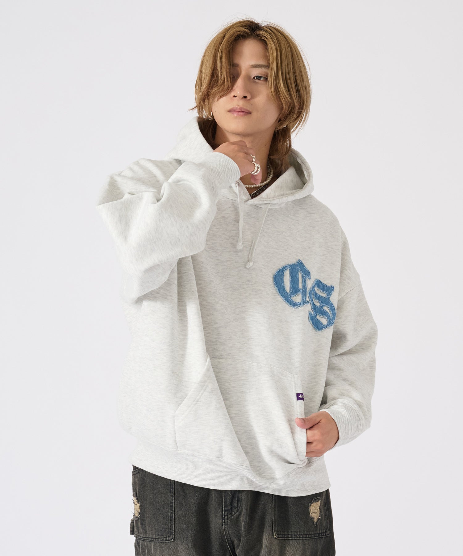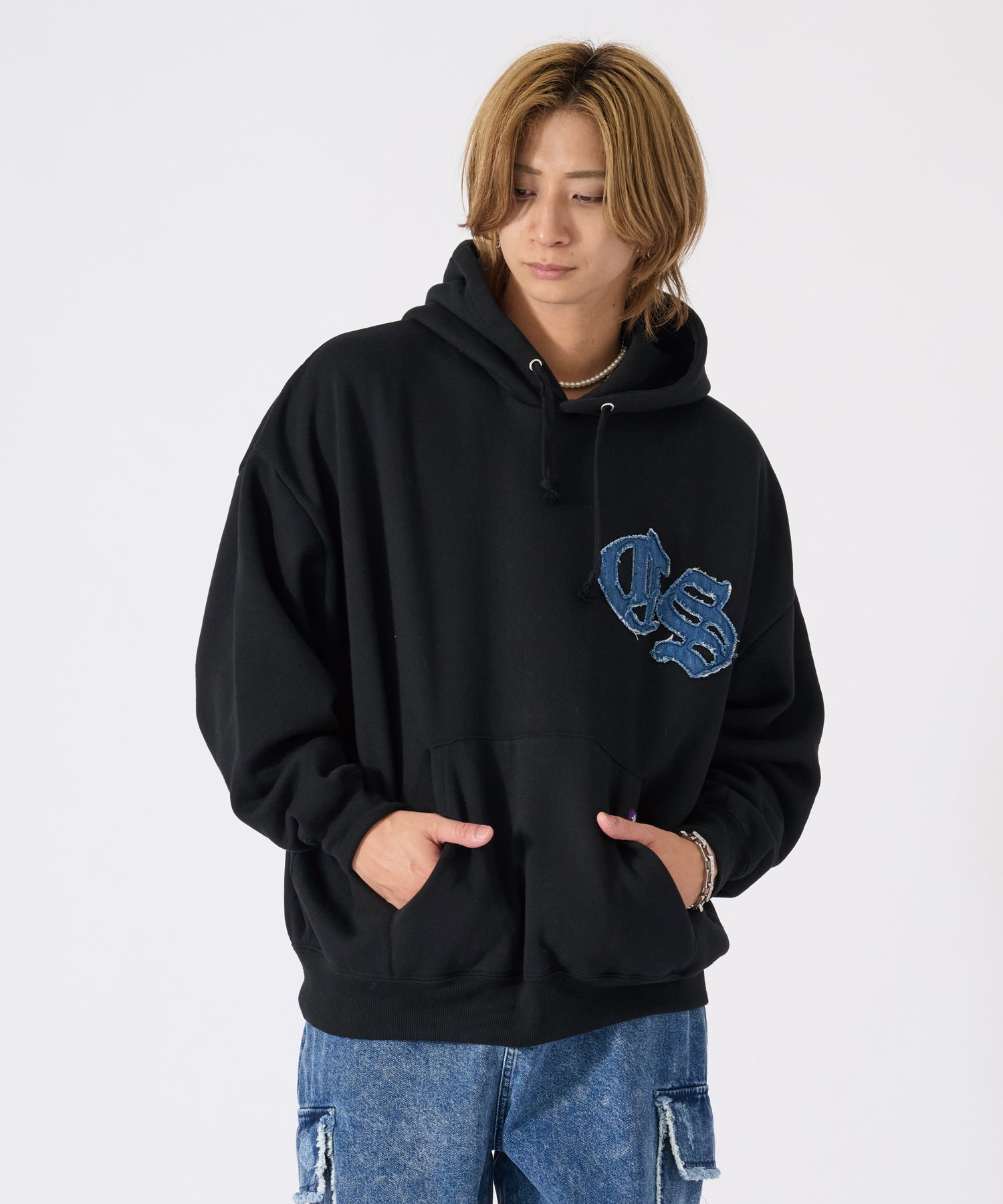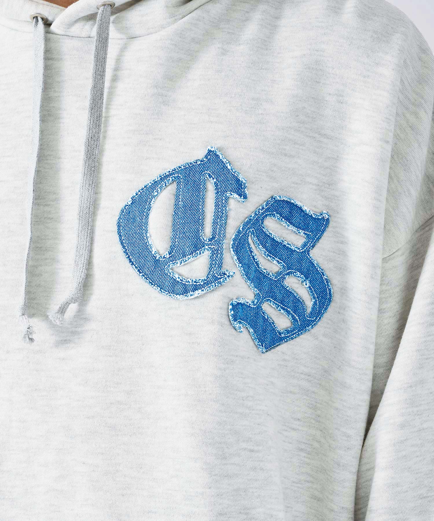デニムのアップリケが可愛いオーバーサイズのプルパーカー