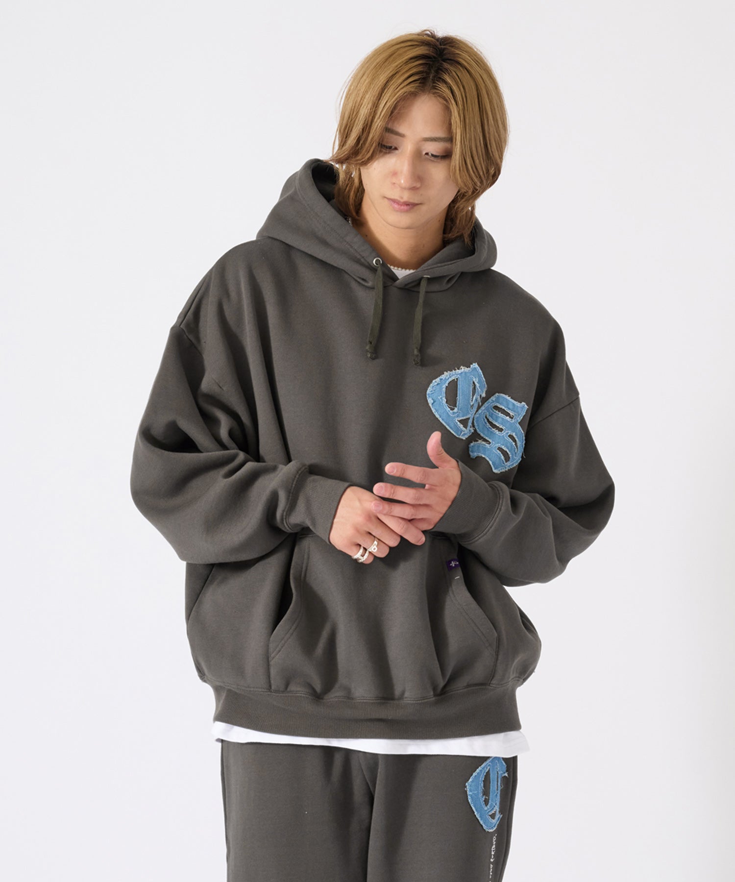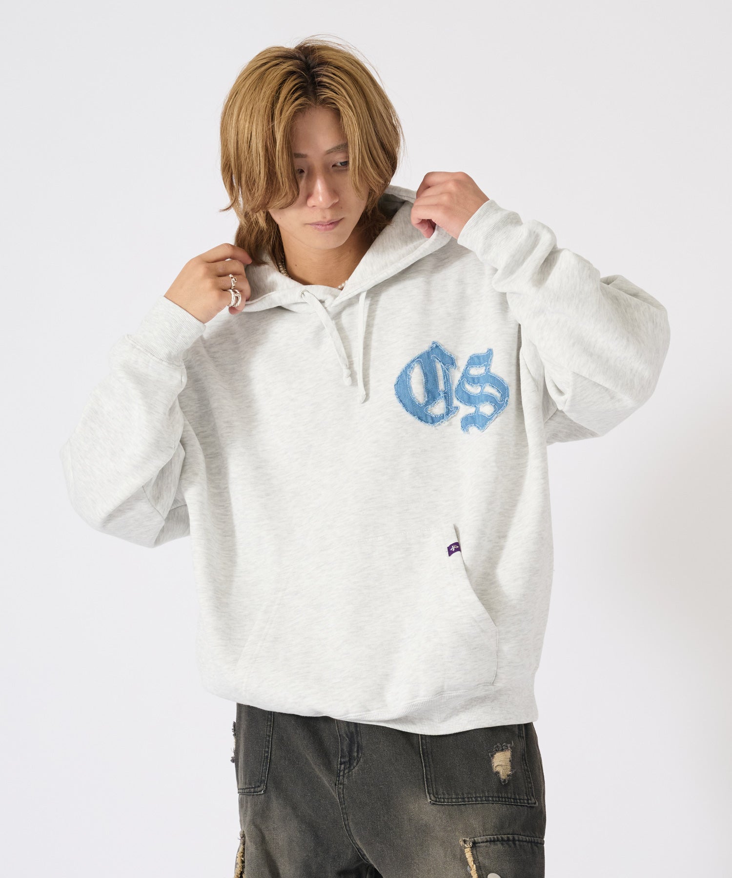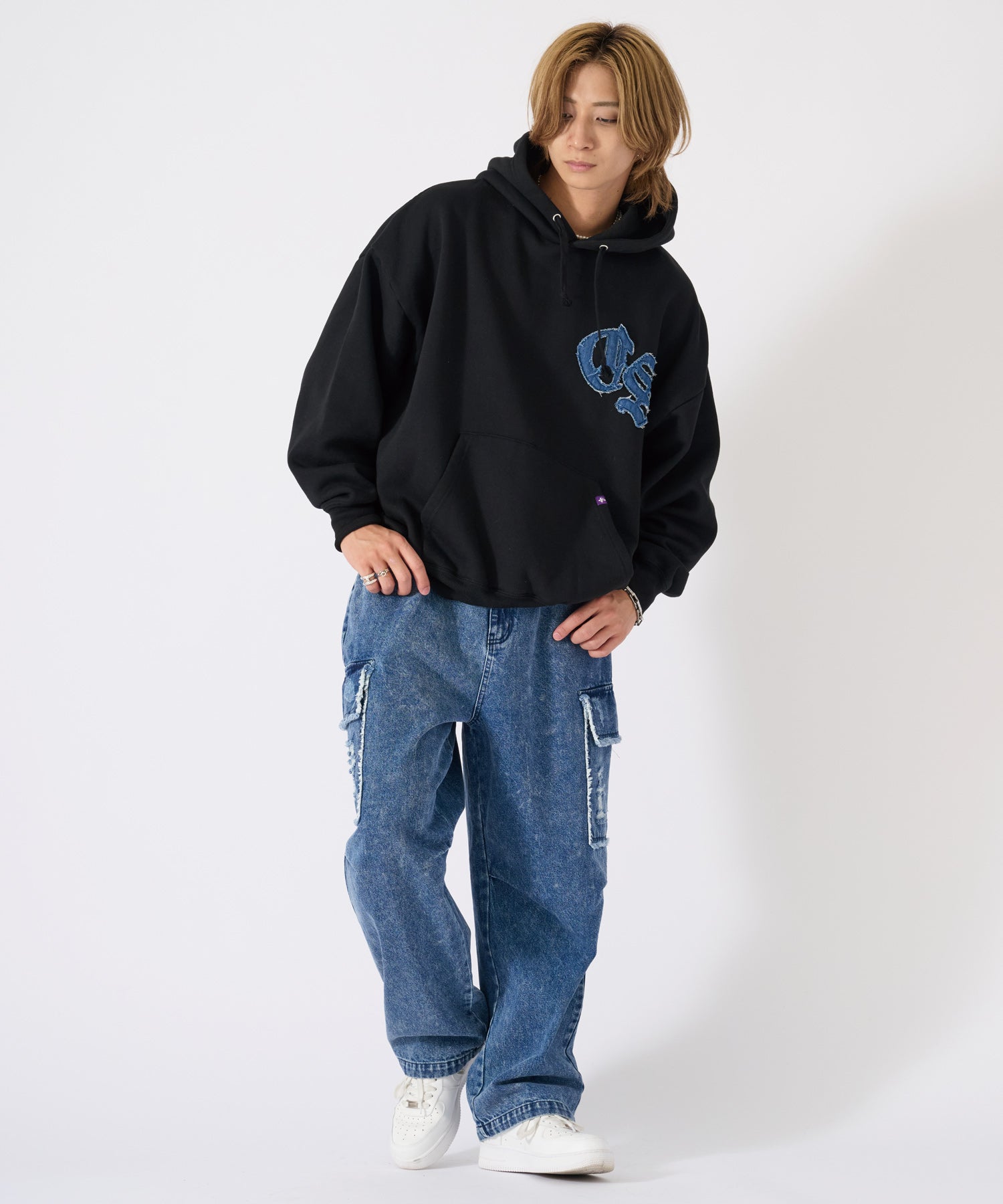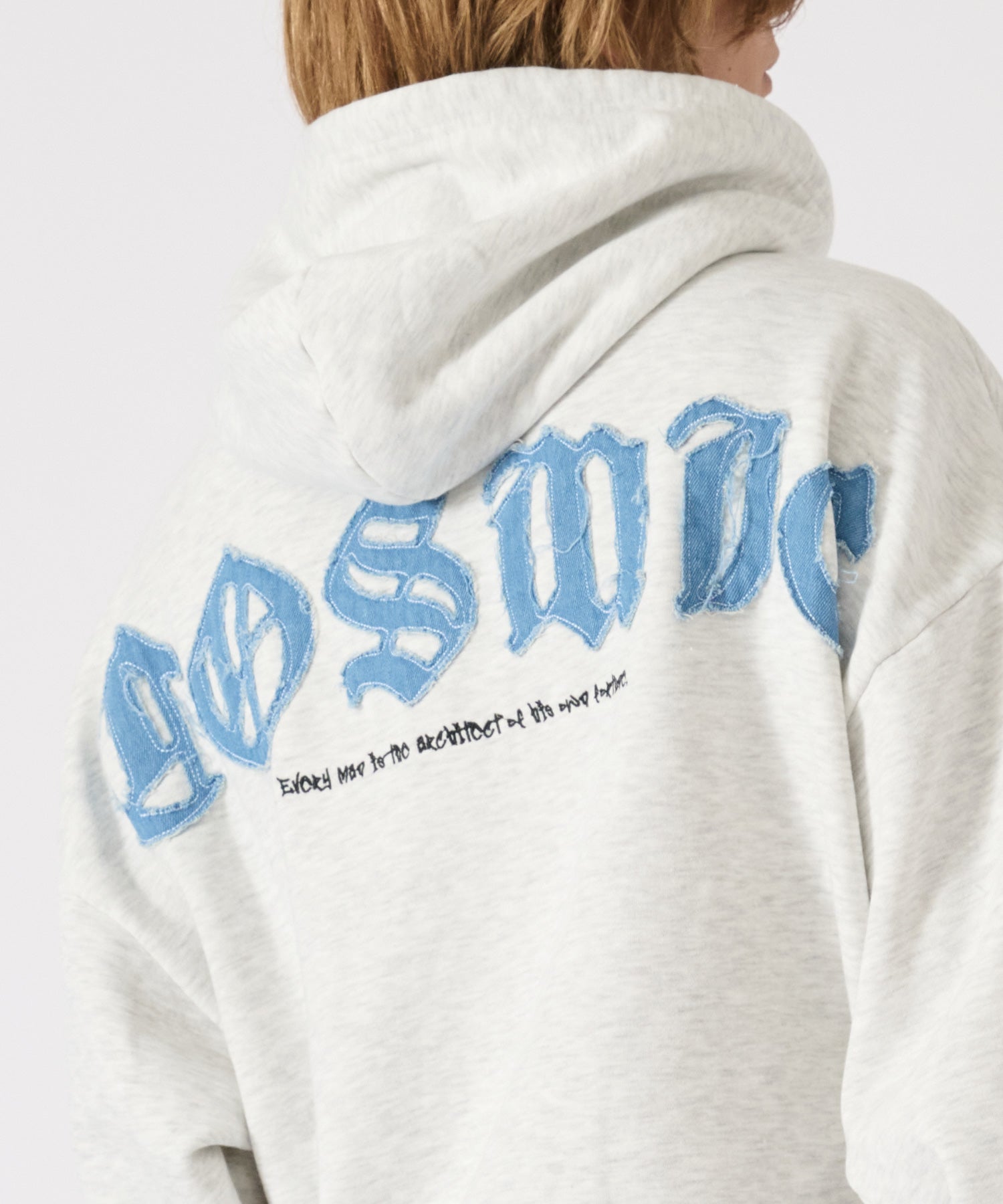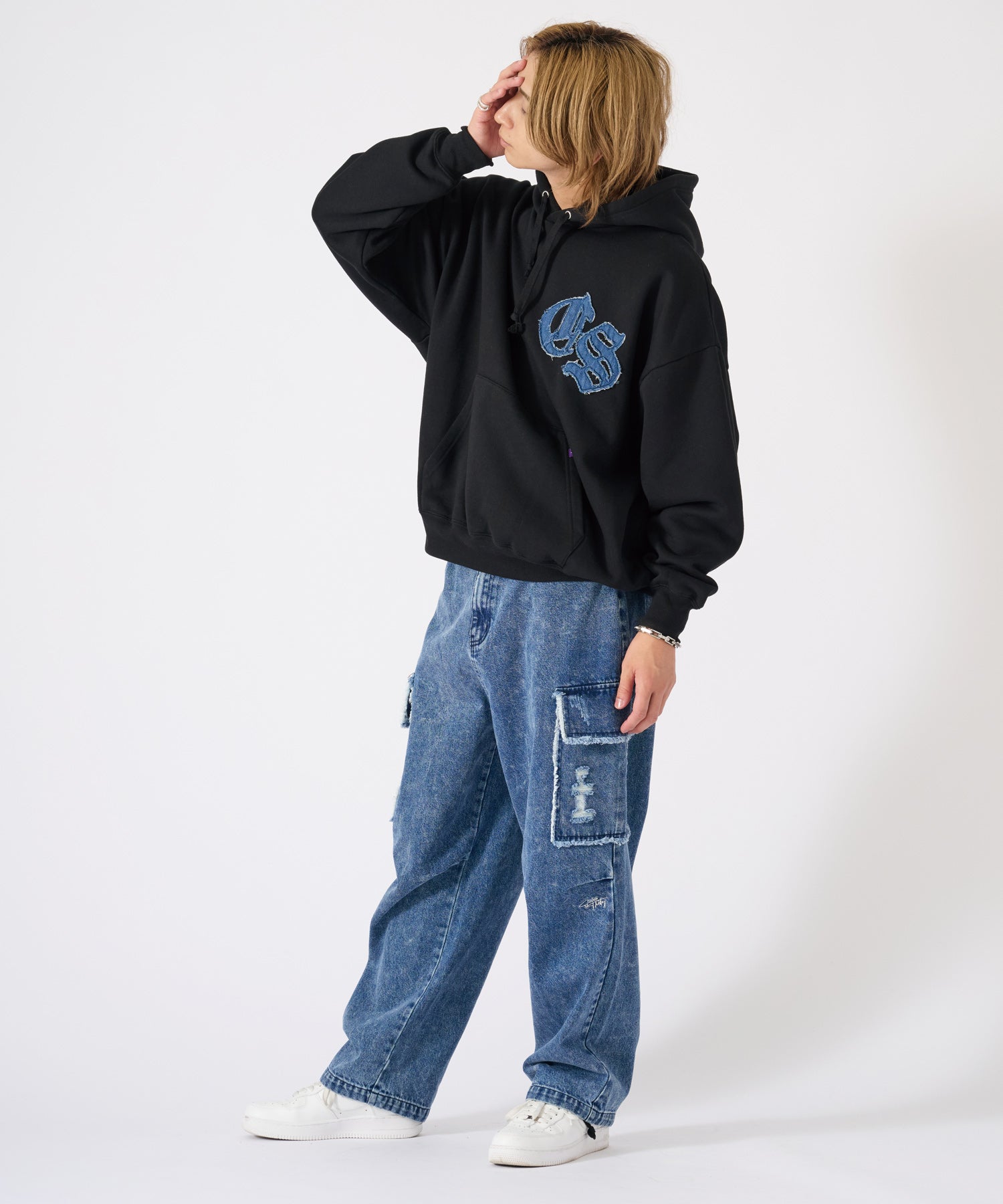 デニムのアップリケが可愛いオーバーサイズのプルパーカー