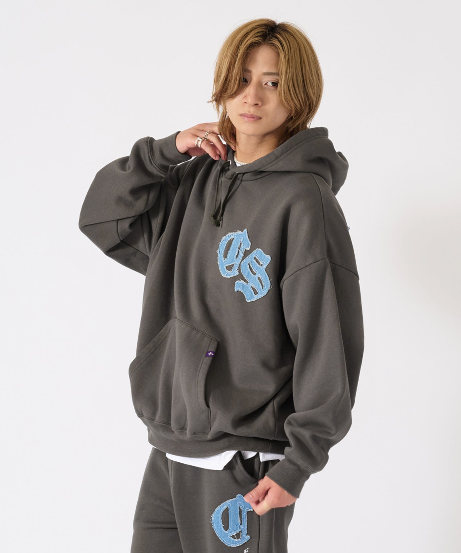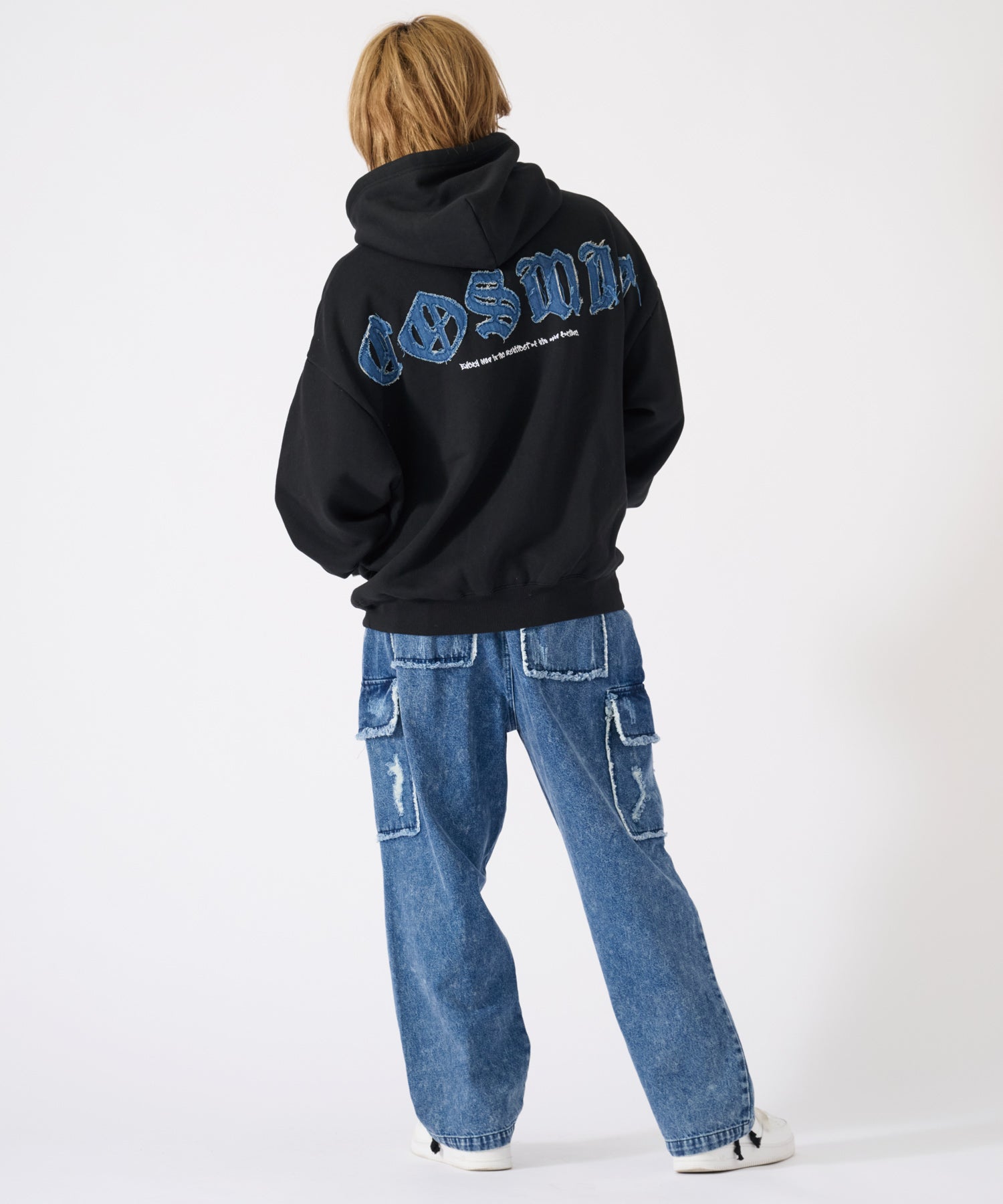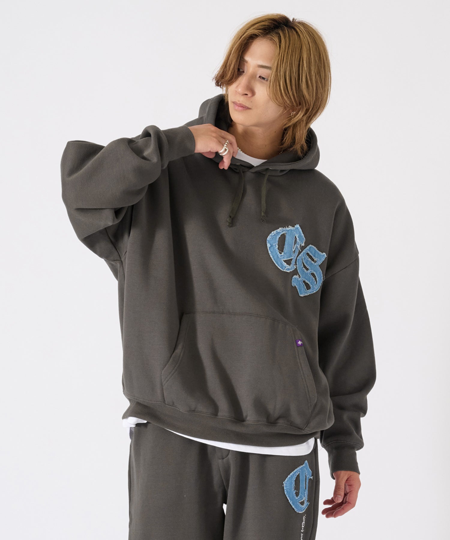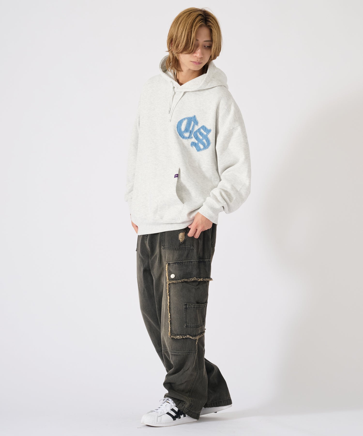 デニムのアップリケが可愛いオーバーサイズのプルパーカー