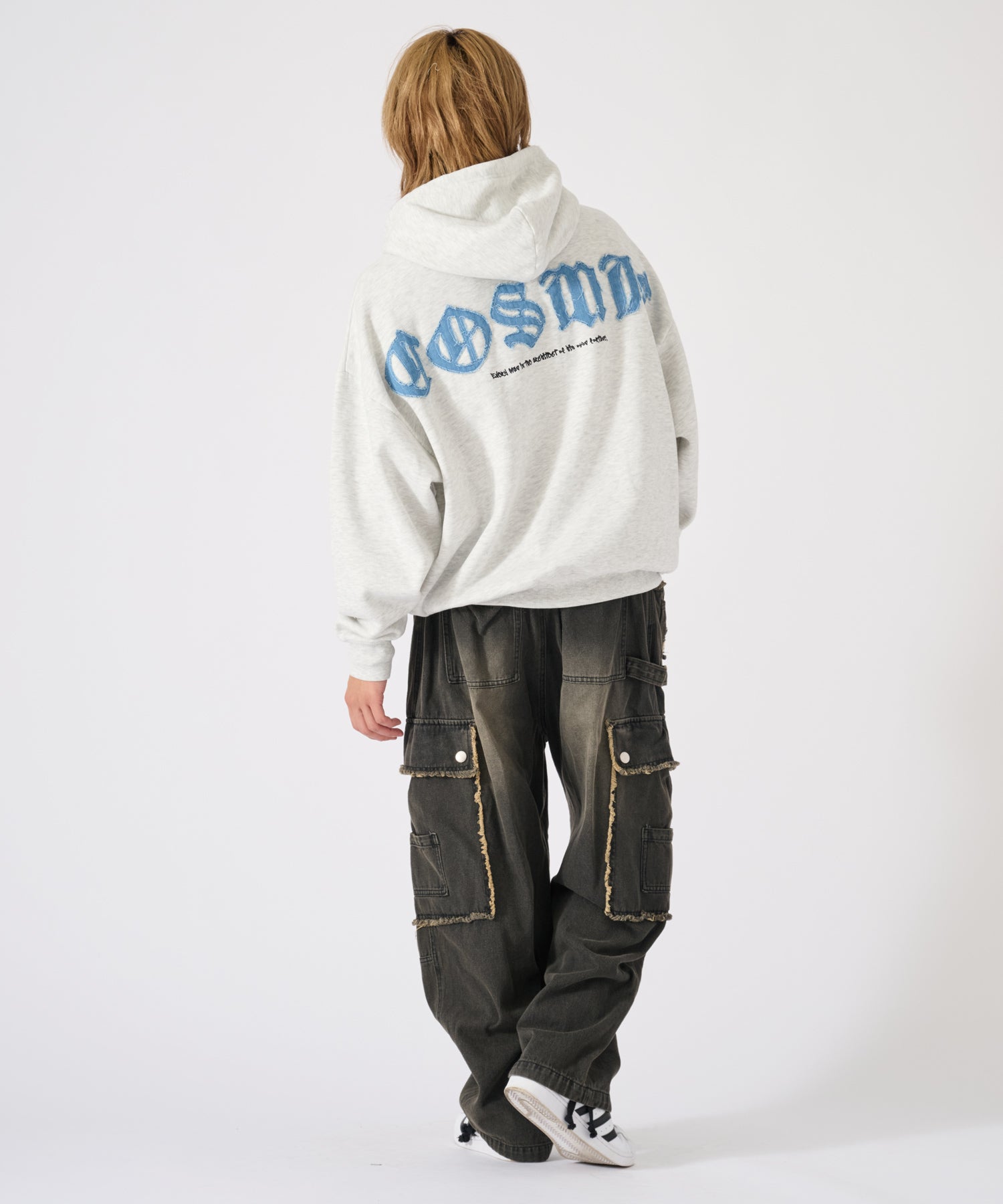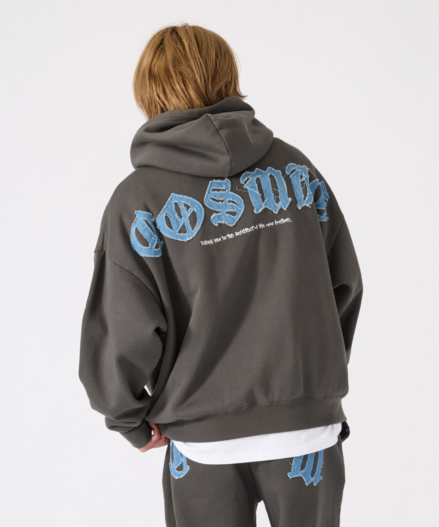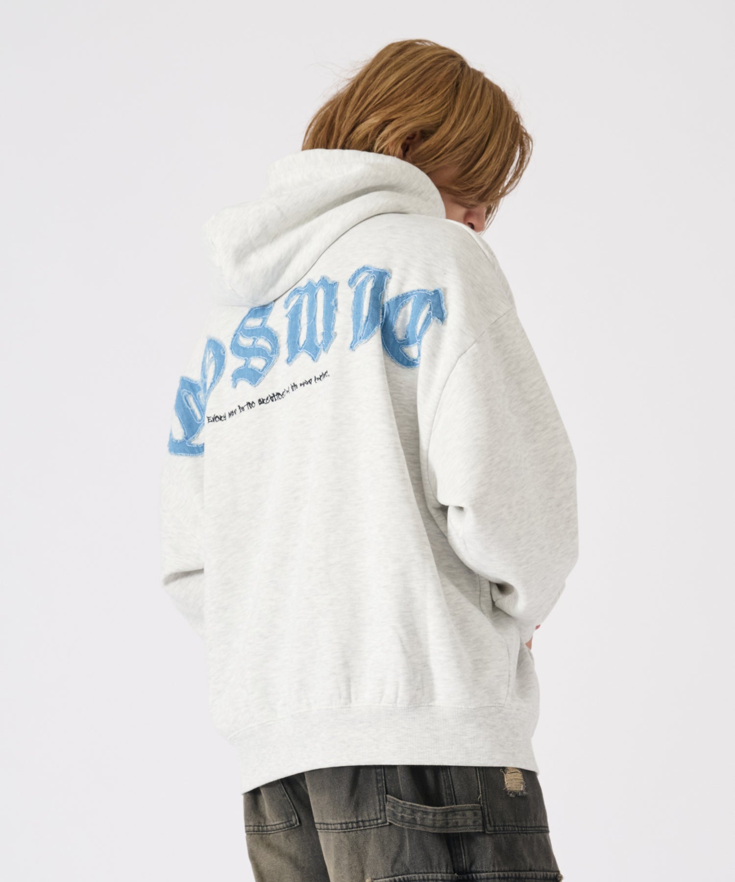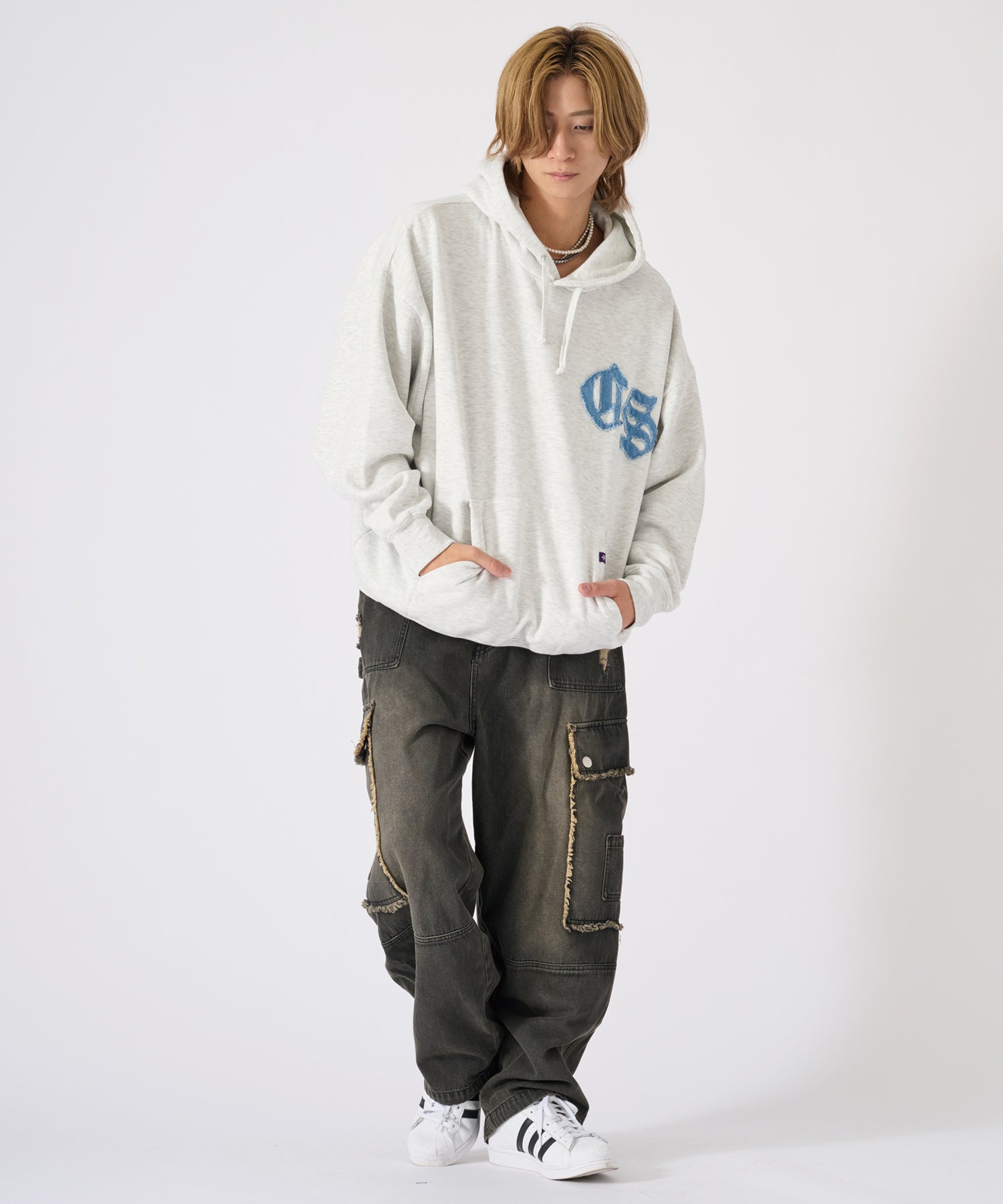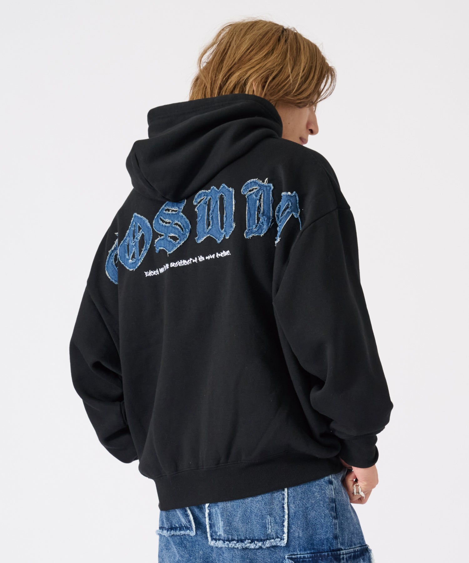 デニムのアップリケが可愛いオーバーサイズのプルパーカー