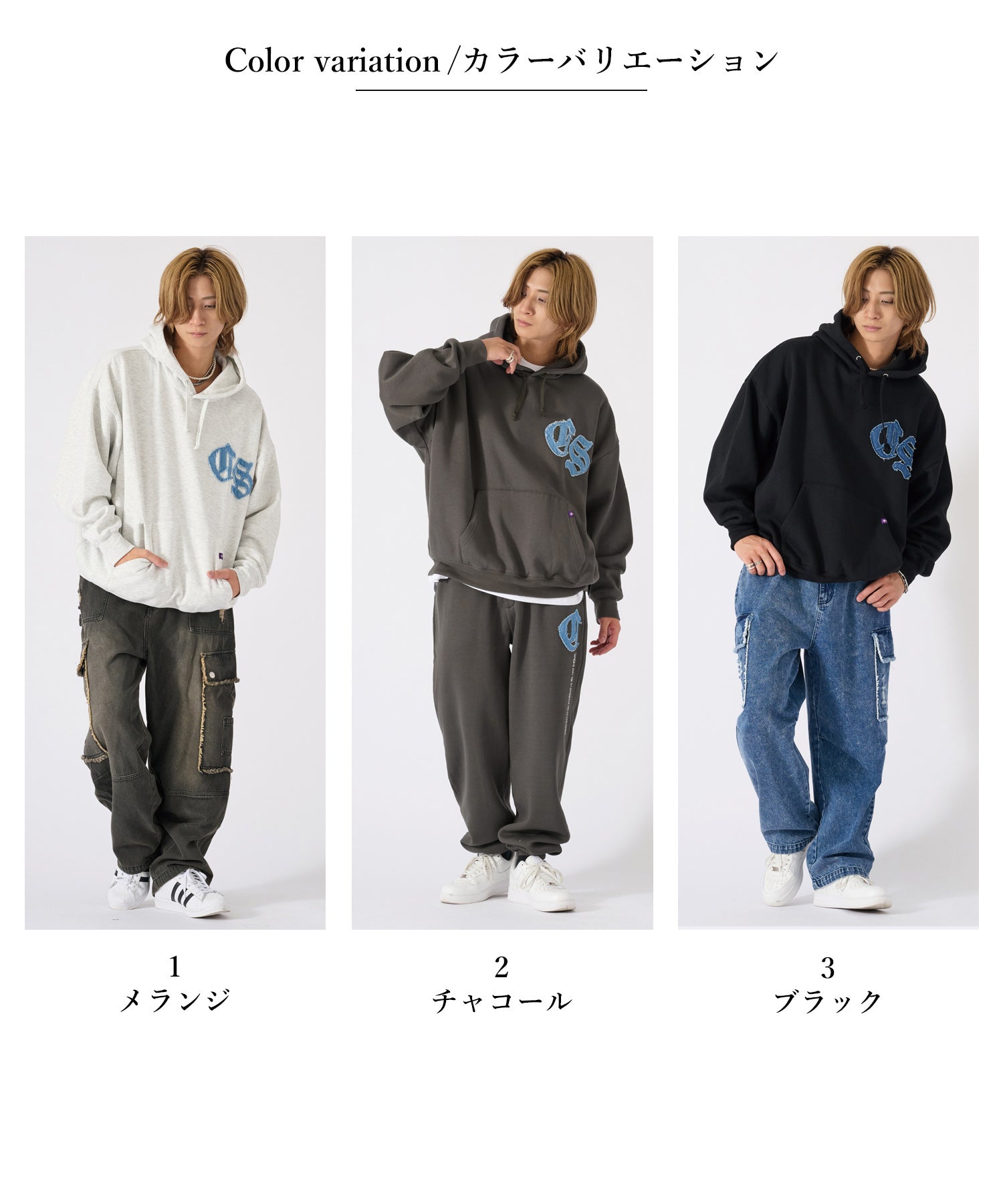 裏起毛のスウェット素材は、ボリュームがあってオーバーサイズなシルエットがより演出されて冬でも温かく着られる