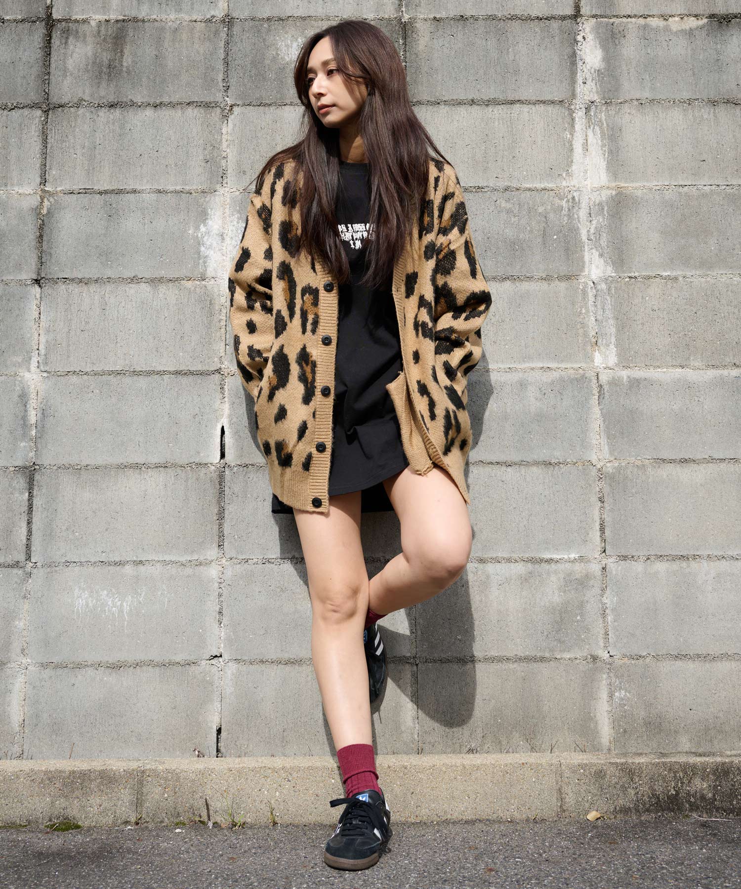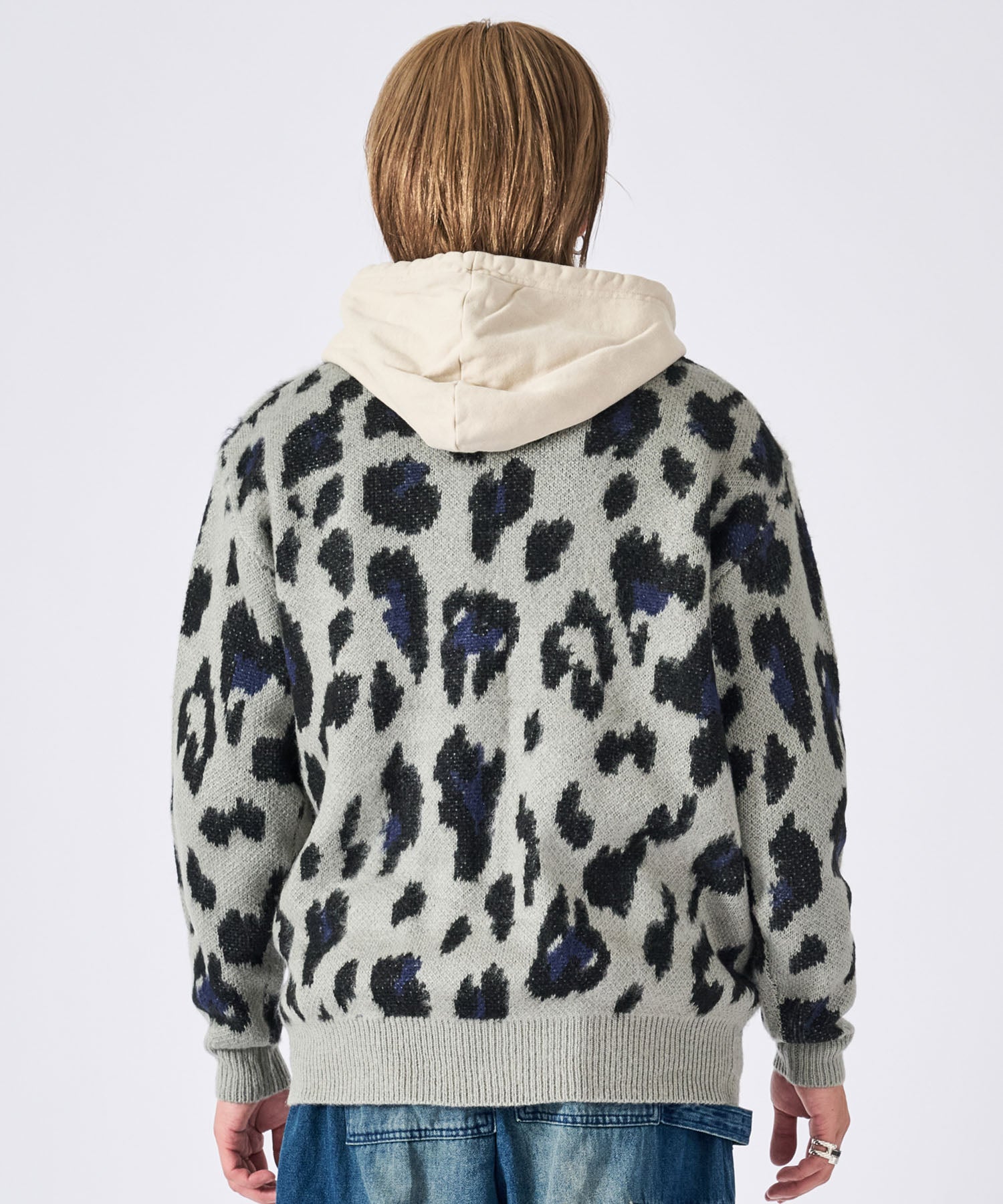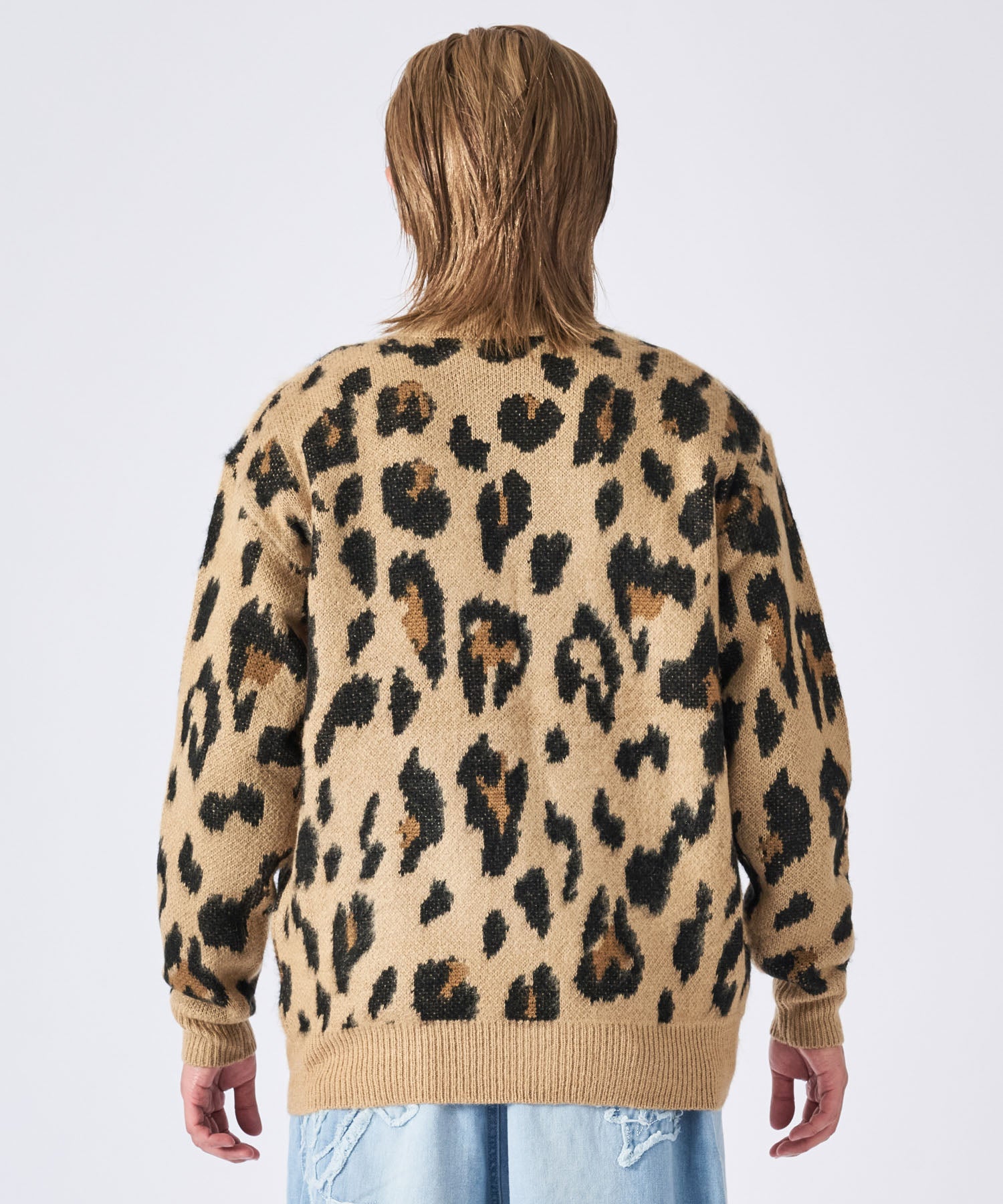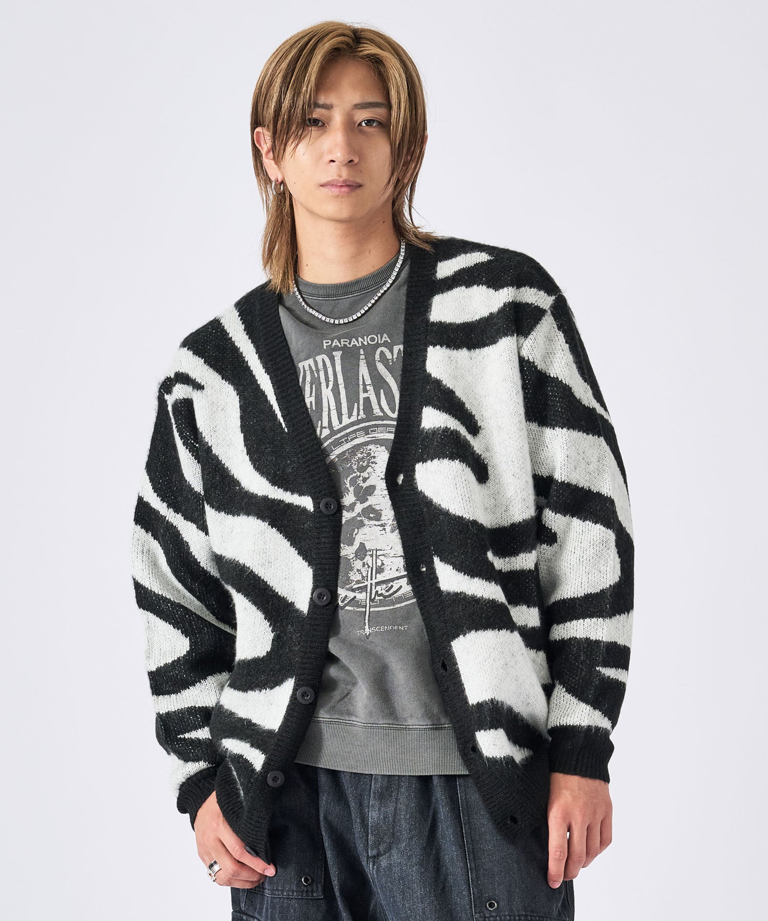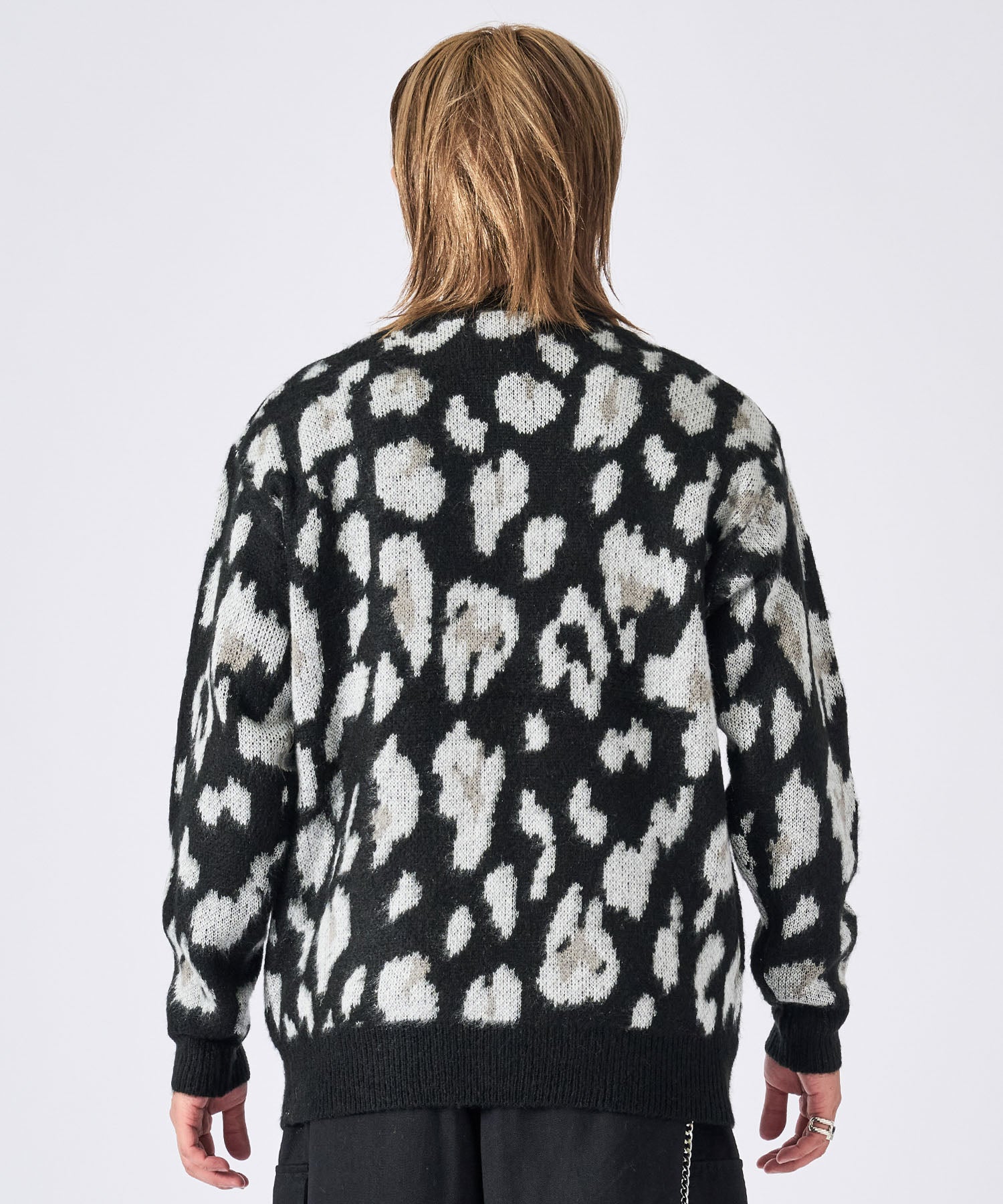 モヘア調のエアリーな風合いで、アニマル調の総柄ビッグカーディガン