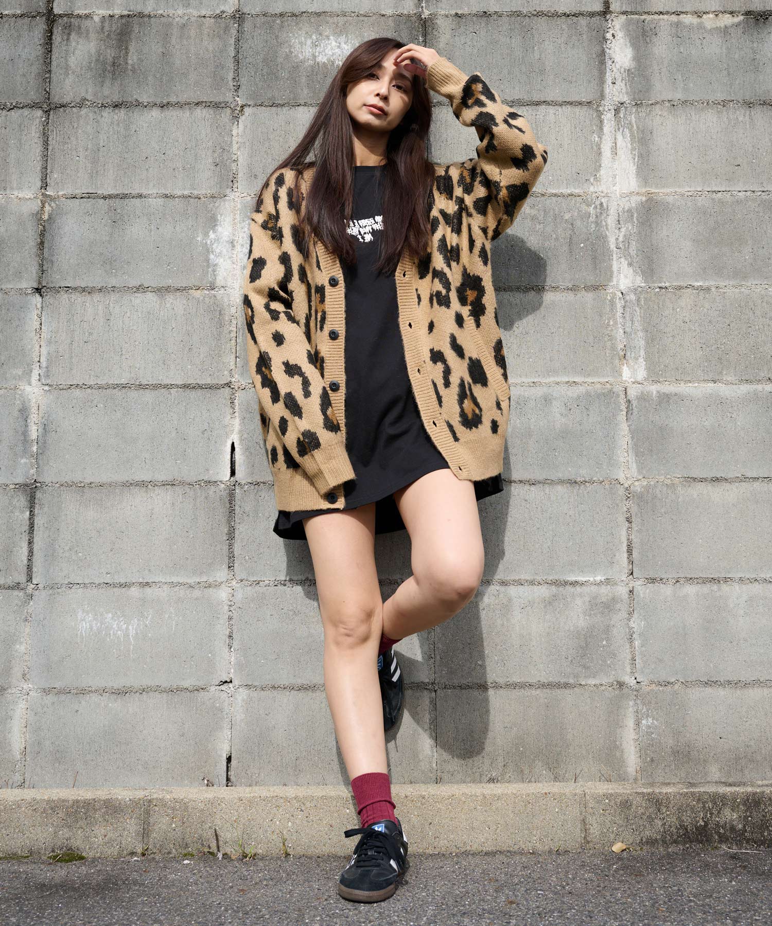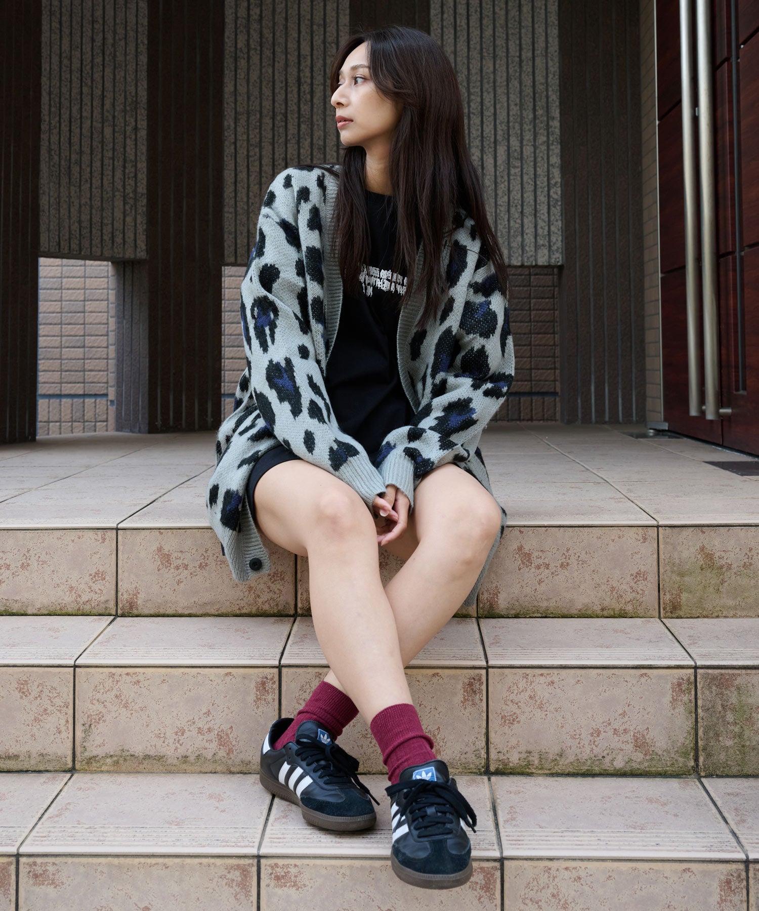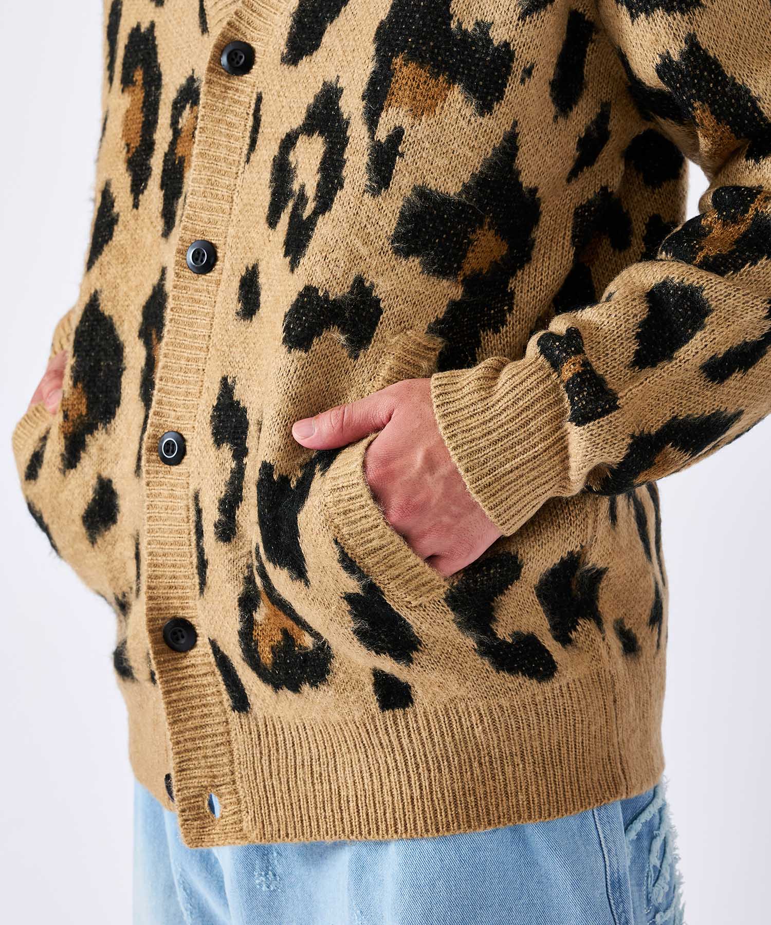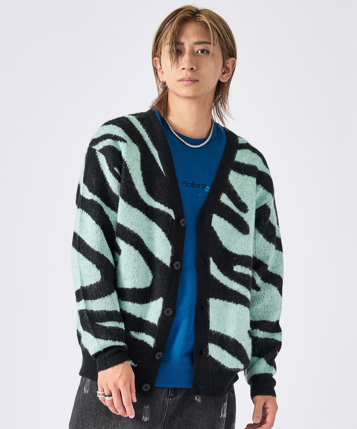 モヘア調のエアリーな風合いで、アニマル調の総柄ビッグカーディガン
