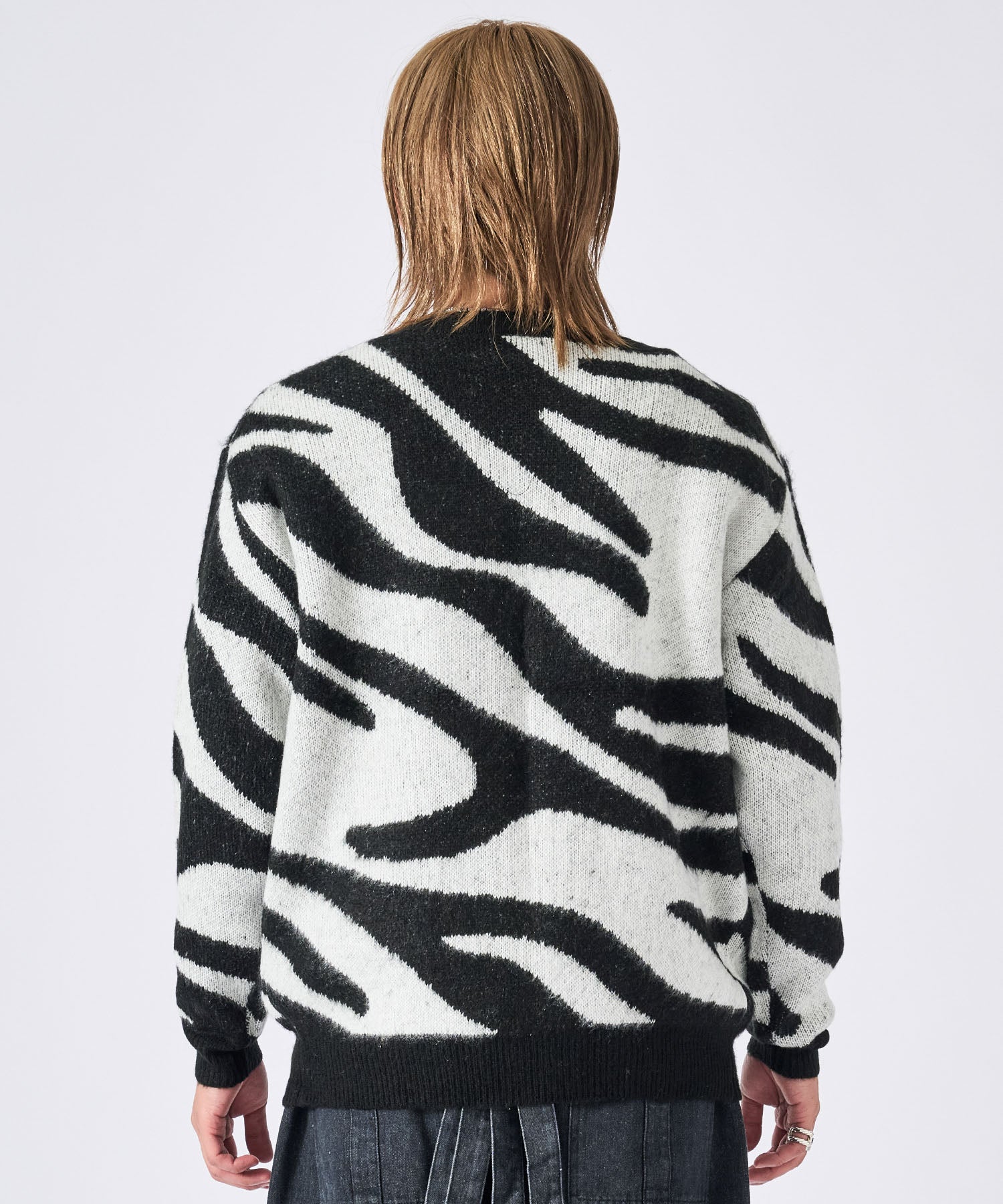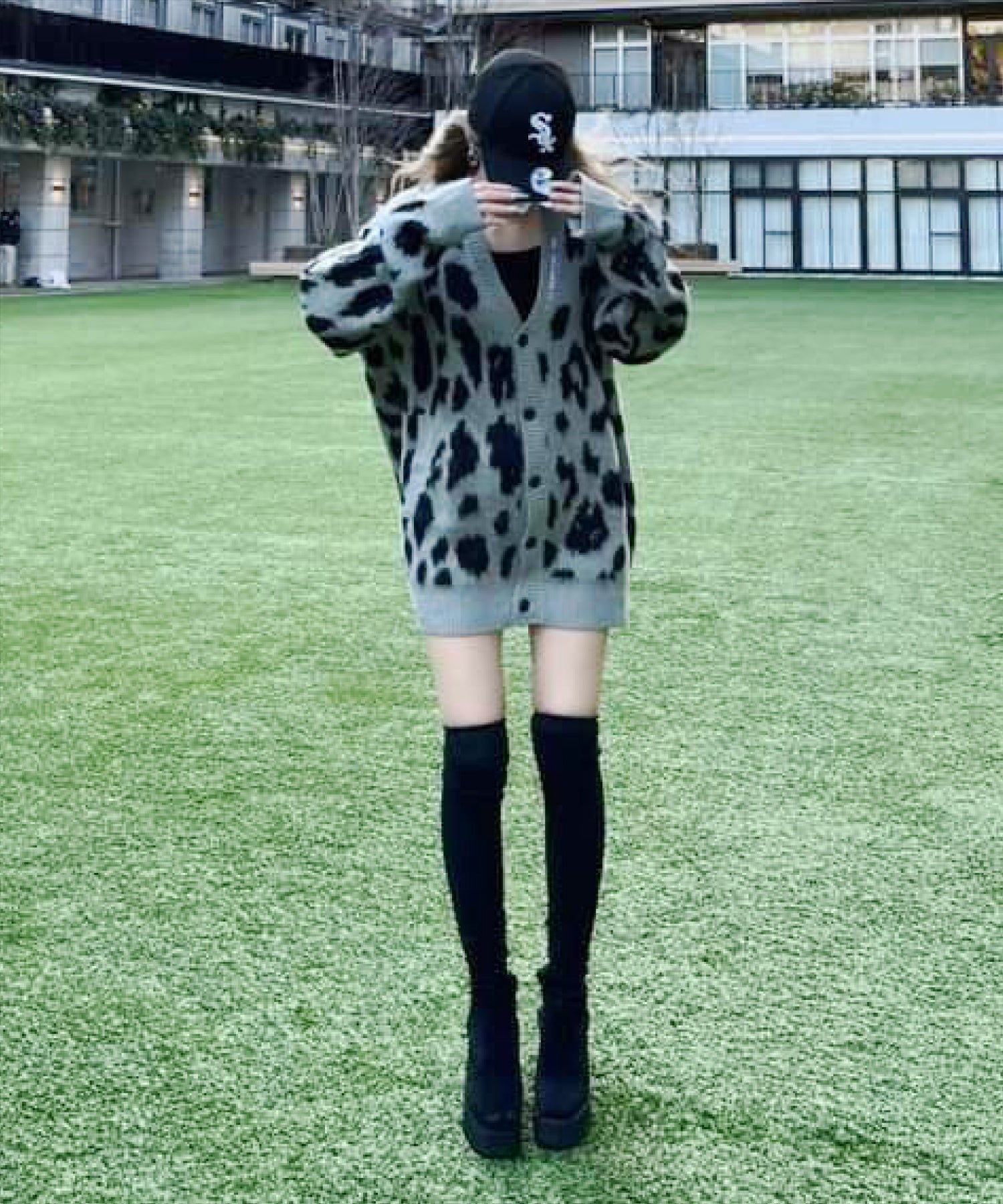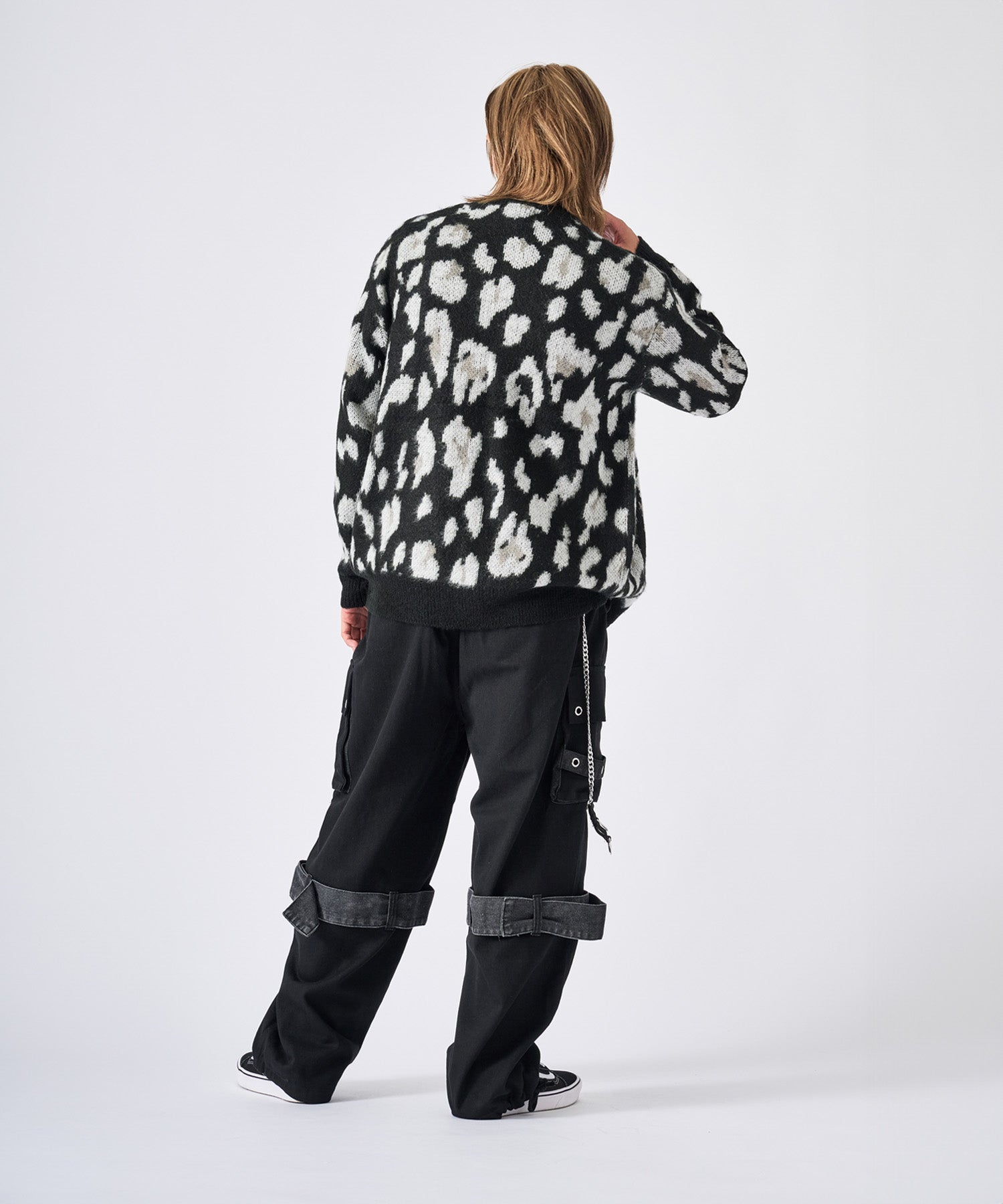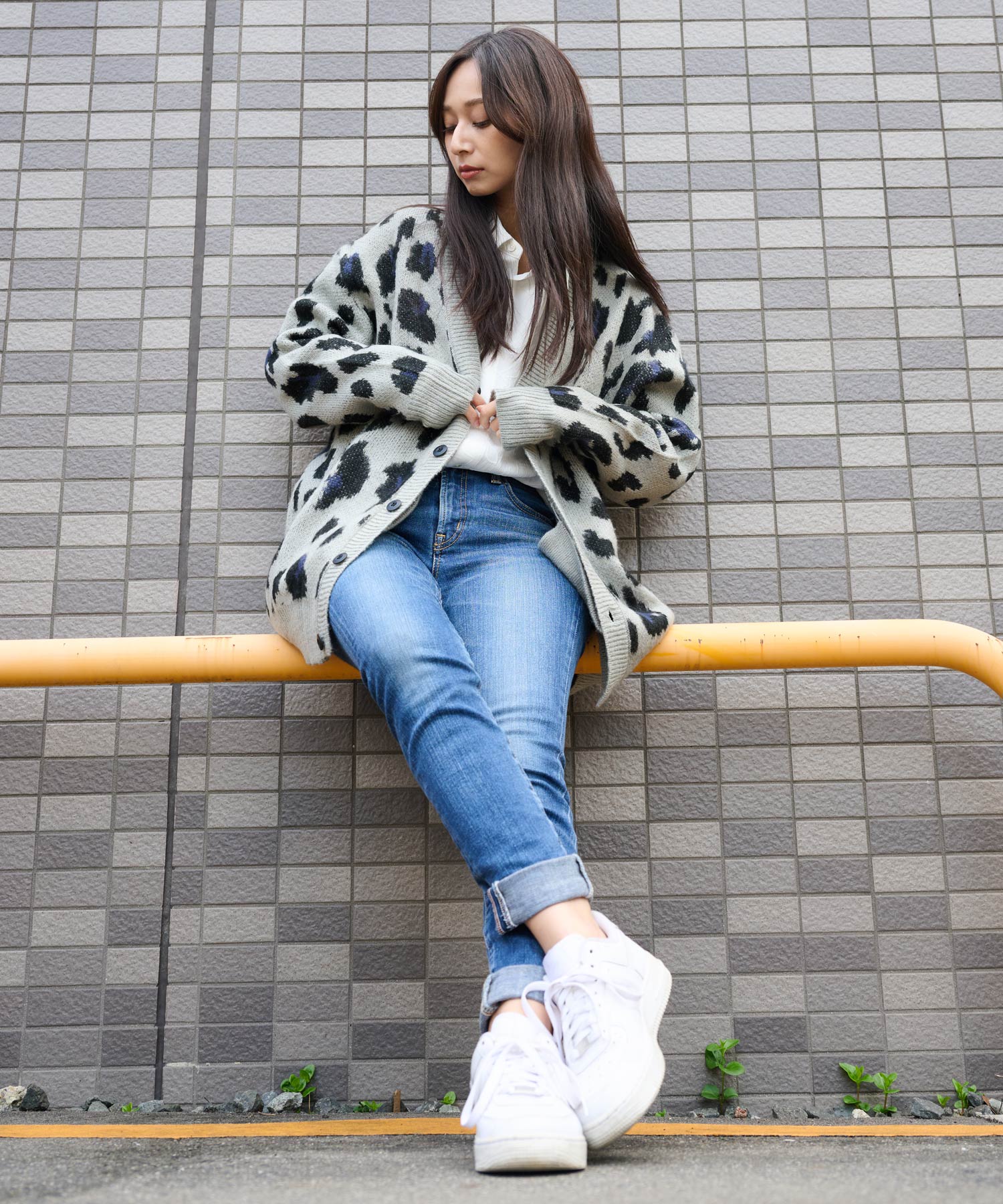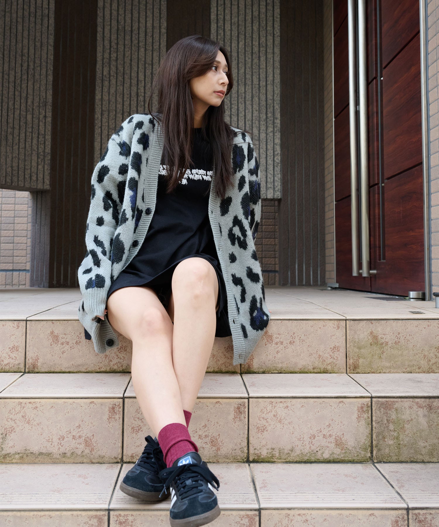 モヘア調のエアリーな風合いで、アニマル調の総柄ビッグカーディガン
