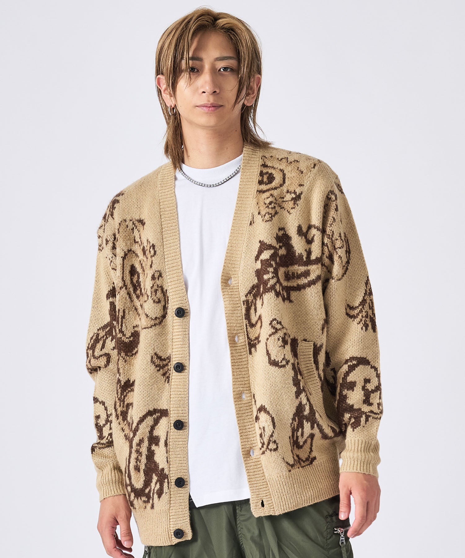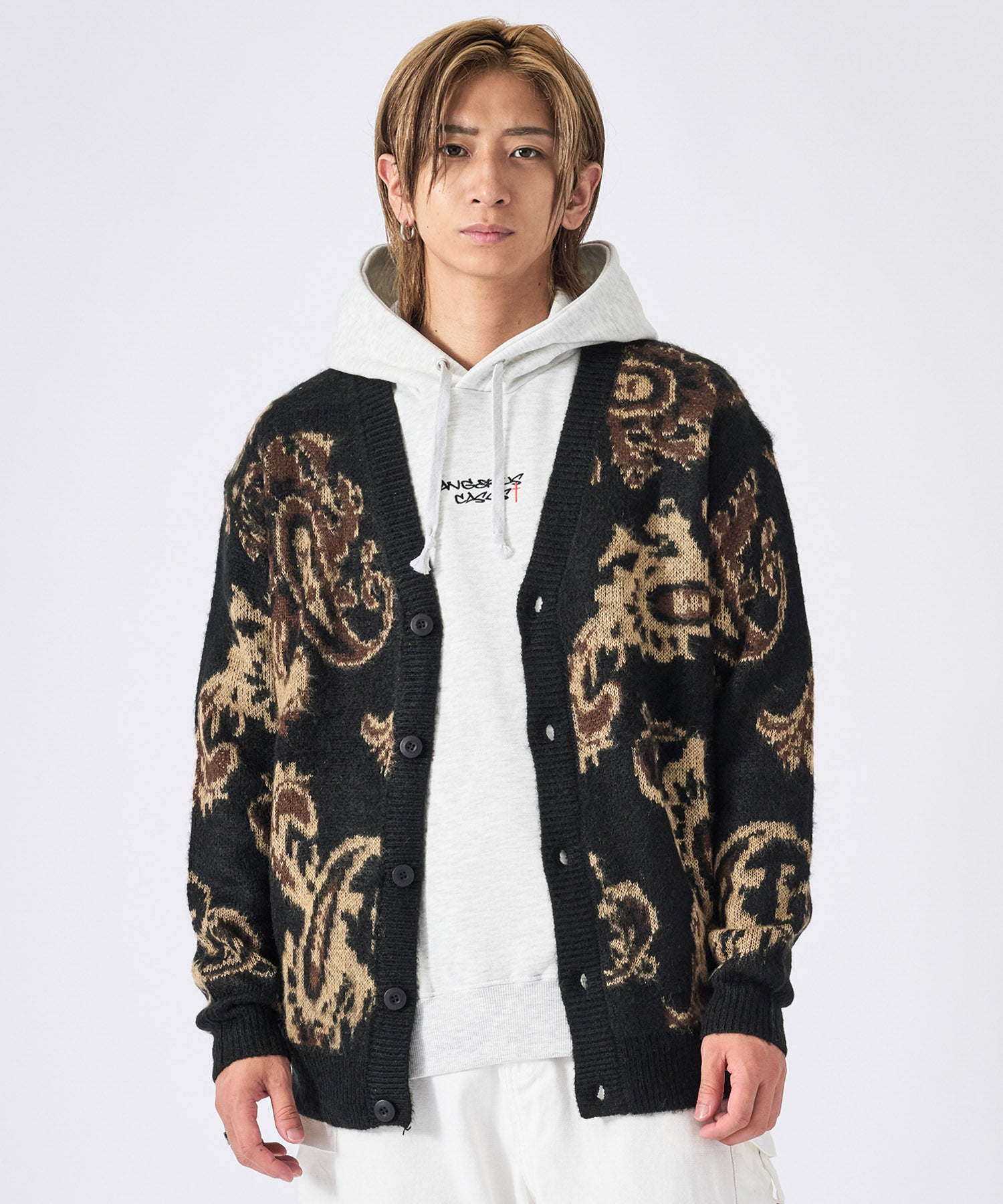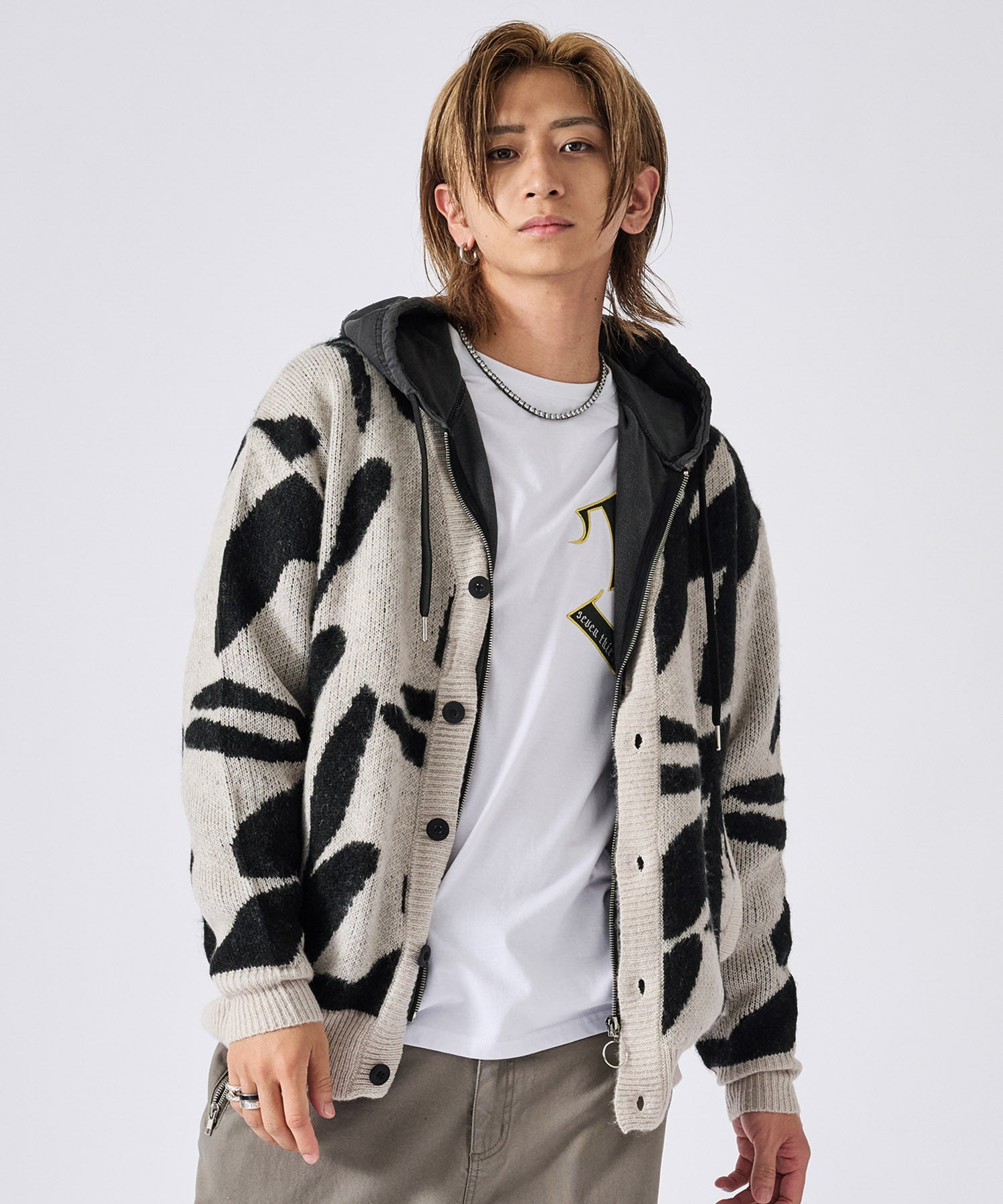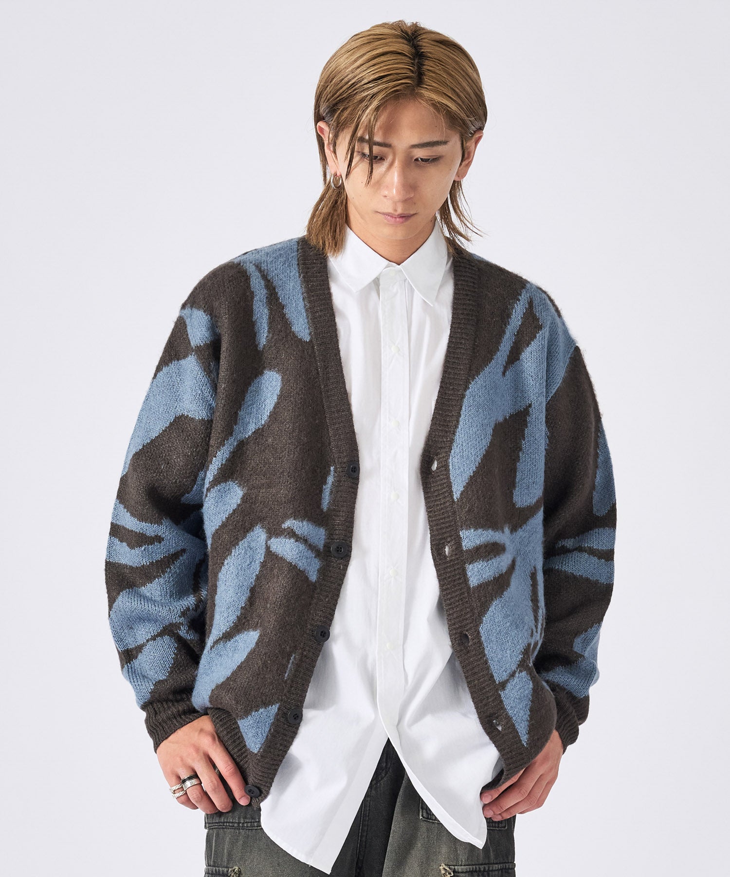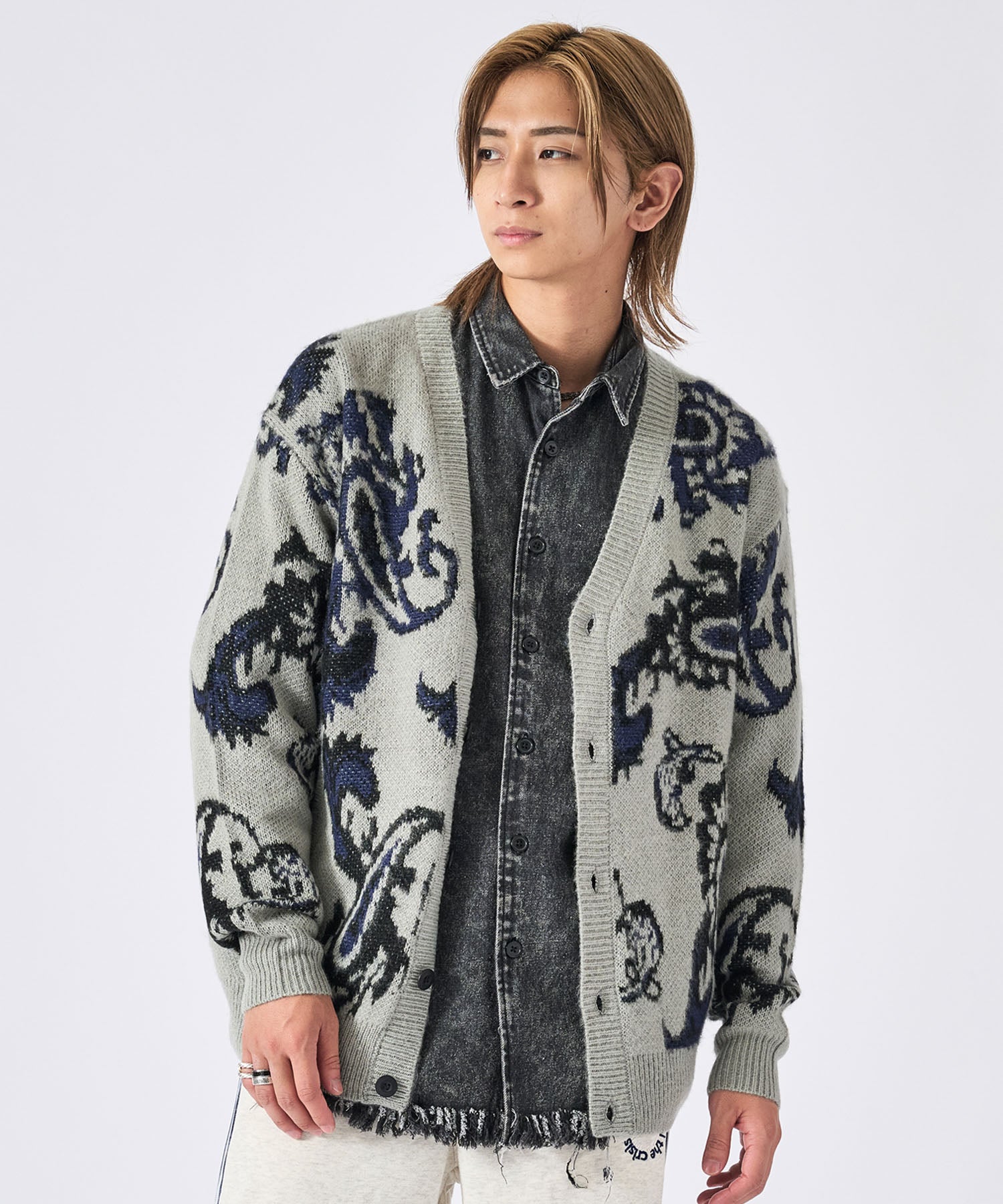 ジャガードで編み込んだ総柄が印象的で、ヒョウ柄、ペイズリー柄、ゼブラ柄に加えて、フラワー柄となど柄バリエーションが豊富なビッグシルエットでライトアウターとして着回せるアイテム