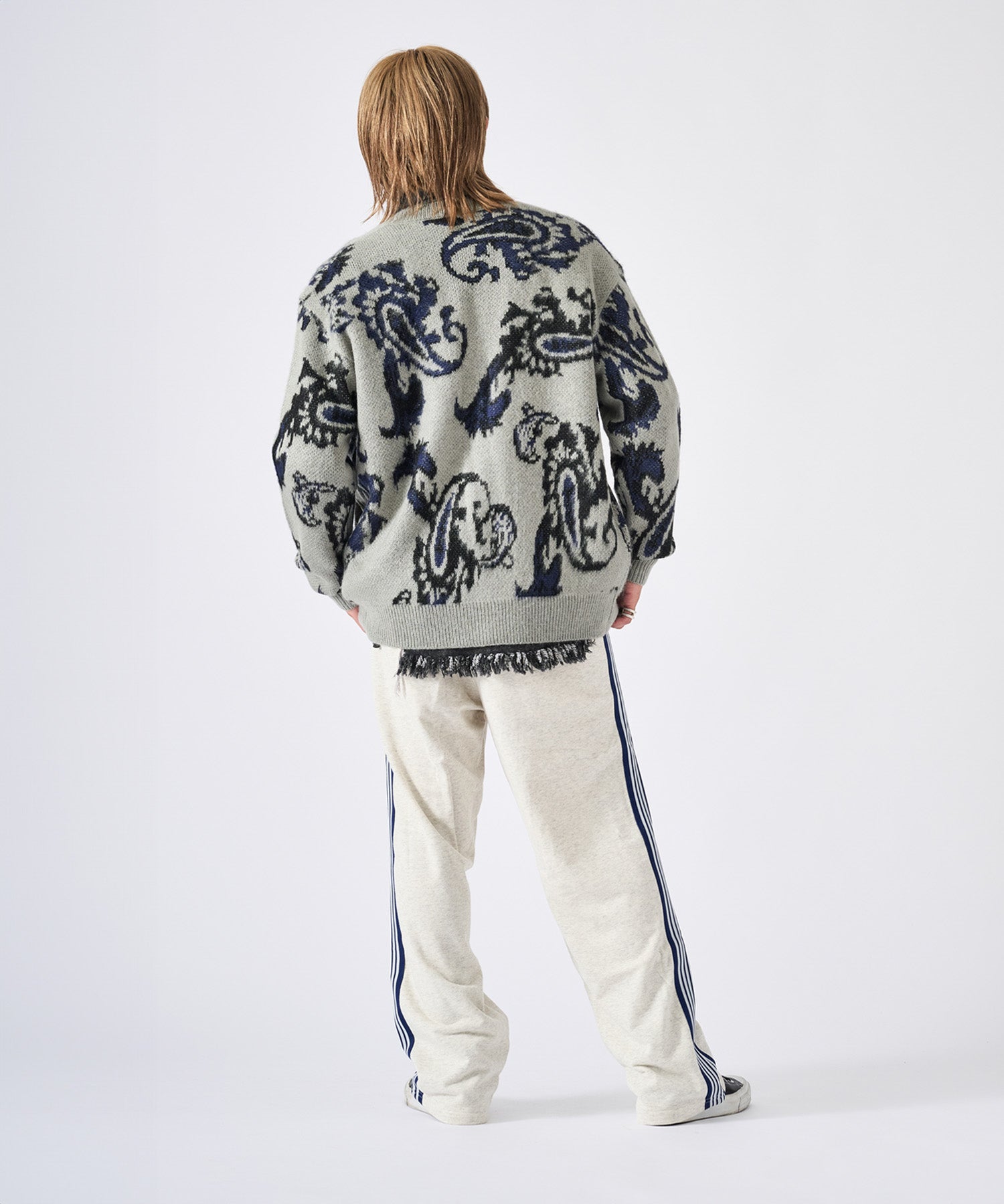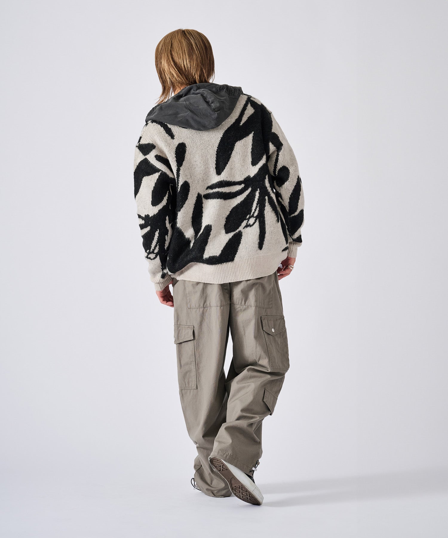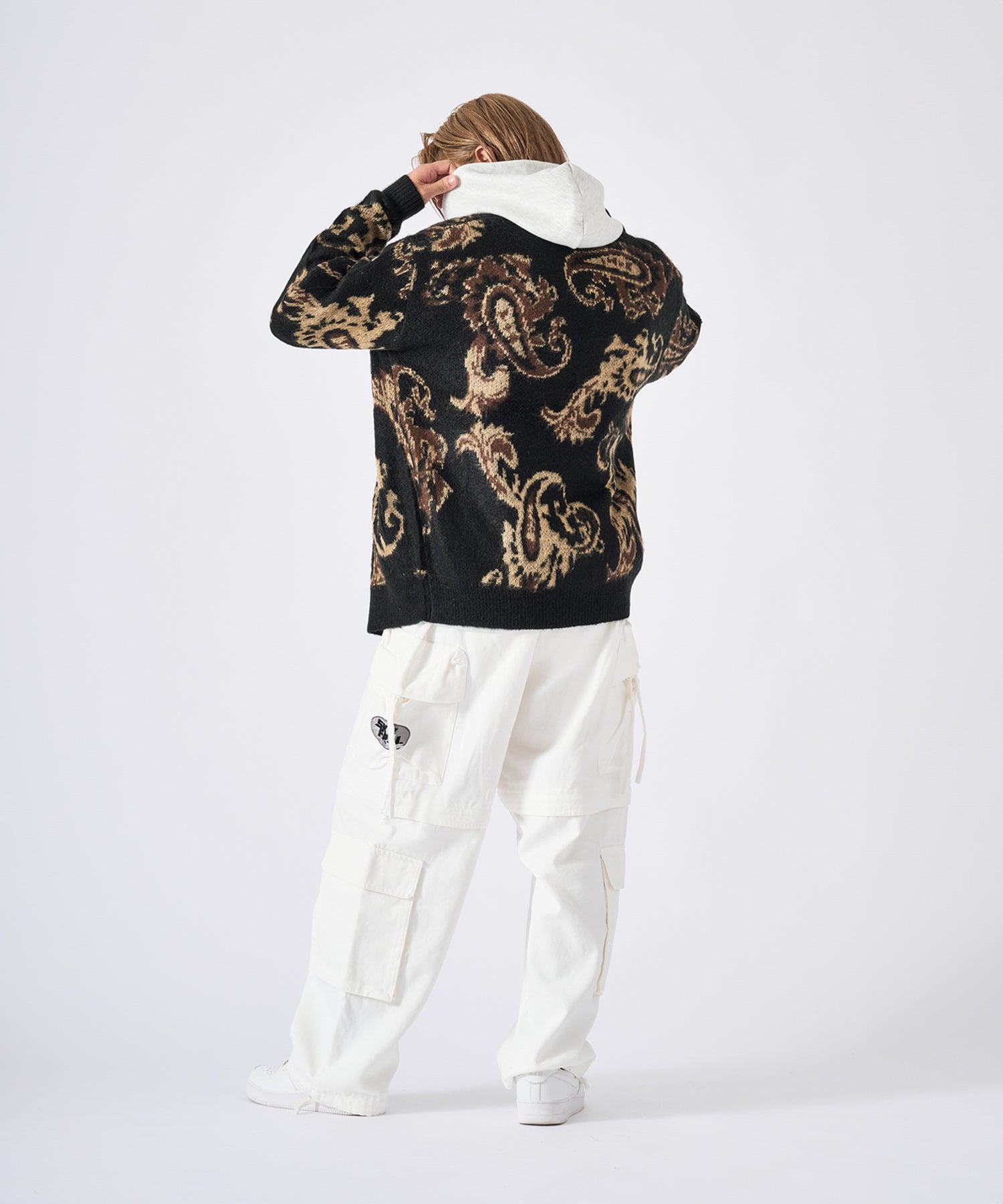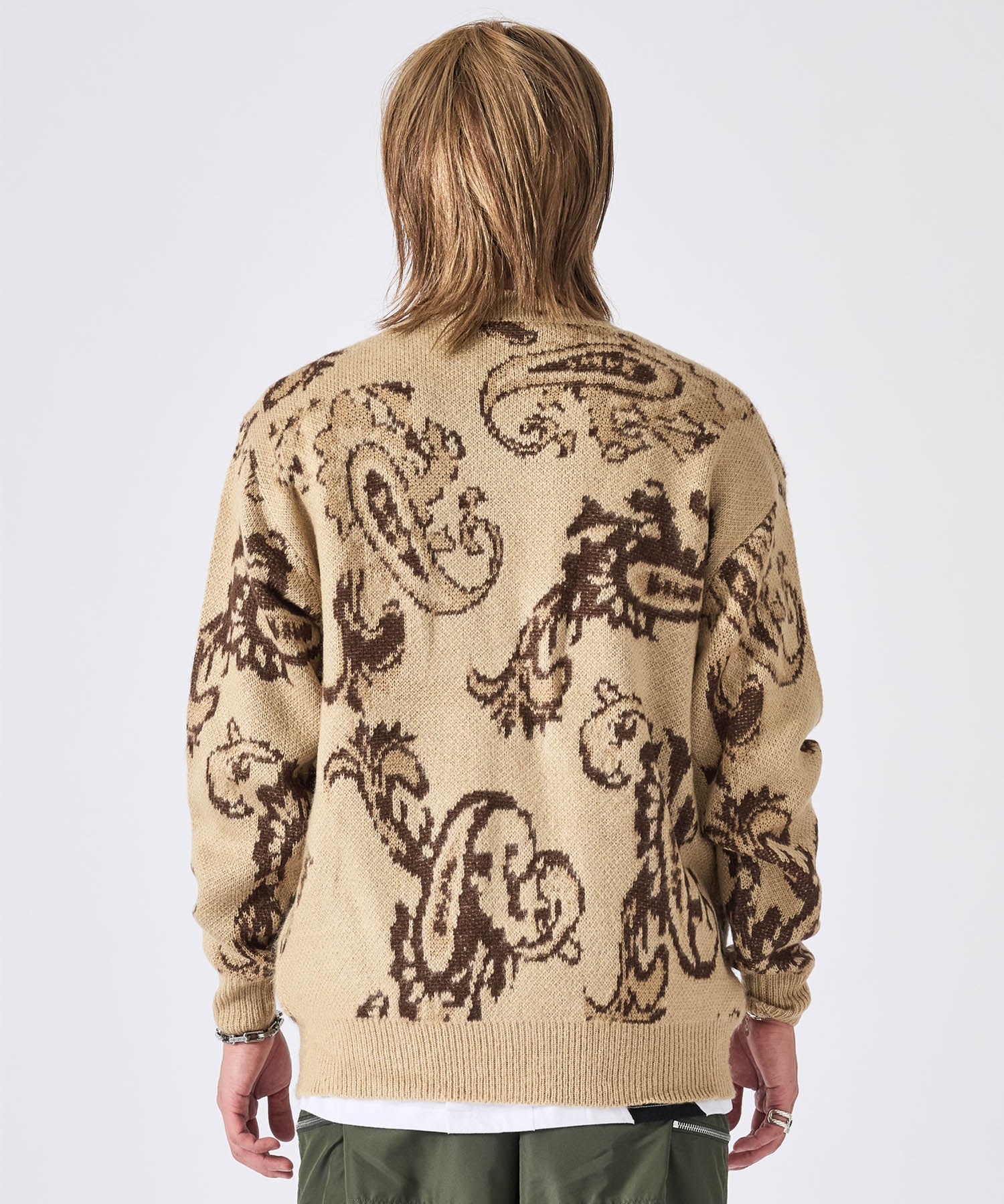 ジャガードで編み込んだ総柄が印象的で、ヒョウ柄、ペイズリー柄、ゼブラ柄に加えて、フラワー柄となど柄バリエーションが豊富なビッグシルエットでライトアウターとして着回せるアイテム