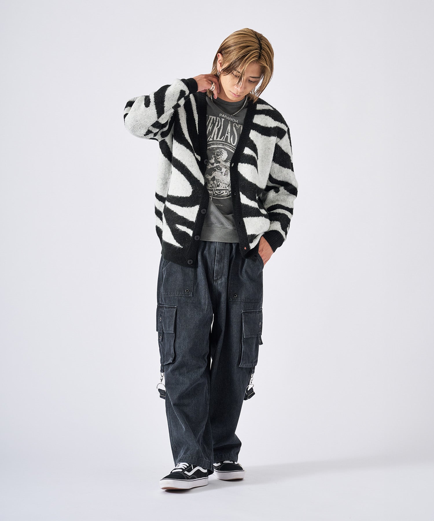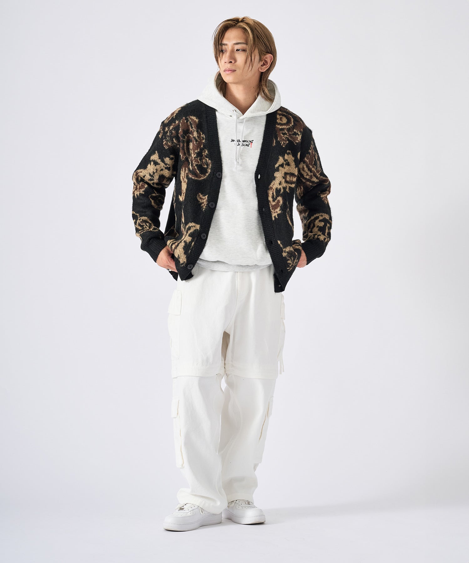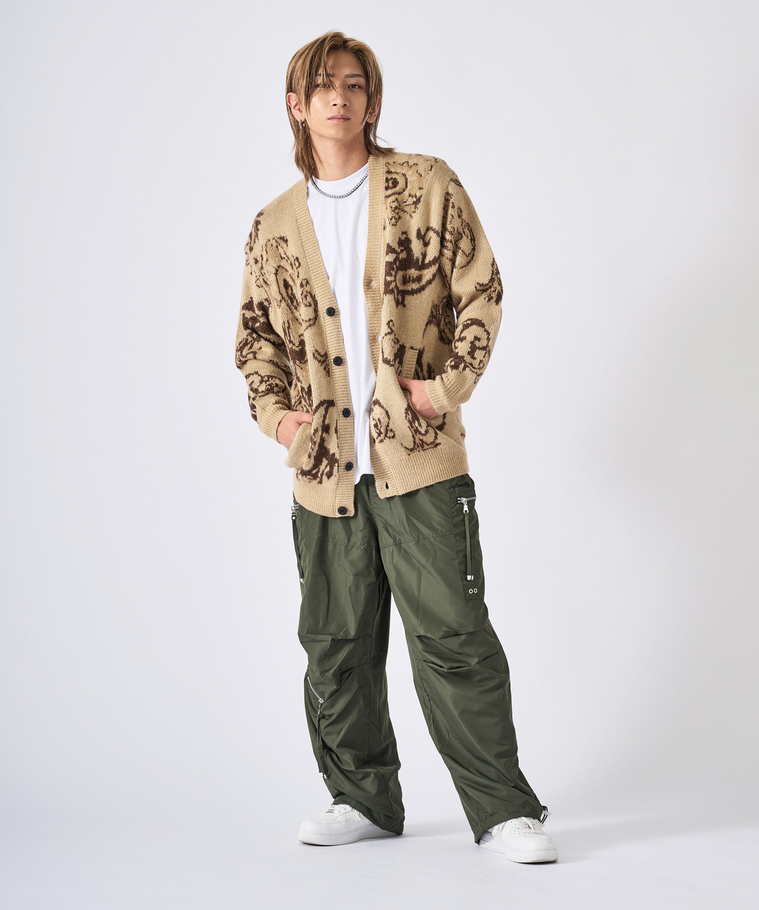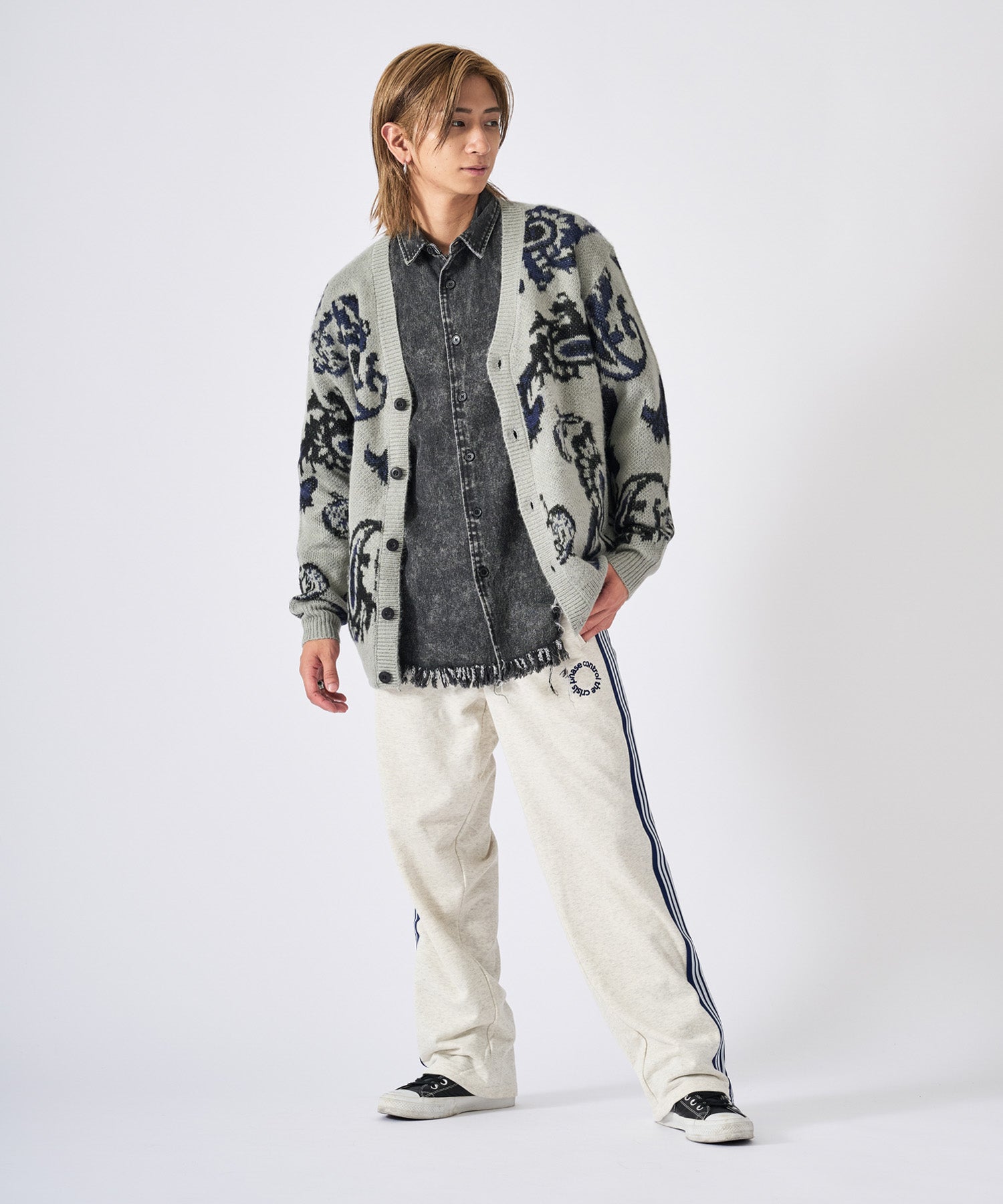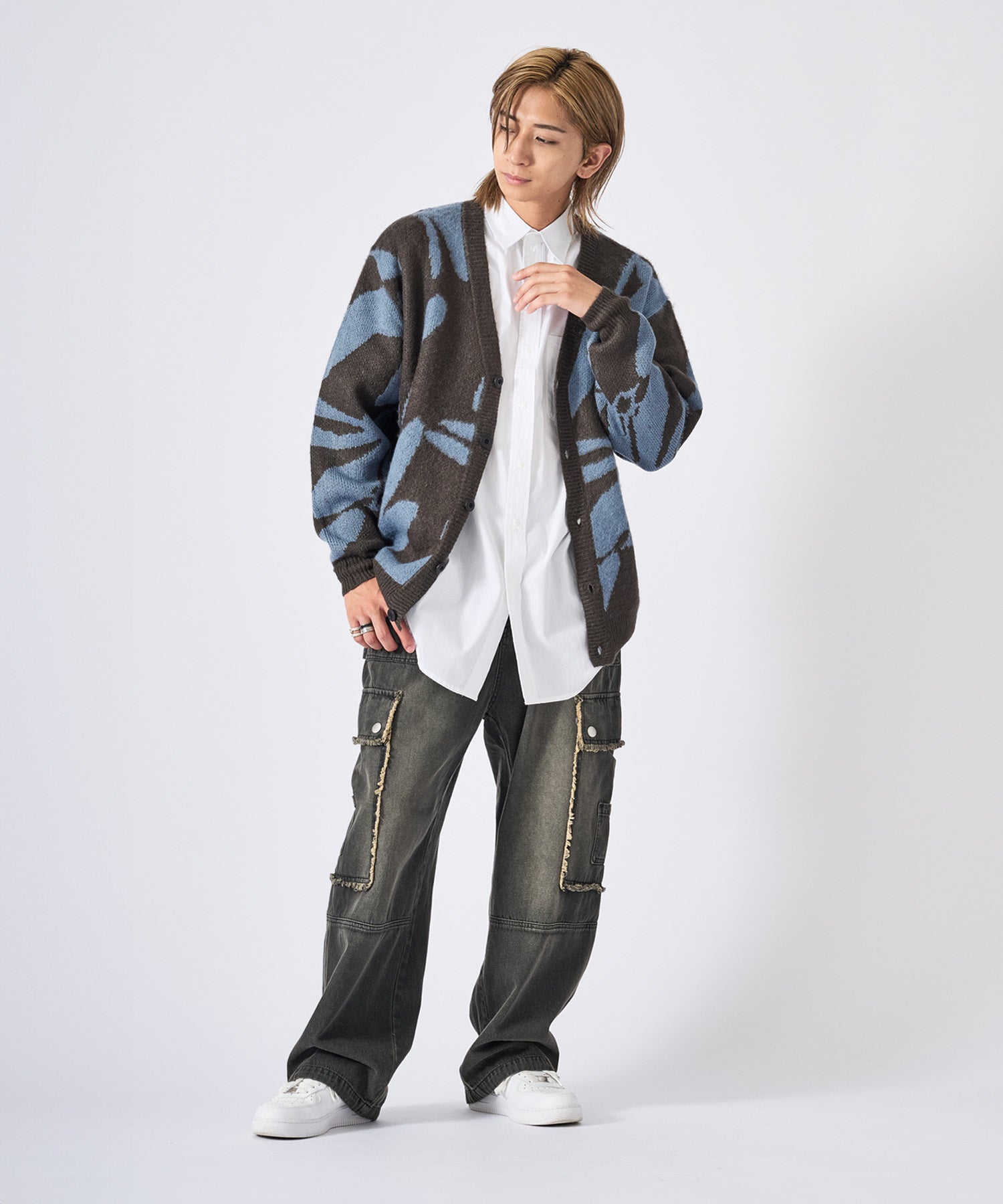 ジャガードで編み込んだ総柄が印象的で、ヒョウ柄、ペイズリー柄、ゼブラ柄に加えて、フラワー柄となど柄バリエーションが豊富なビッグシルエットでライトアウターとして着回せるアイテム