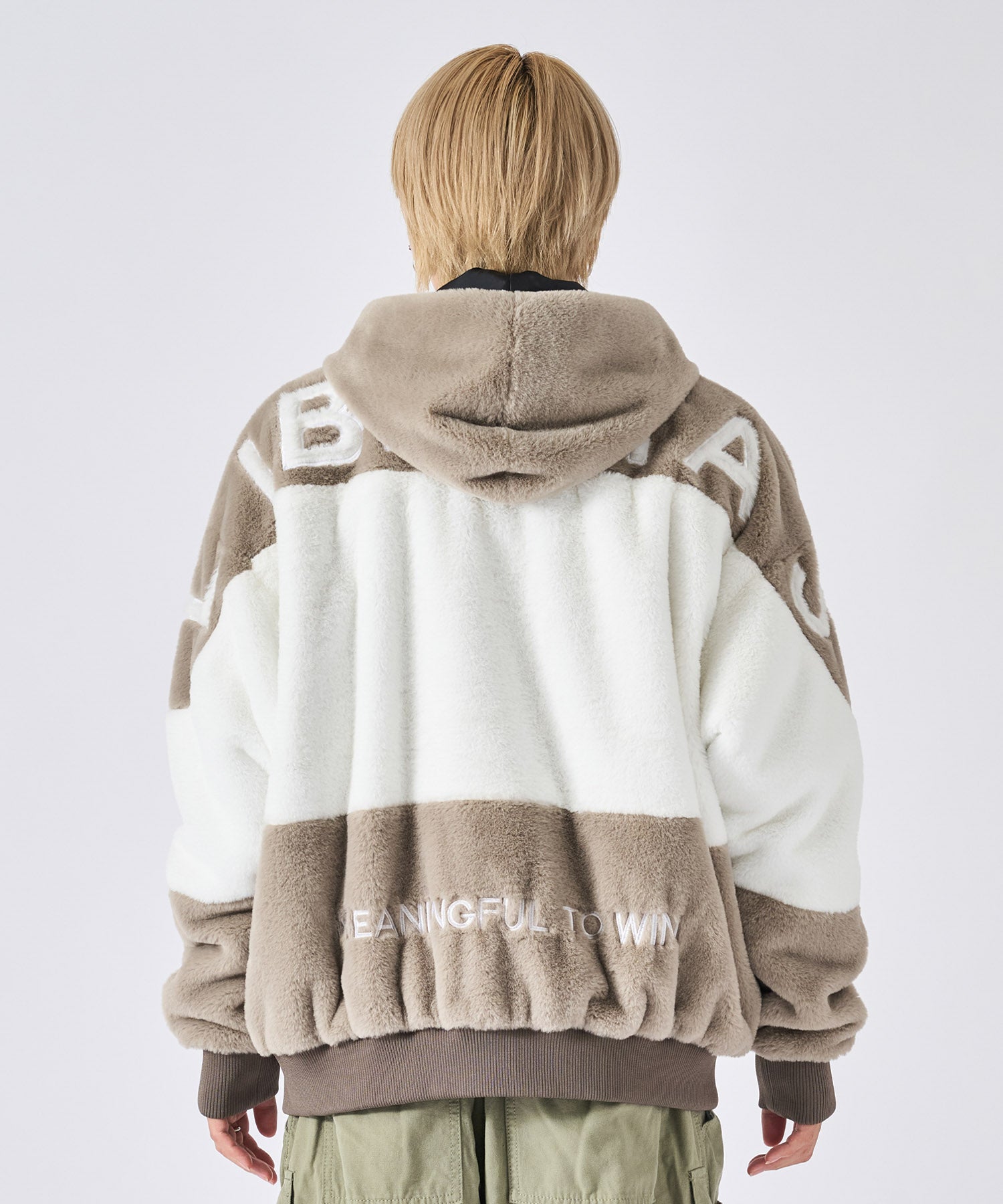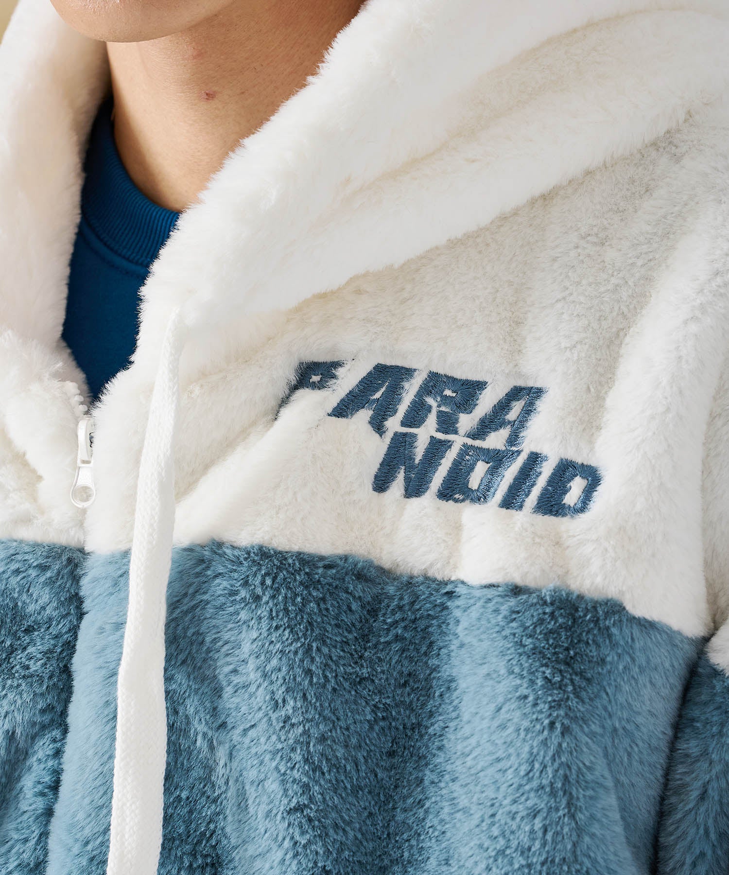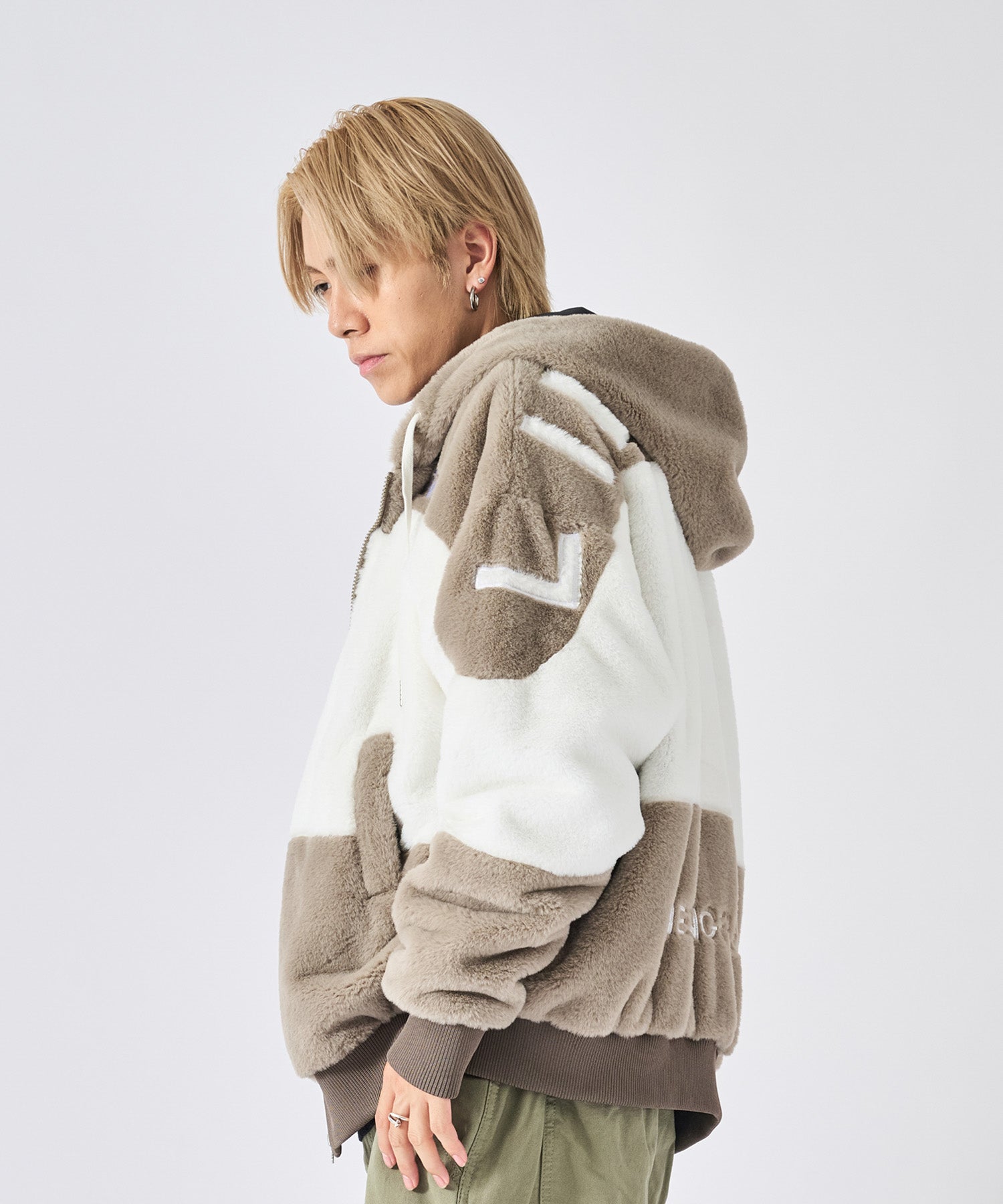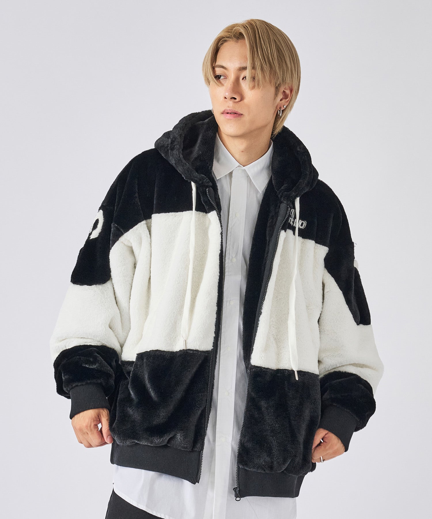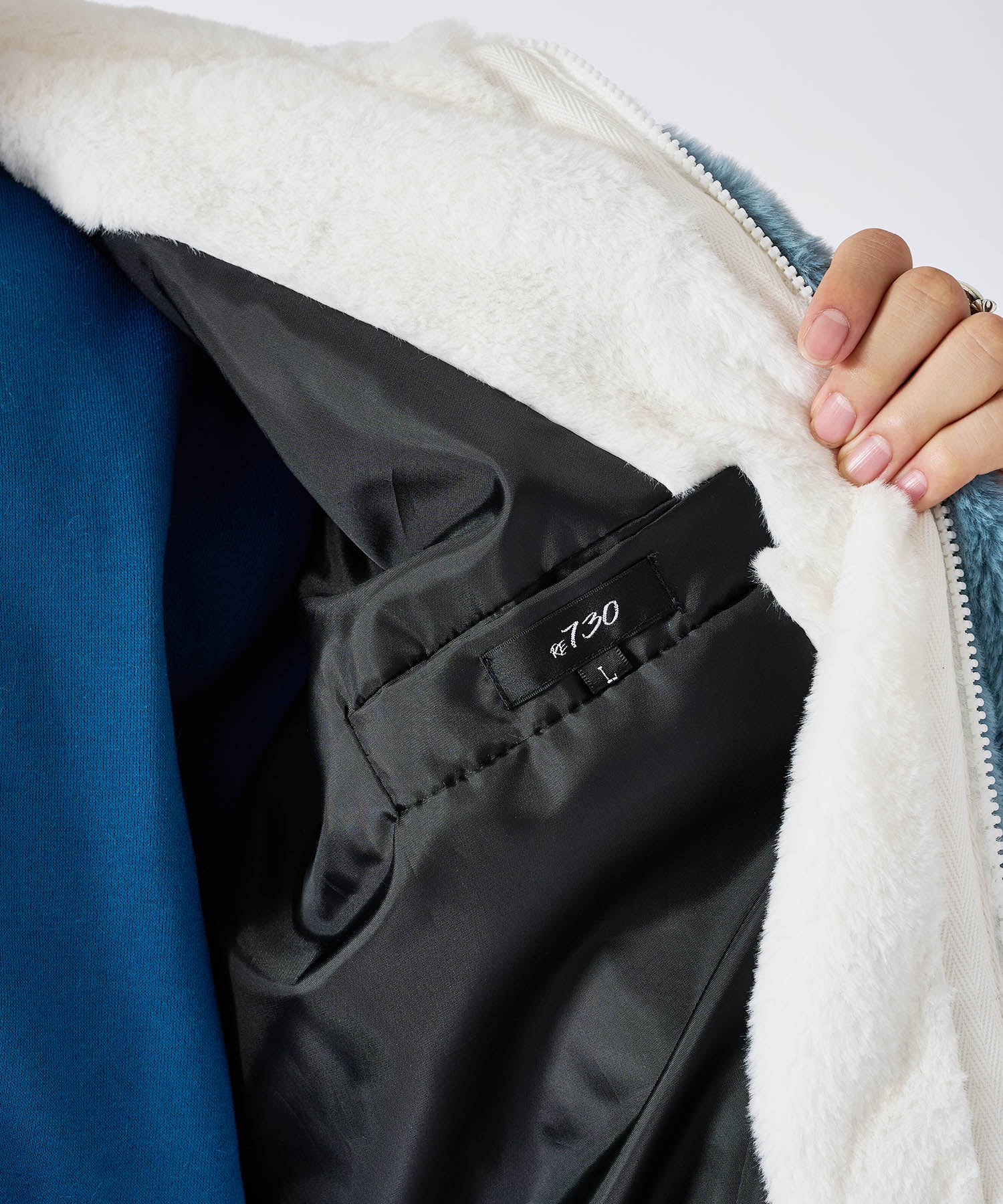 毛足の長いポリエステルのストレートファーを使用しており、ボリューム感があって暖かく、またその肌触りの良さは多くのお客様から支持され続けている素材