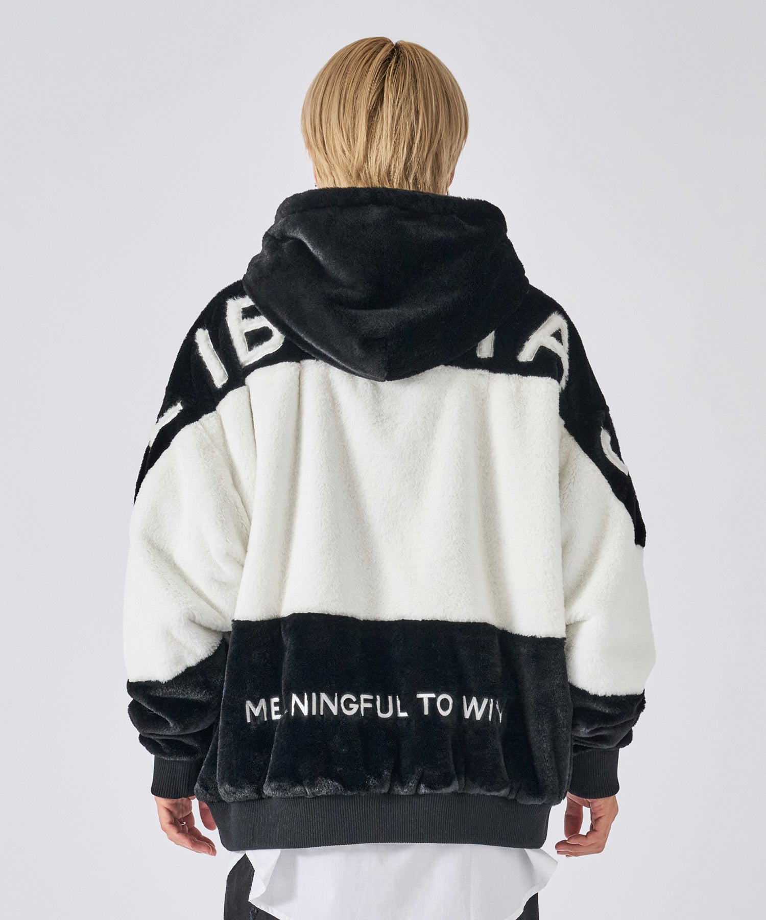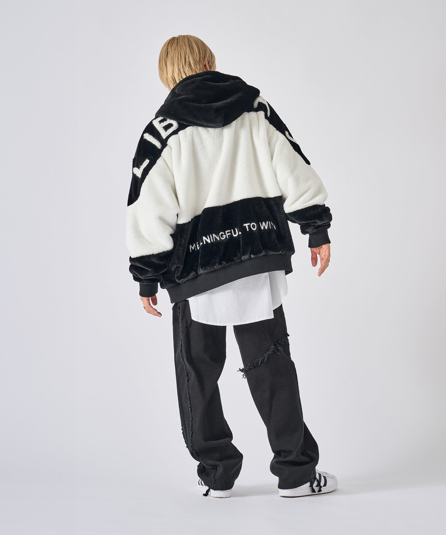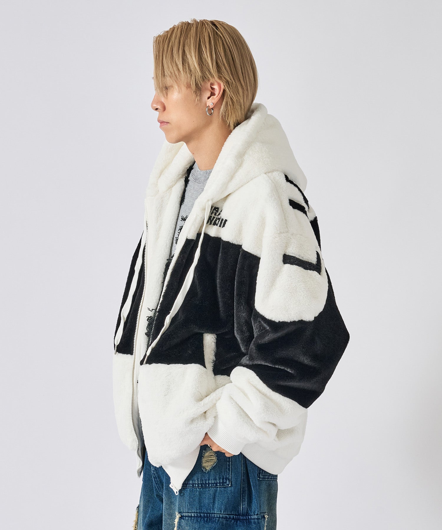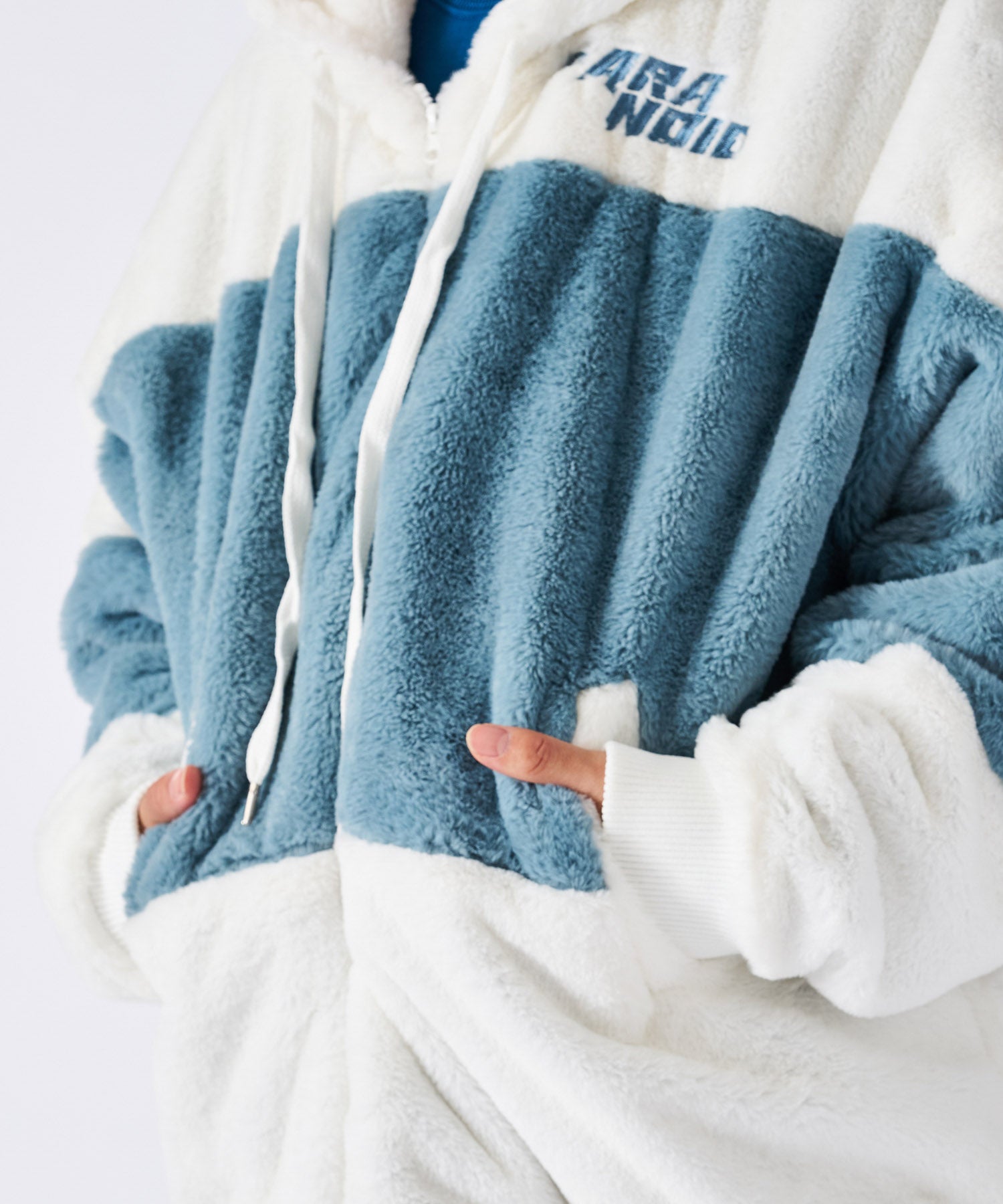 毛足の長いポリエステルのストレートファーを使用しており、ボリューム感があって暖かく、またその肌触りの良さは多くのお客様から支持され続けている素材