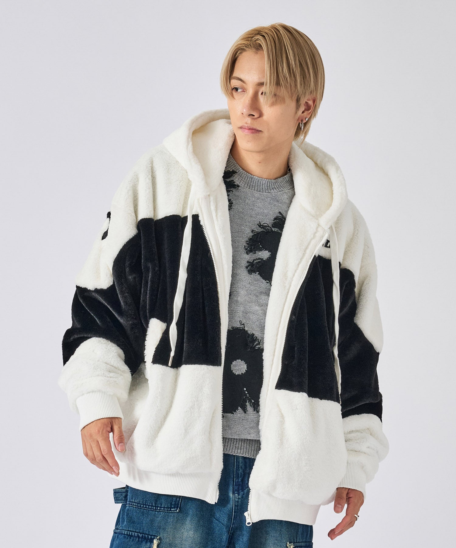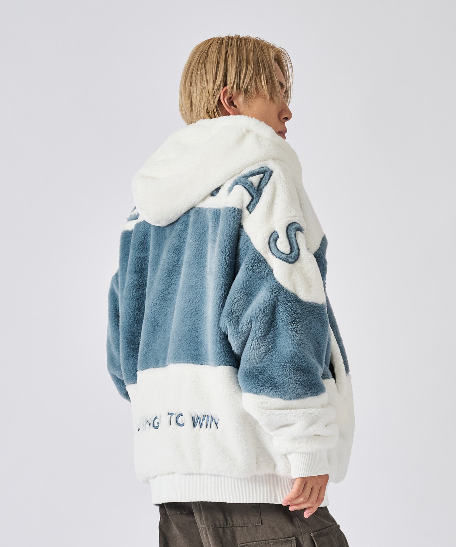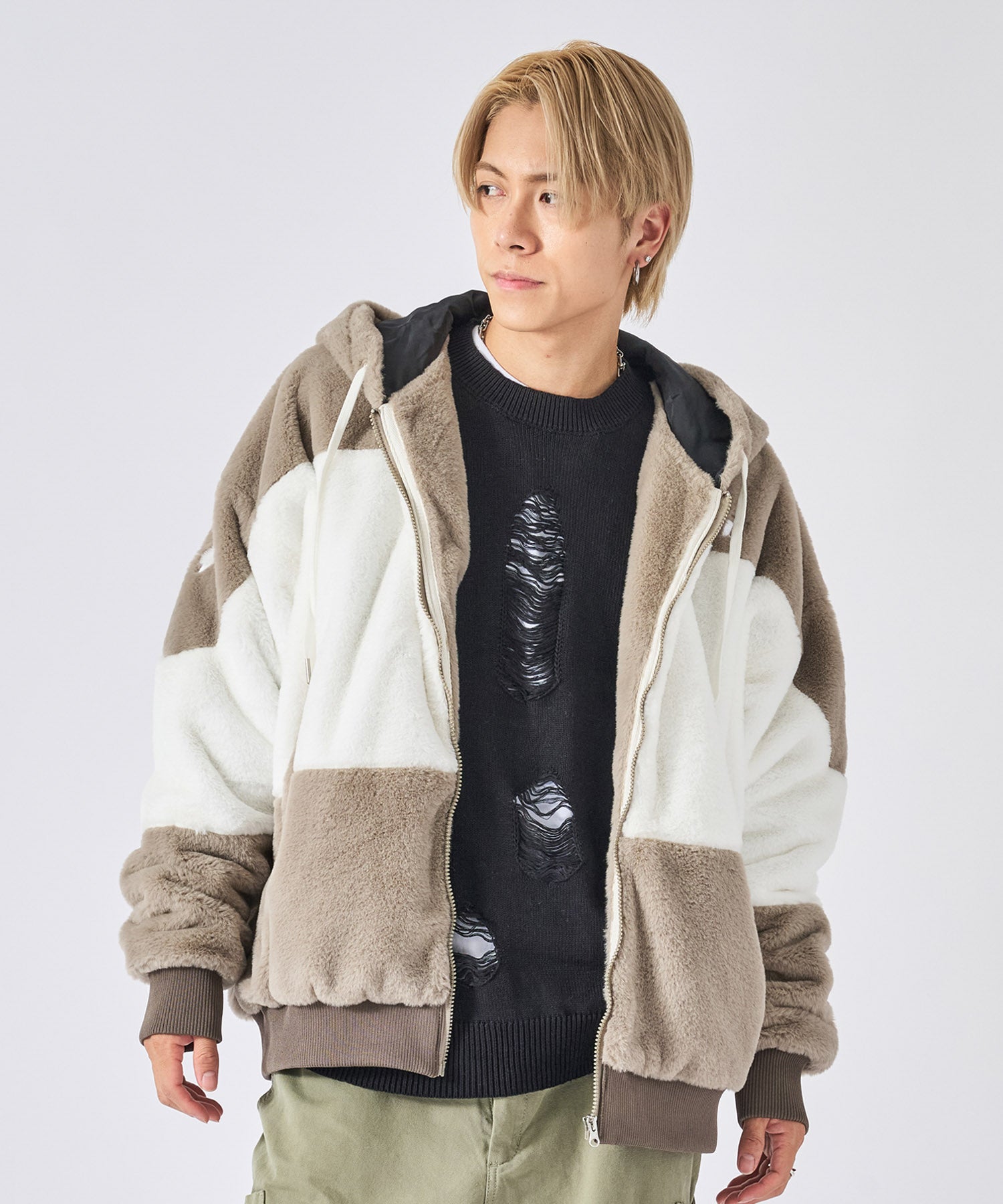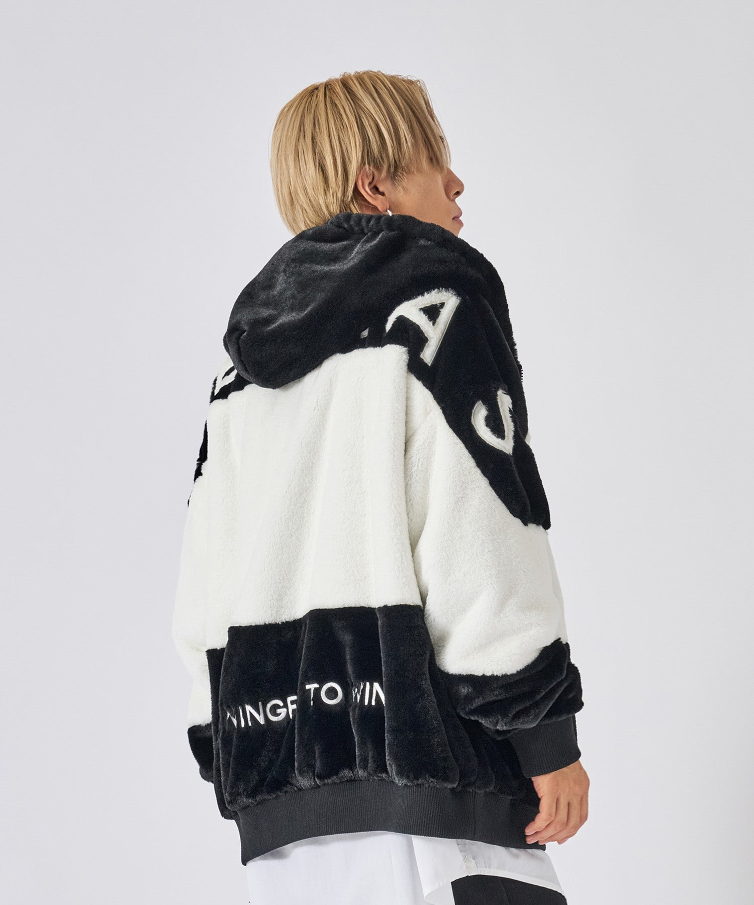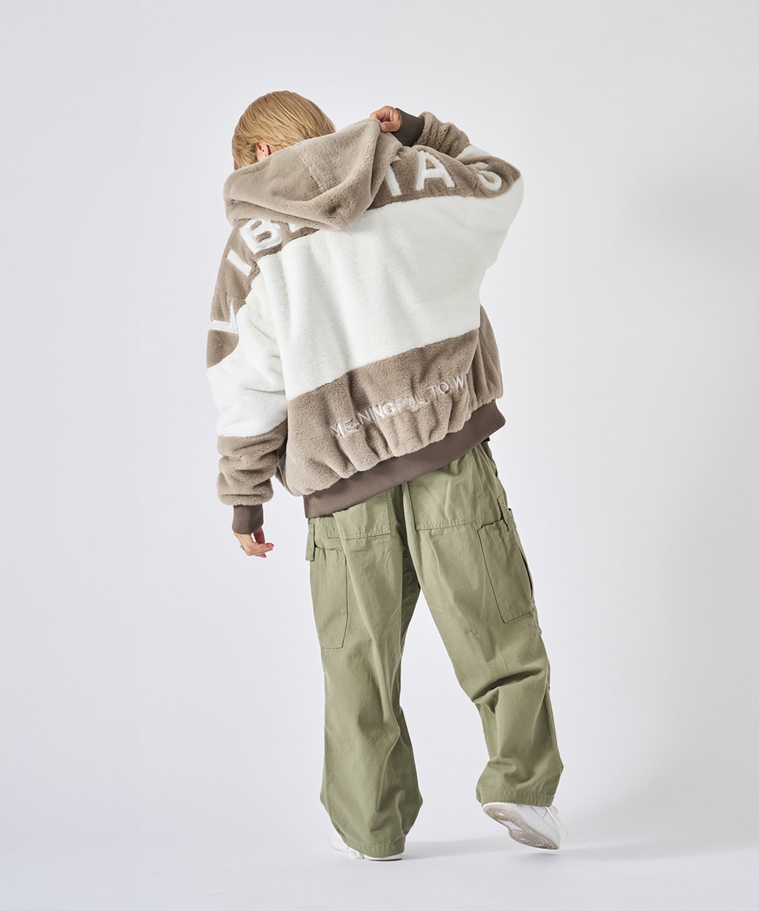 毛足の長いポリエステルのストレートファーを使用しており、ボリューム感があって暖かく、またその肌触りの良さは多くのお客様から支持され続けている素材