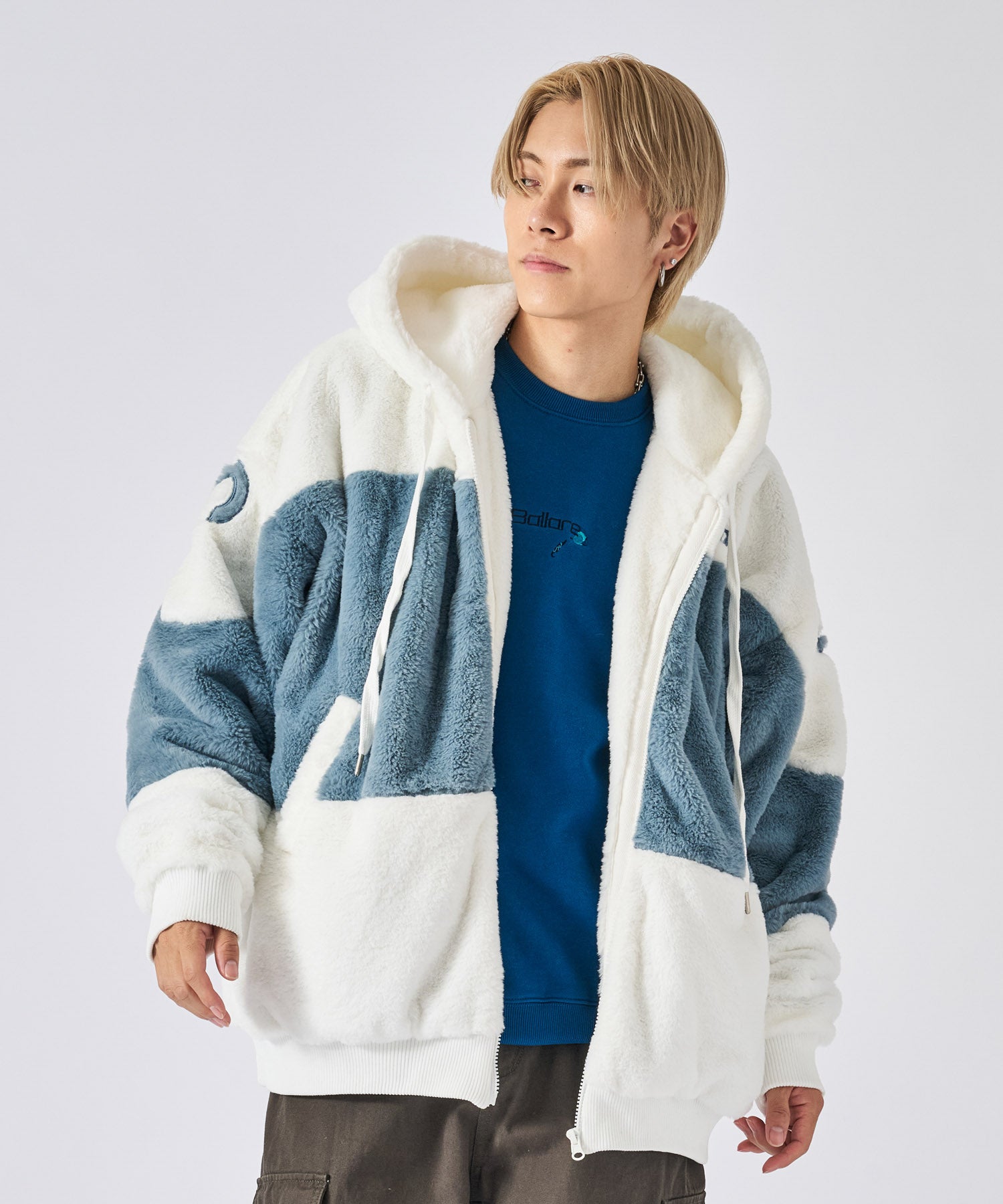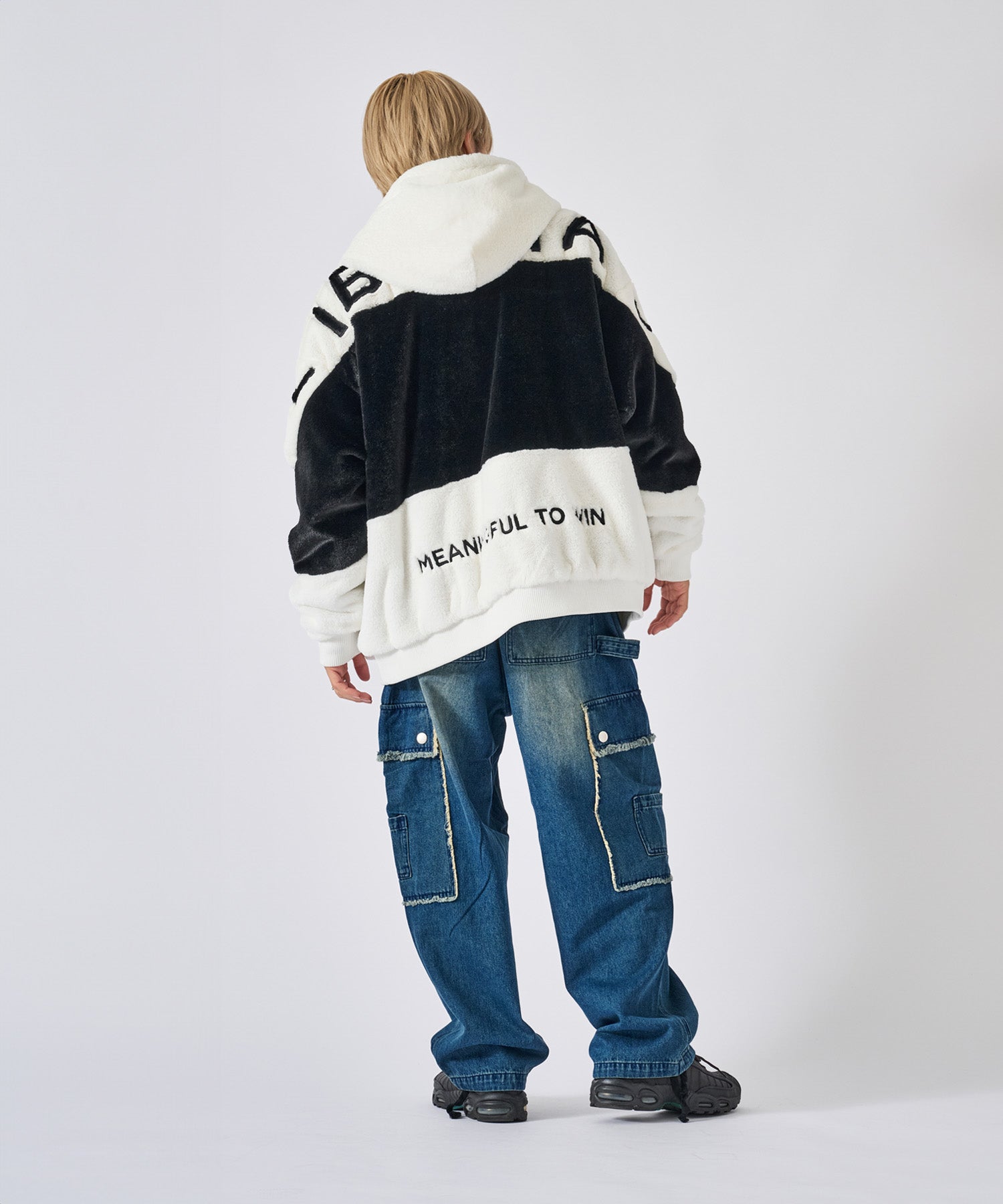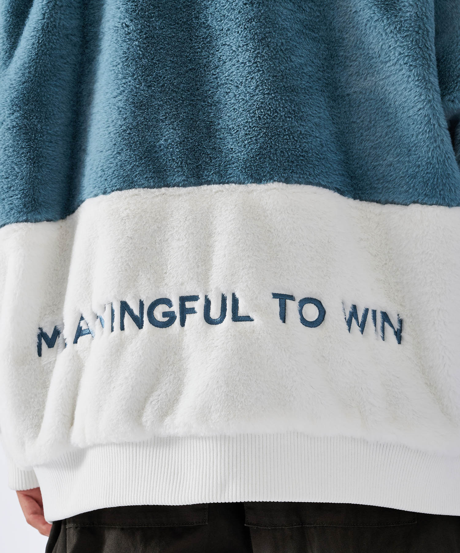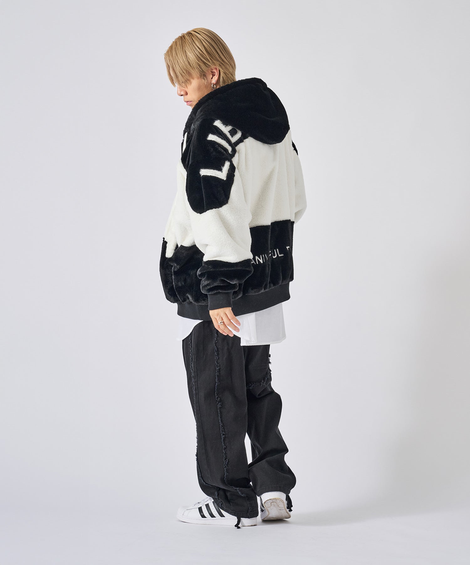 毛足の長いポリエステルのストレートファーを使用しており、ボリューム感があって暖かく、またその肌触りの良さは多くのお客様から支持され続けている素材
