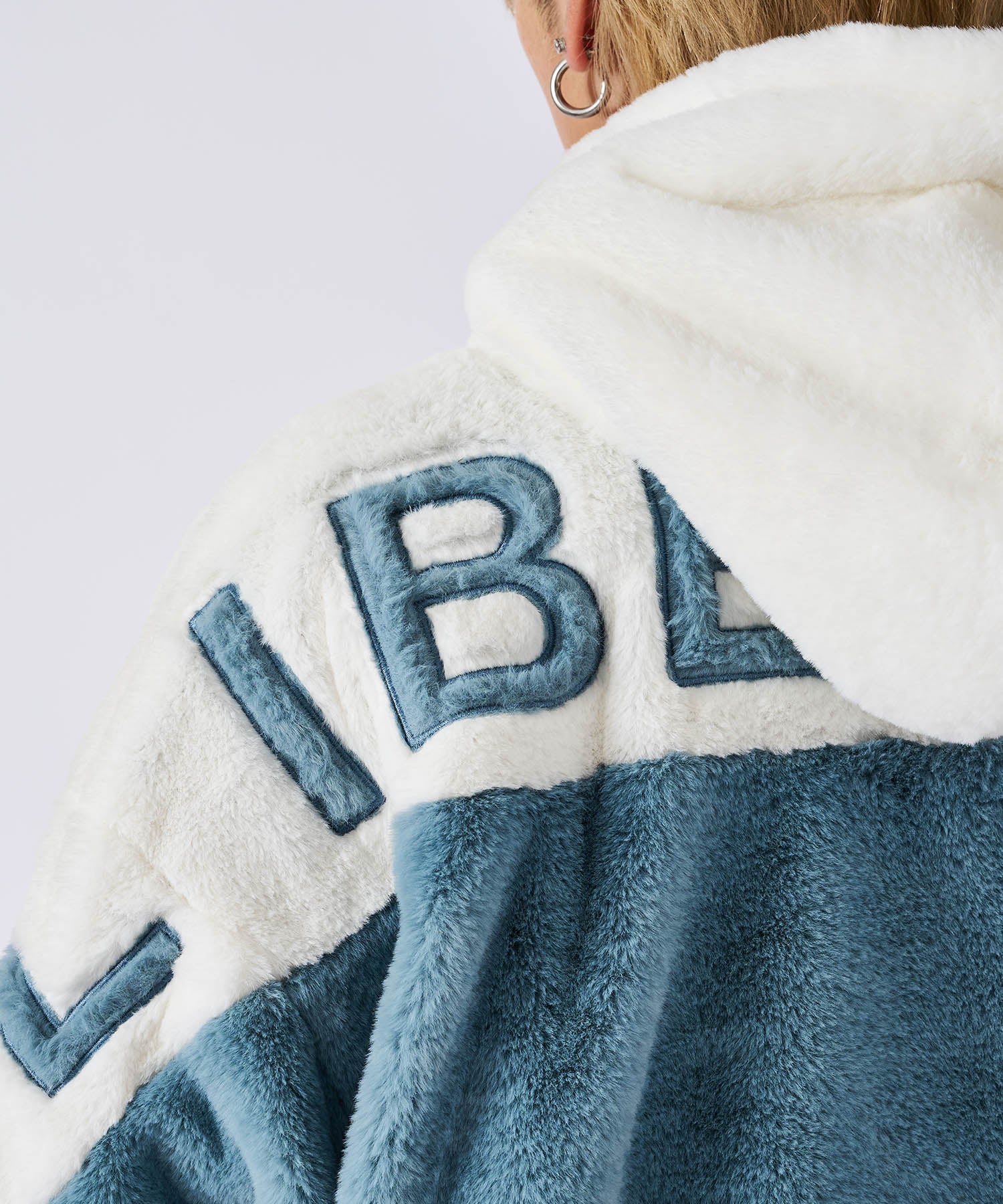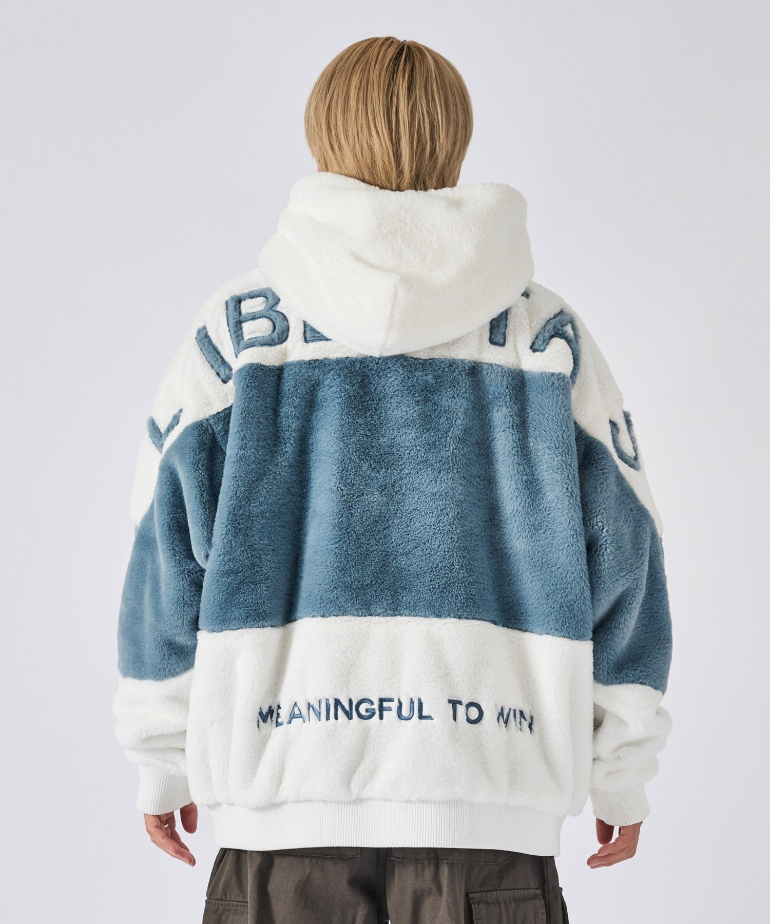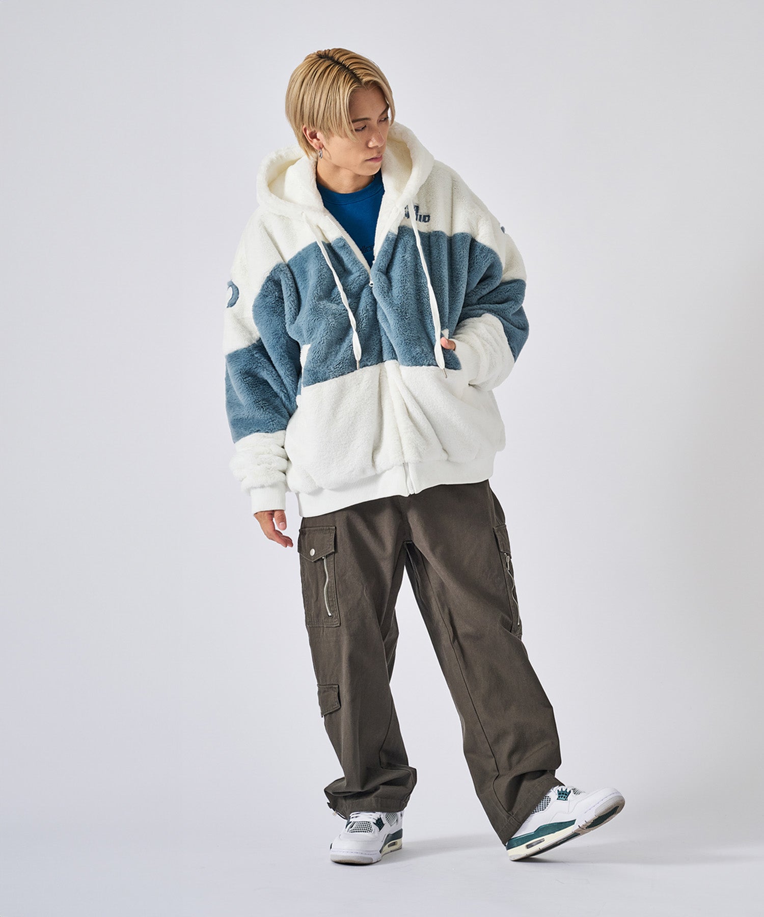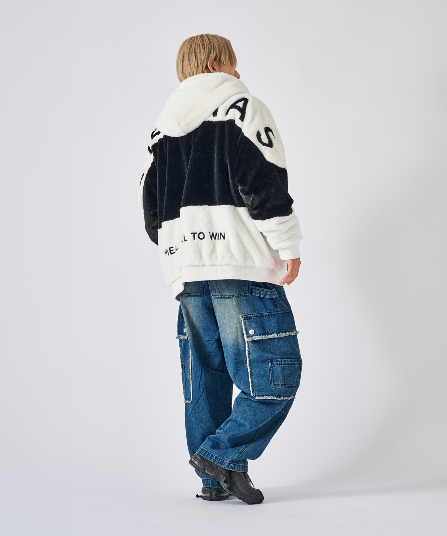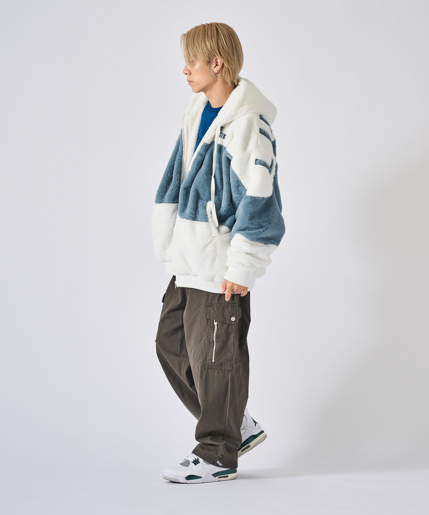 毛足の長いポリエステルのストレートファーを使用しており、ボリューム感があって暖かく、またその肌触りの良さは多くのお客様から支持され続けている素材