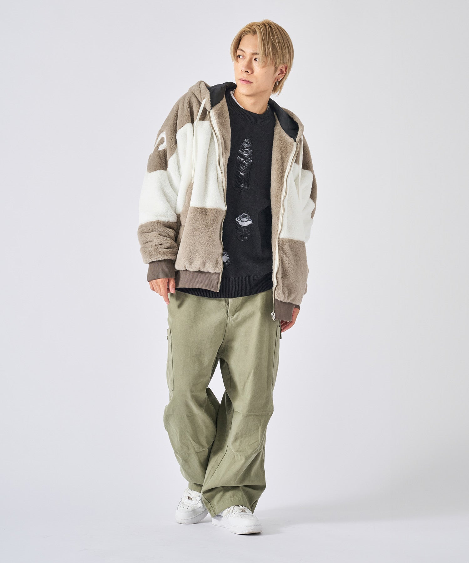 そのデザイン性からタイトからワイドまで幅広いボトムと相性が良く、老若男女着こなせるデザイン。