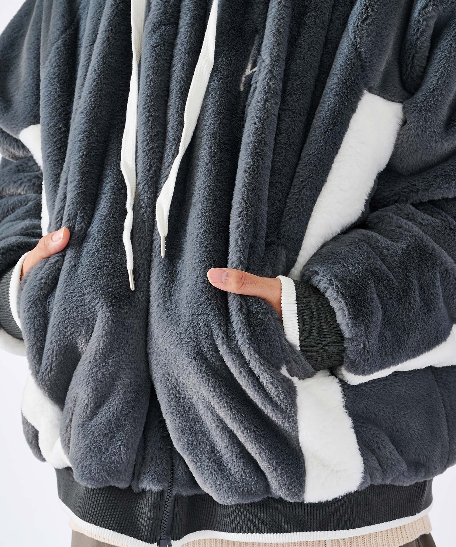 毛足の長いポリエステルのストレートファーを使用しており、ボリューム感があって暖かく、またその肌触りの良さは多くのお客様から支持され続けている素材☆