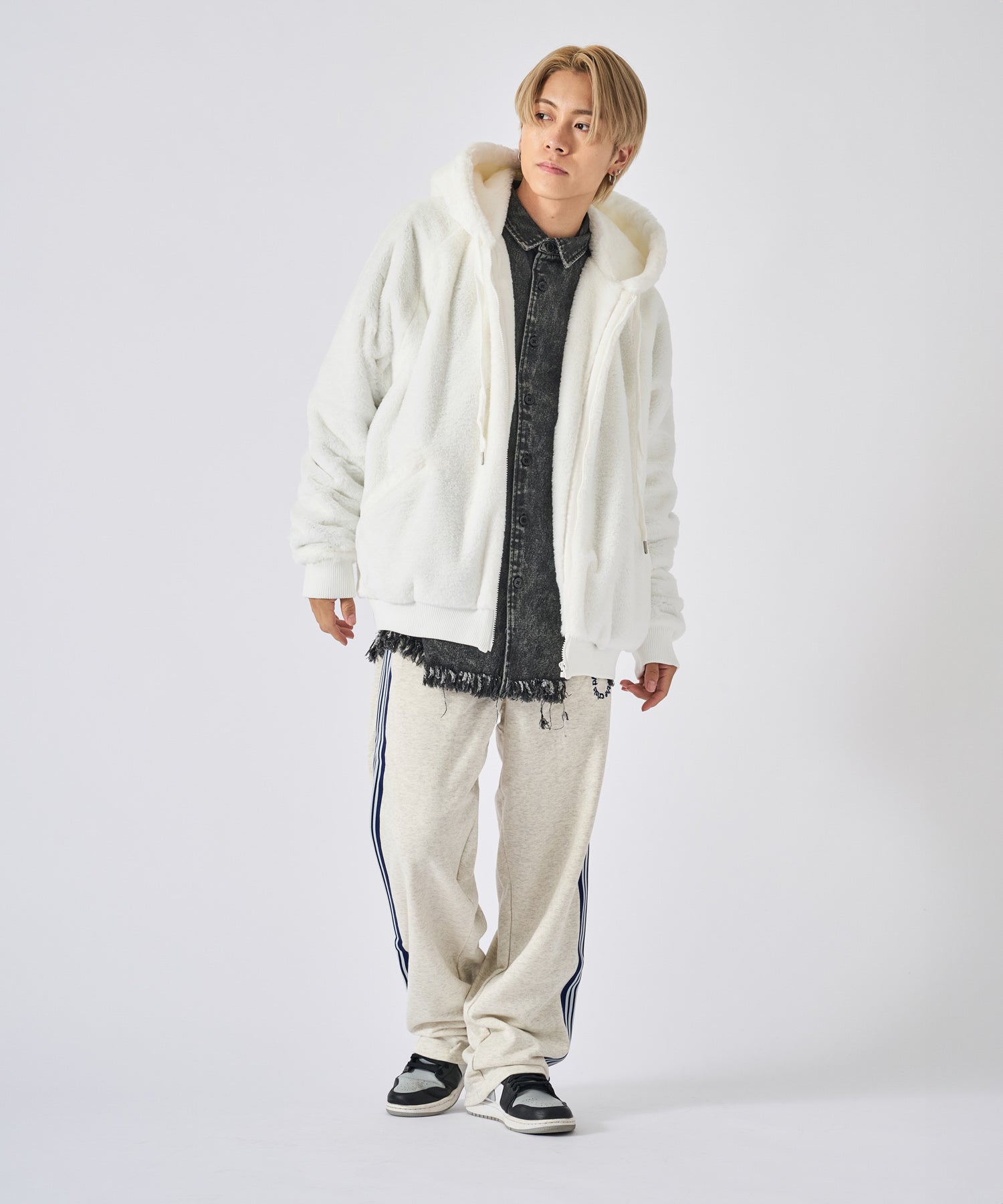 ジャージの様なライン使いが新鮮なファーブルゾン