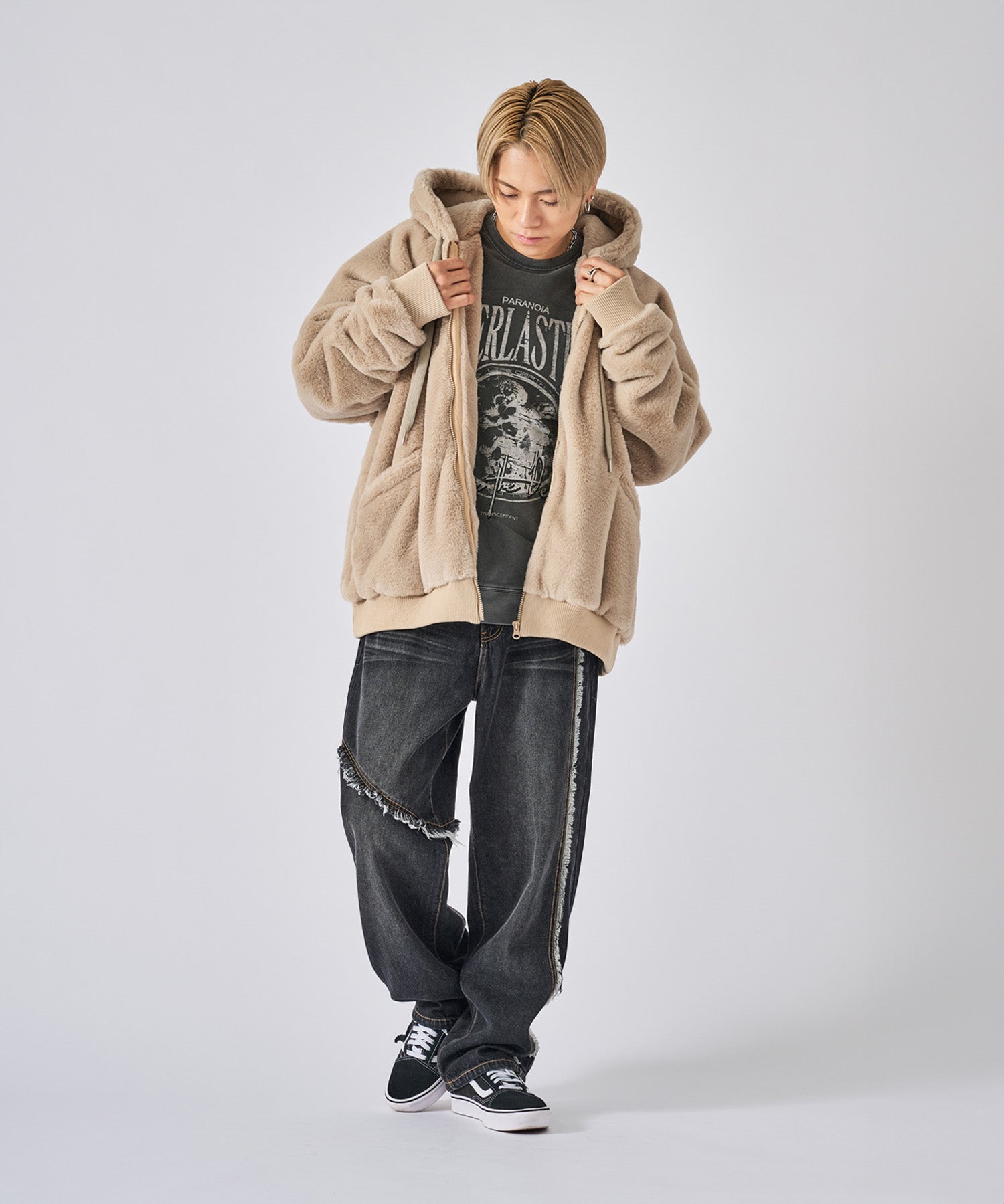 毛足の長いポリエステルのストレートファーを使用しており、ボリューム感があって暖かく、またその肌触りの良さは多くのお客様から支持され続けている素材☆