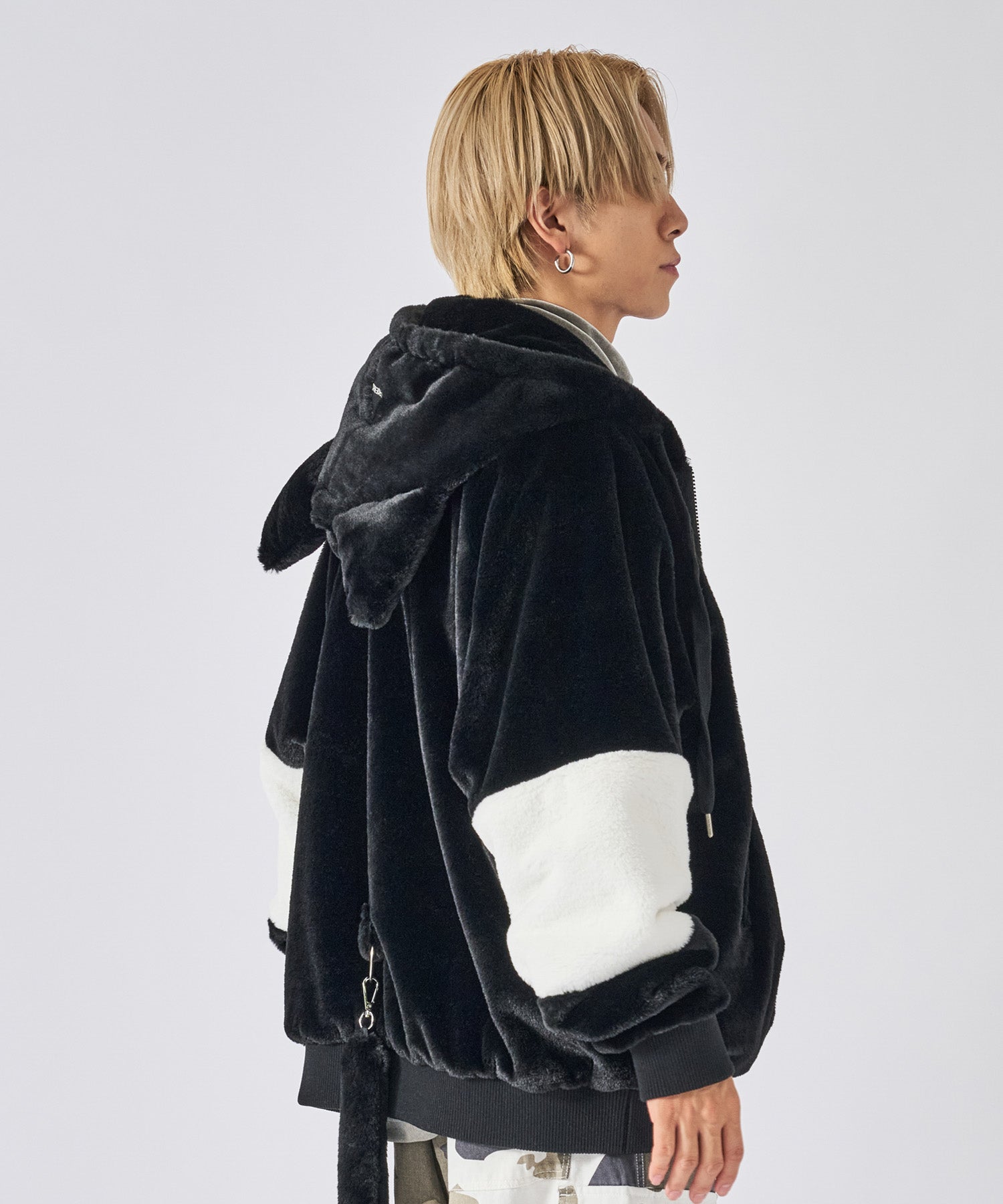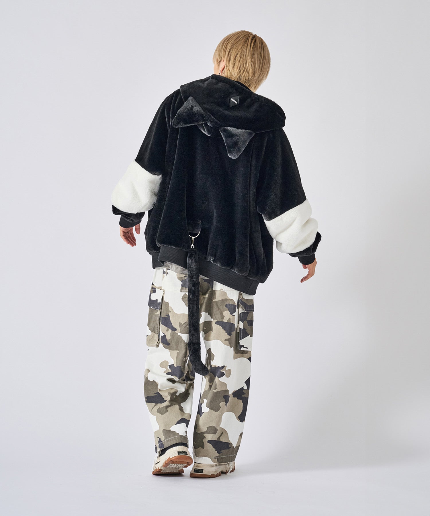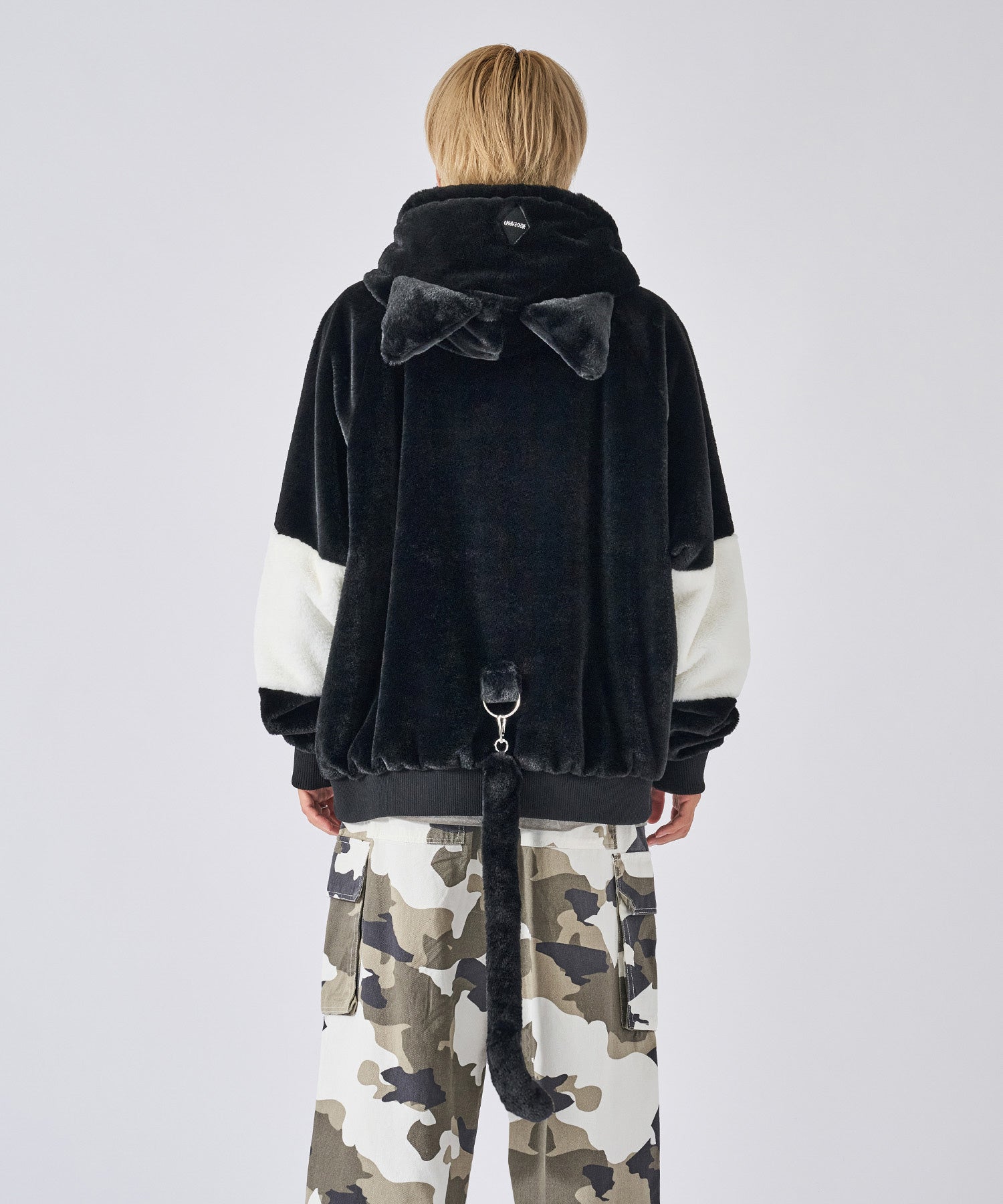 フードトップに耳、そして背中の裾には脱着可能な尻尾が付属したユニークなデザイン
