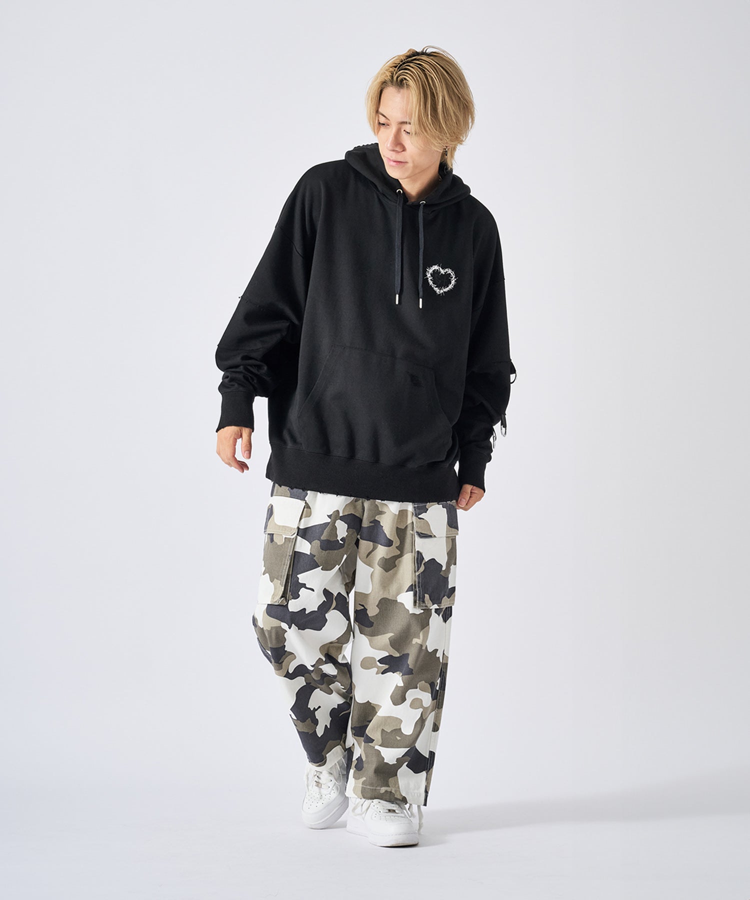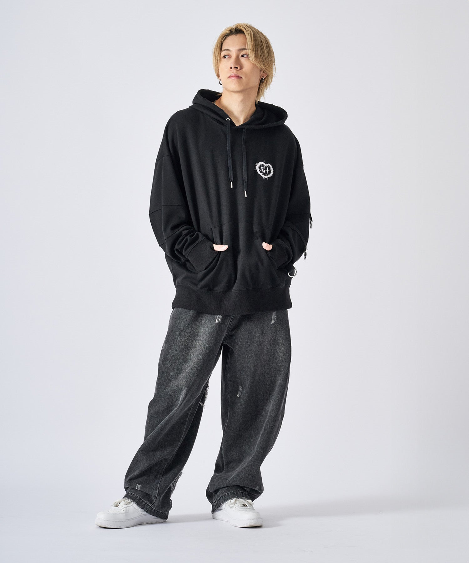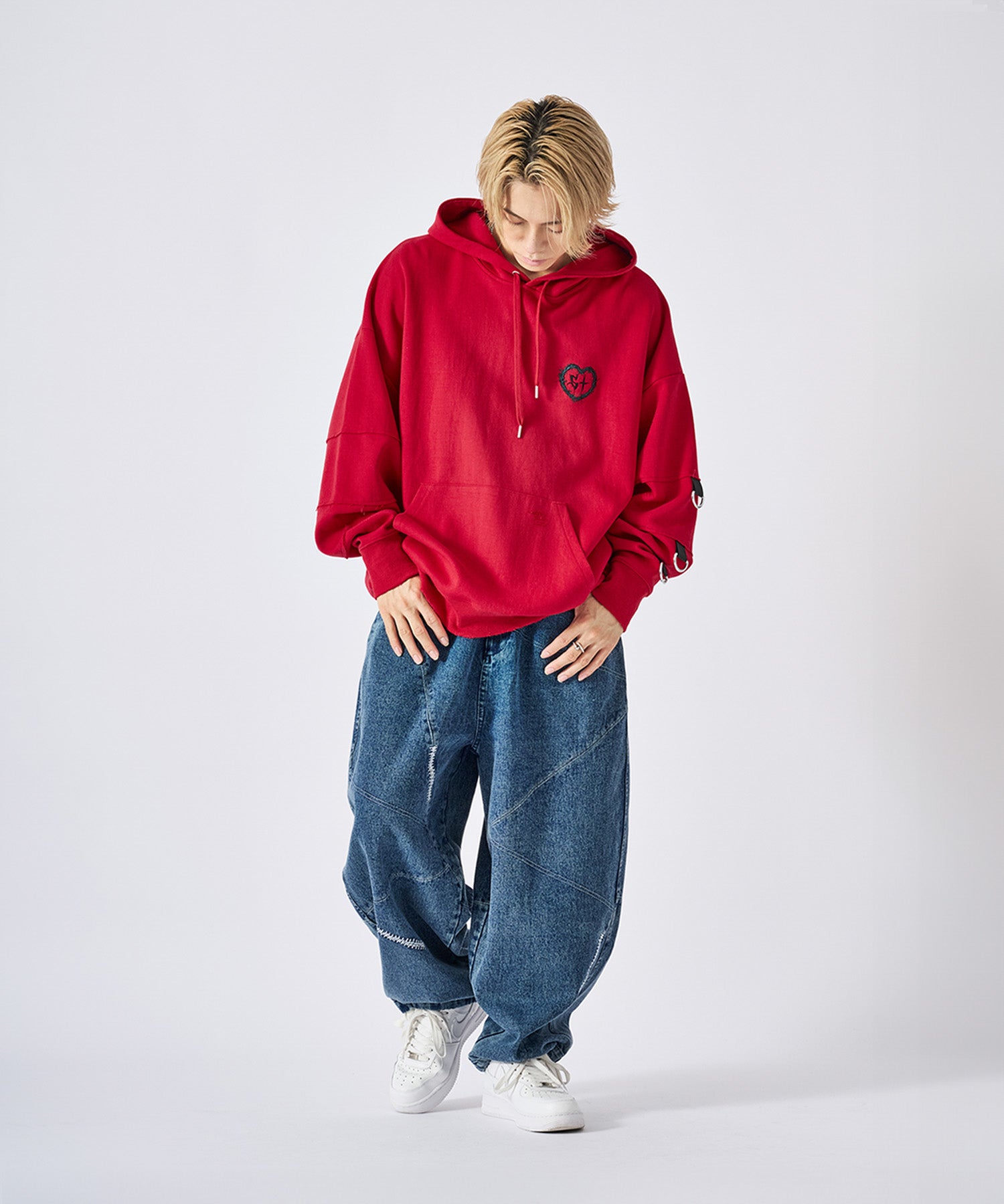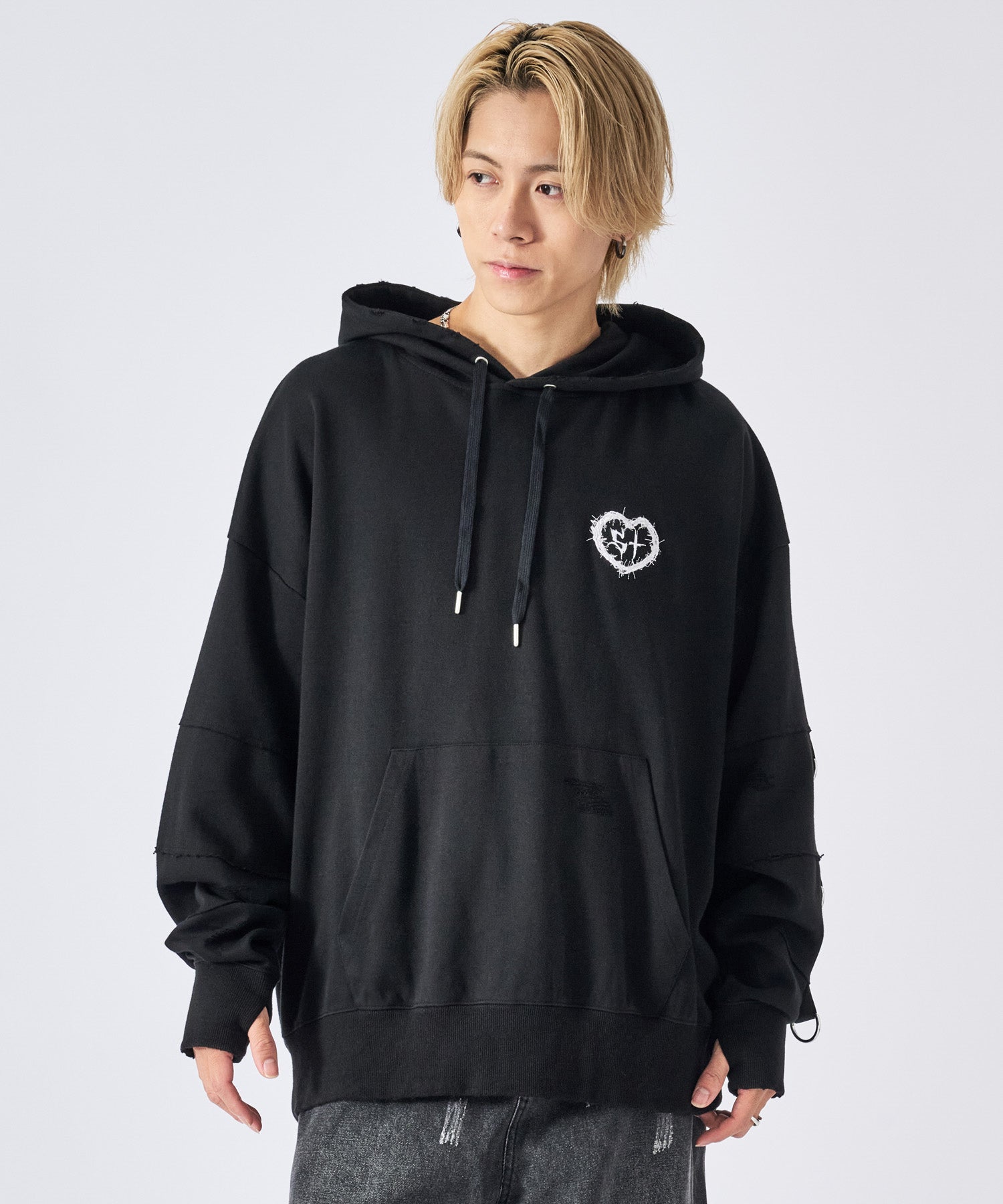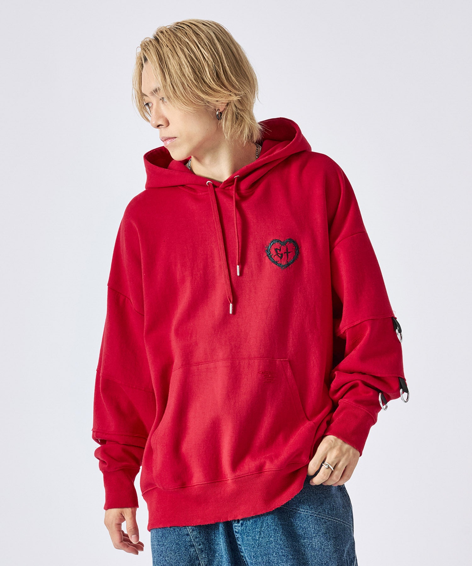 カラーによってクロスの配色が違っており、それぞれの好みにフィットするデザインさりげなくダメージ加工を施し、左袖に配したD管などが雰囲気を高めてくれる袖のリブにはフィンガーホールを配置し、グローブなしでも温かいだけでなく、萌え袖にも使いやすい❤