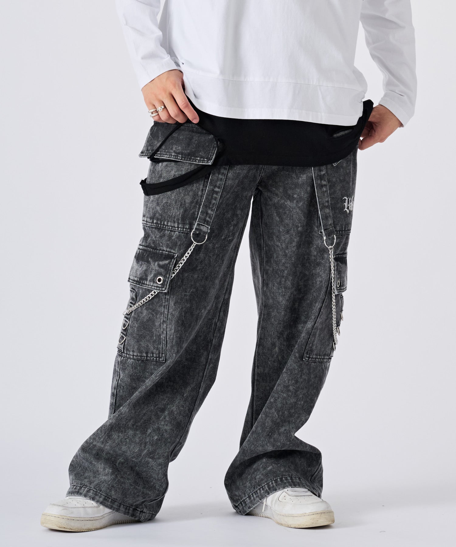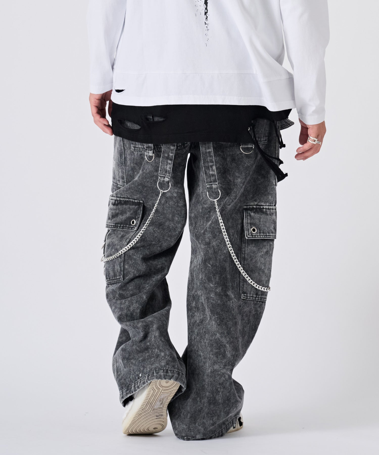 チェーンが付属したバギーシルエットのカーゴパンツ☆