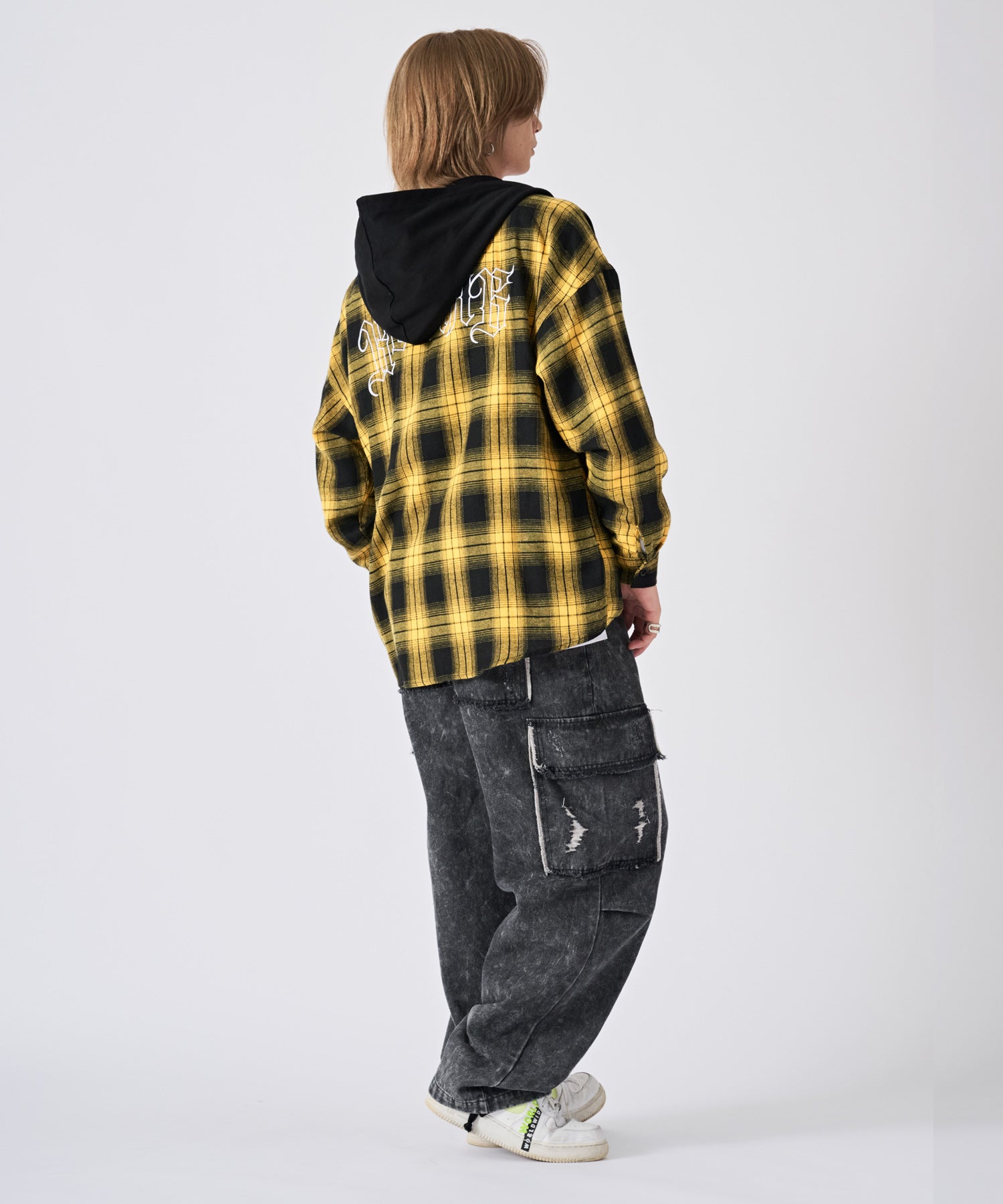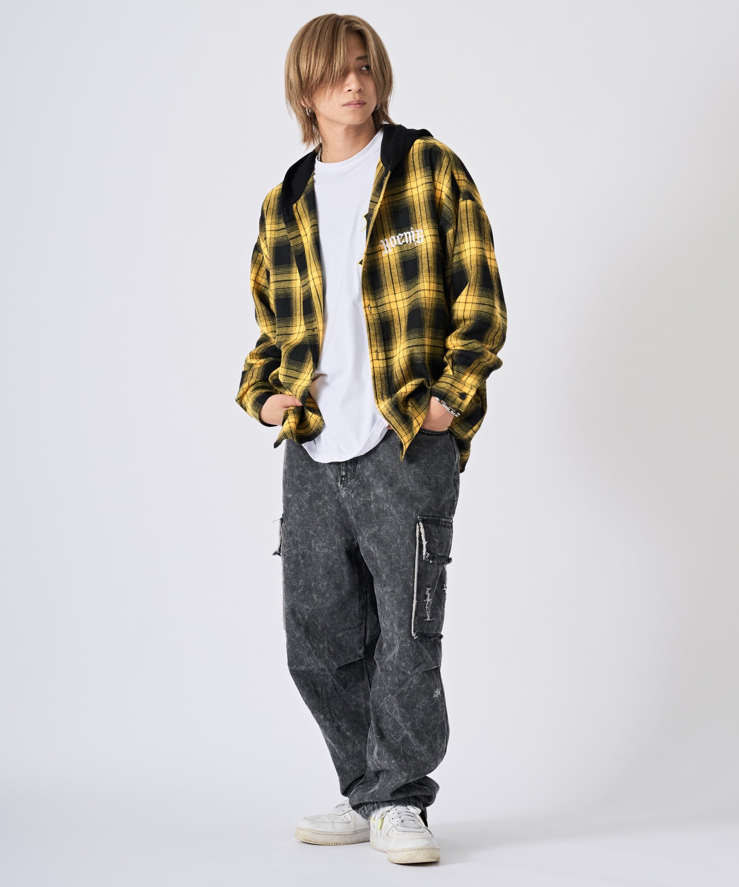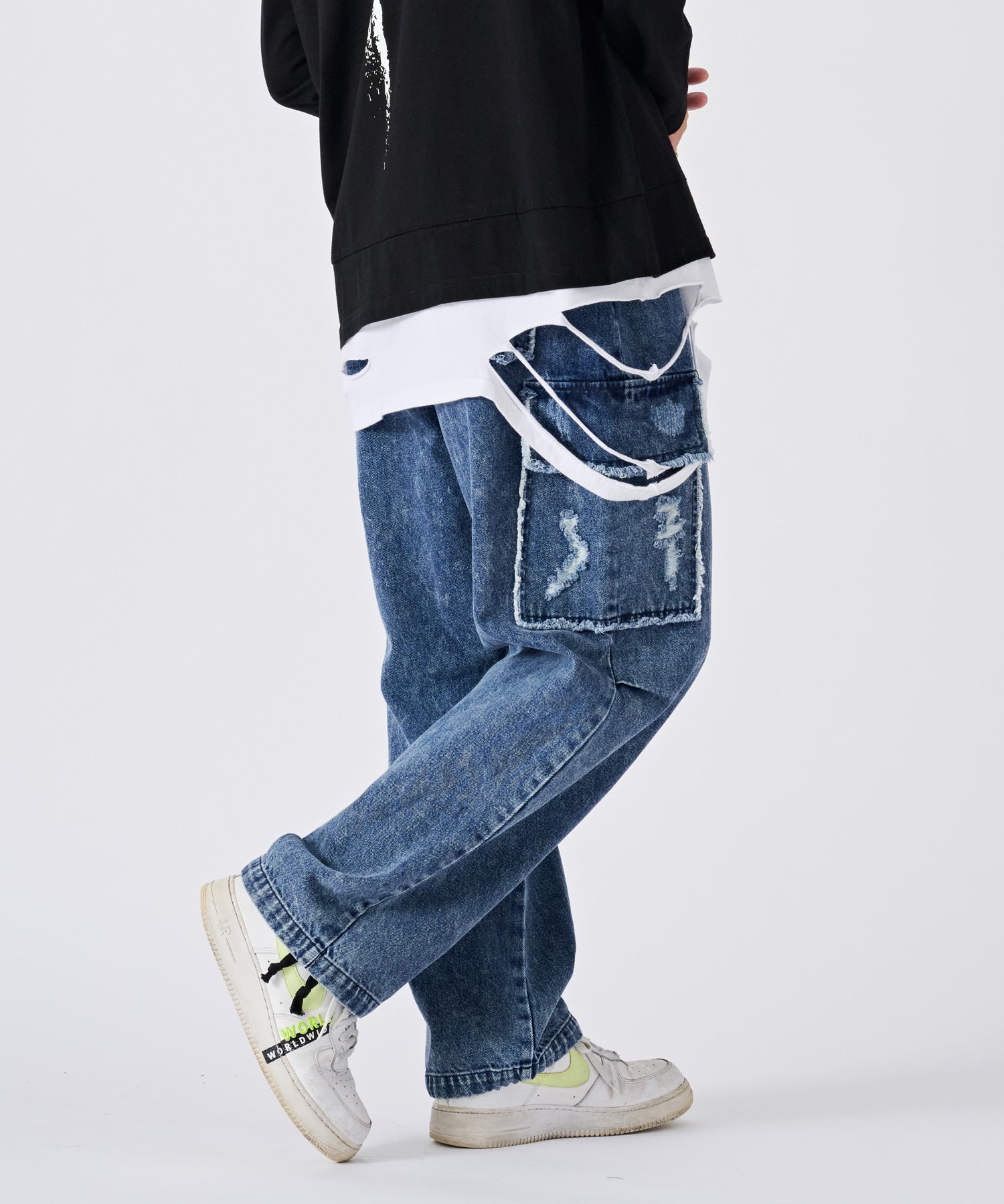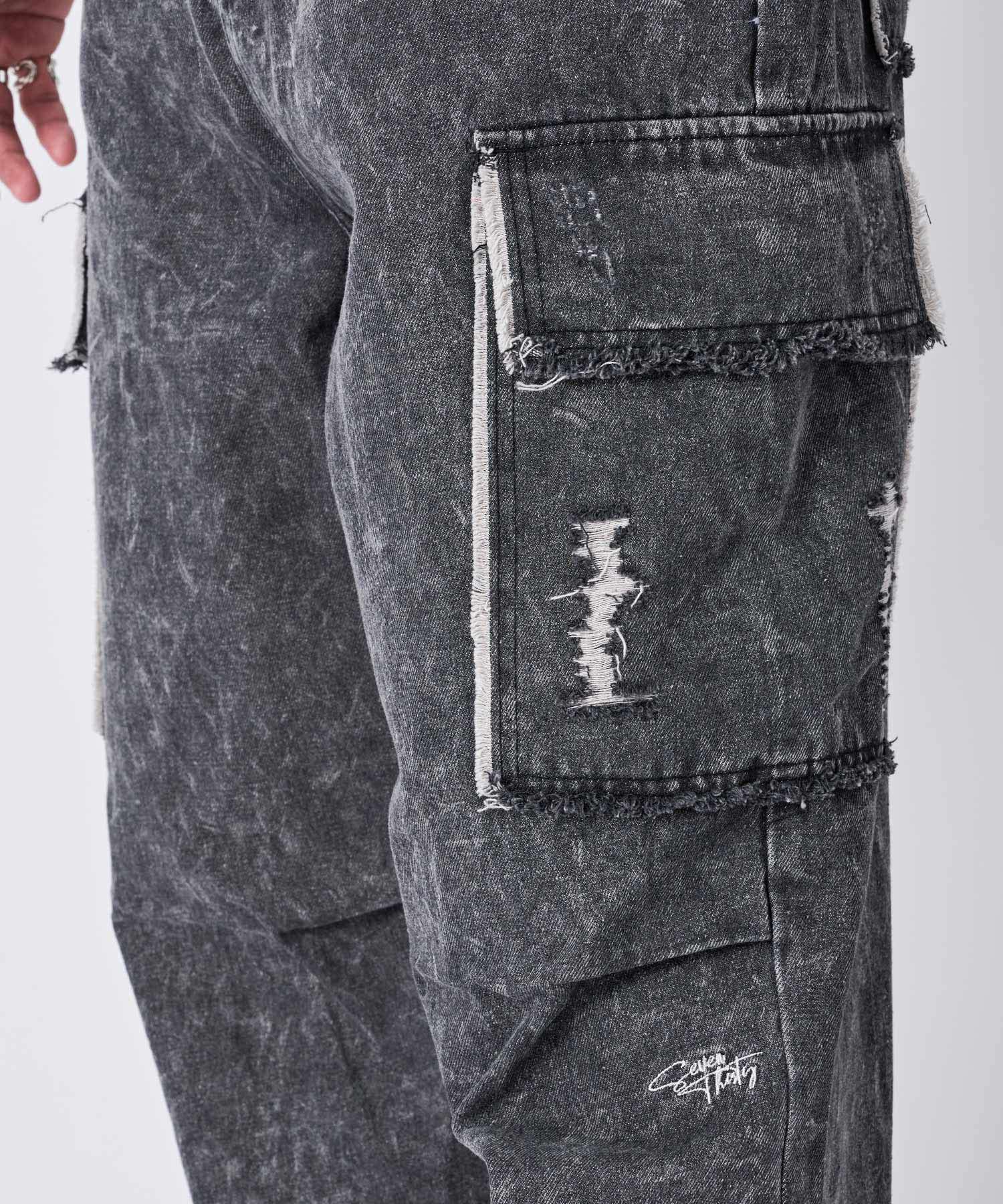 ワイドパンツに適したデニムを使用し、ケミカル加工の色合いがトレンド!
