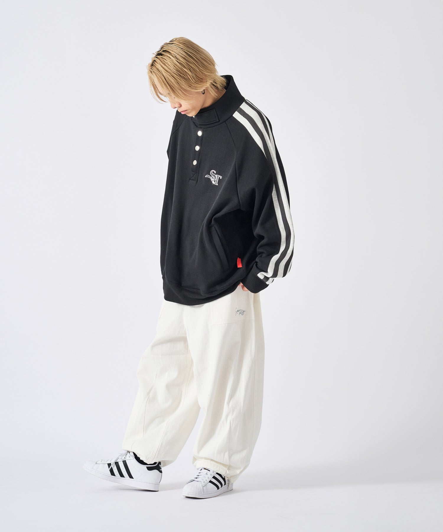大きめに着るのが可愛くワイドパンツは勿論、ユニセックスで着られるのでスカートなどでもOK、ペアコーデにピッタリなアイテムです!