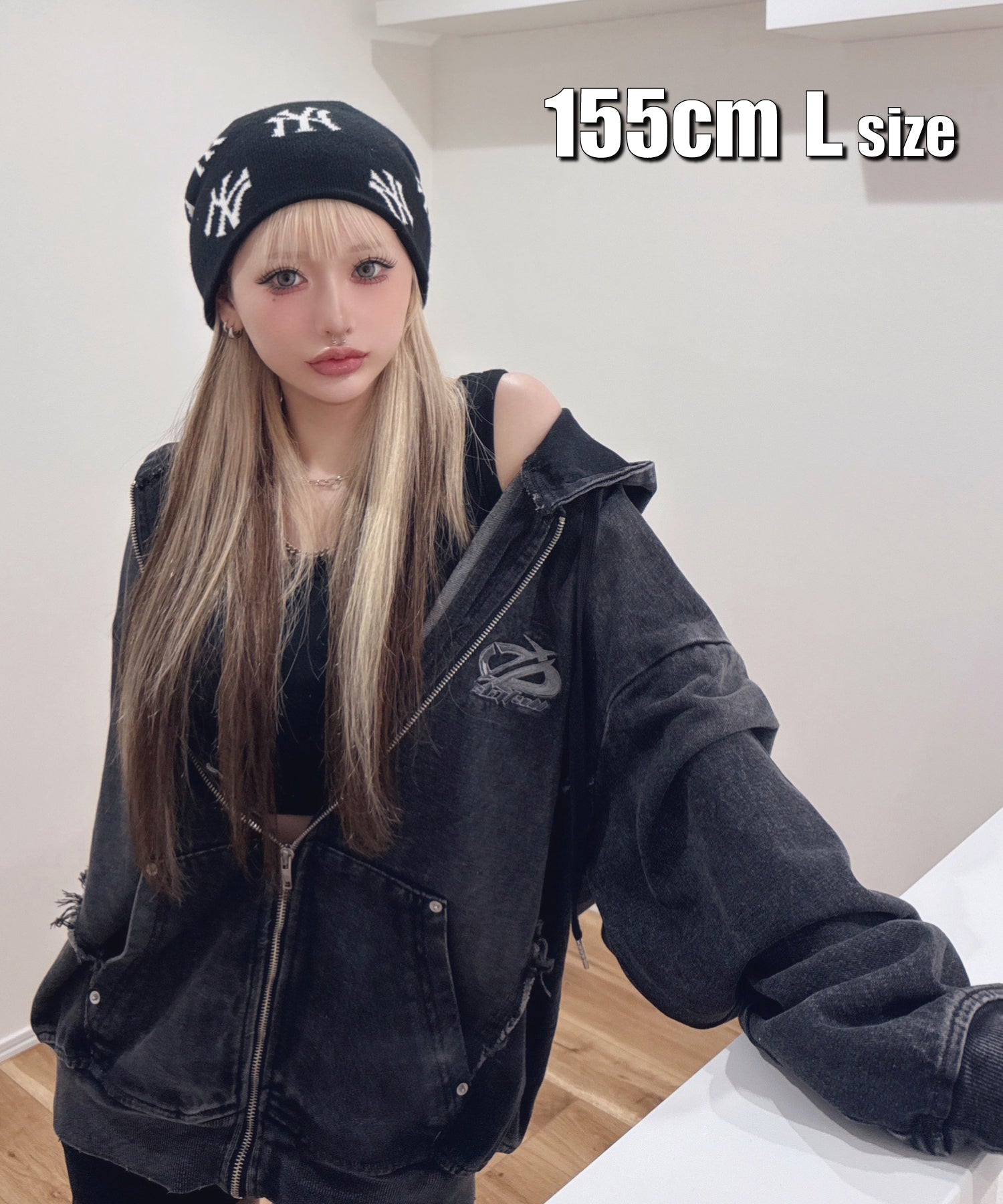オーバーサイズでフロントジップだから羽織やすく、裾と袖がリブになっていて女性も着やすいデザイン☆