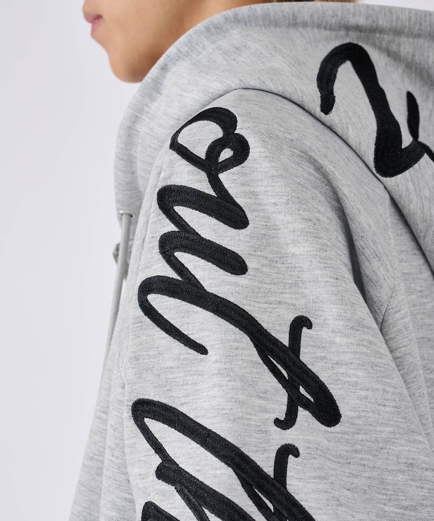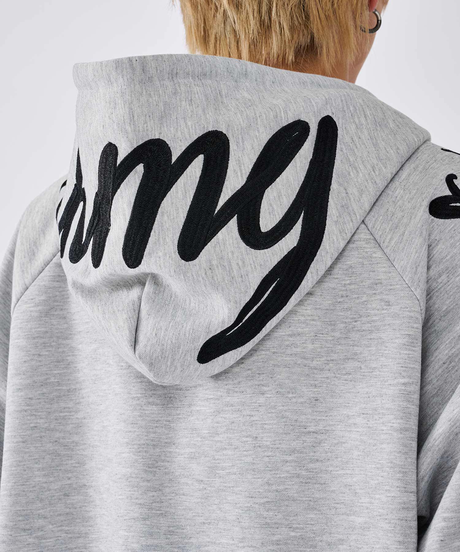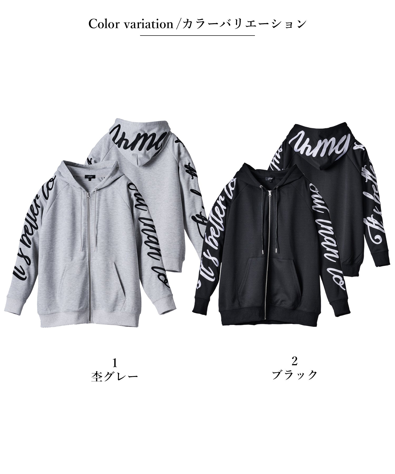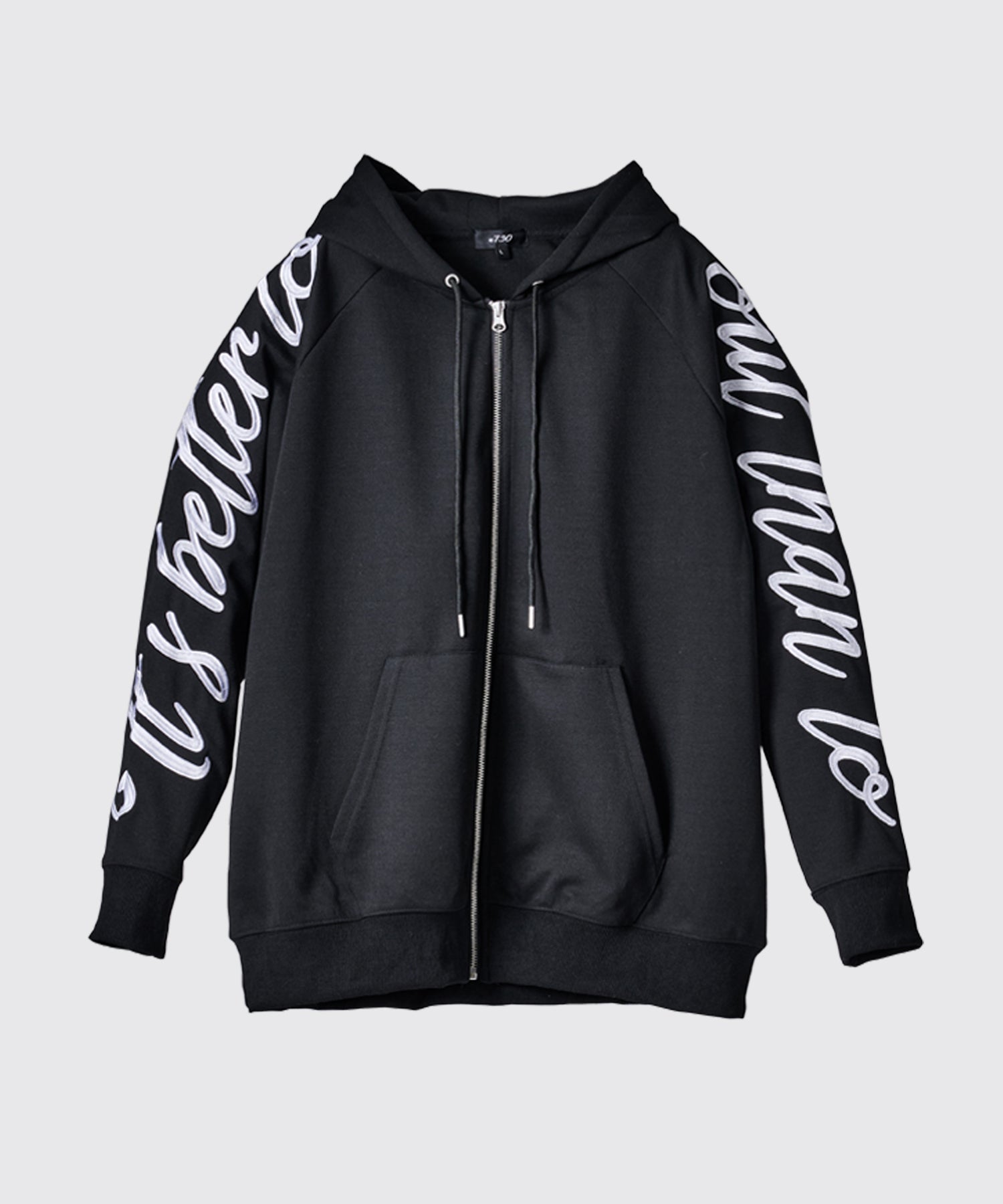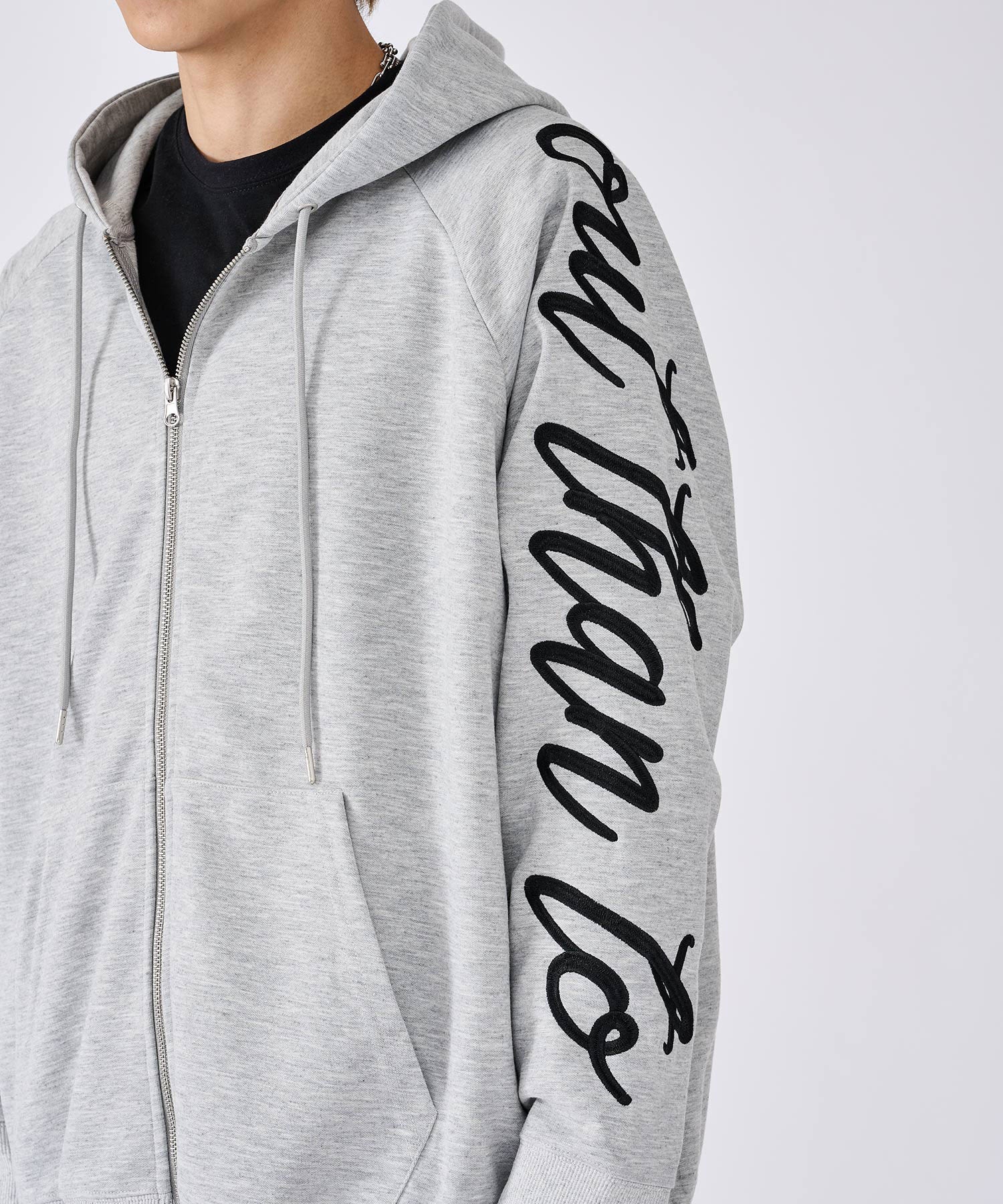 袖の刺繍が印象的なオーバーサイズのジップパーカーです(^^)