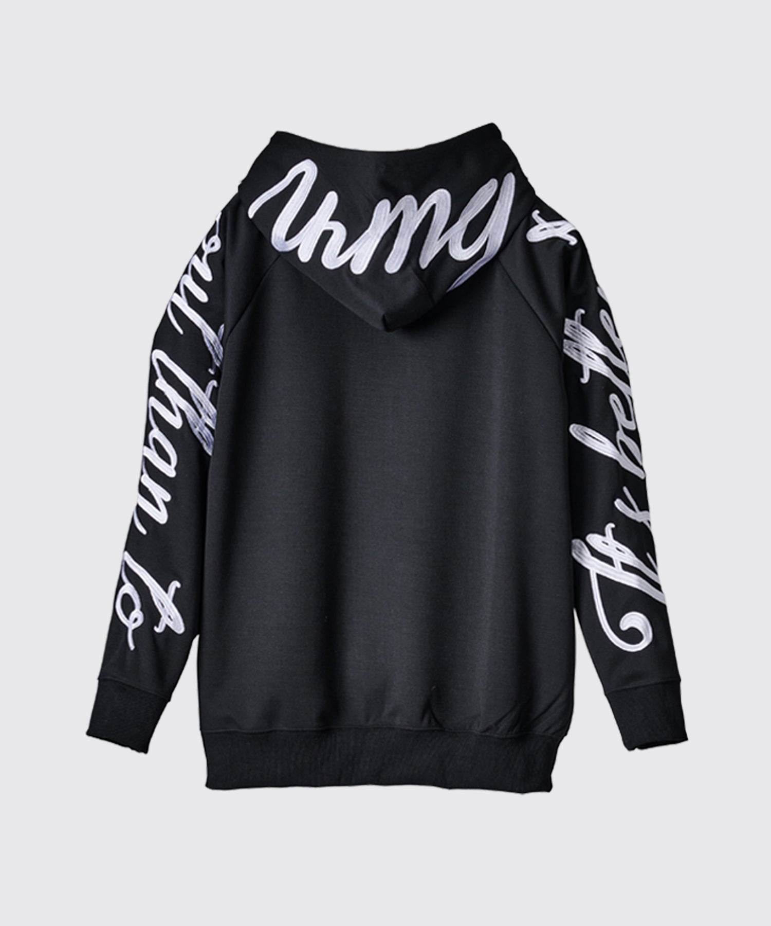 両袖に繋がる大胆な刺繍が印象的!フードにもあるんです☆