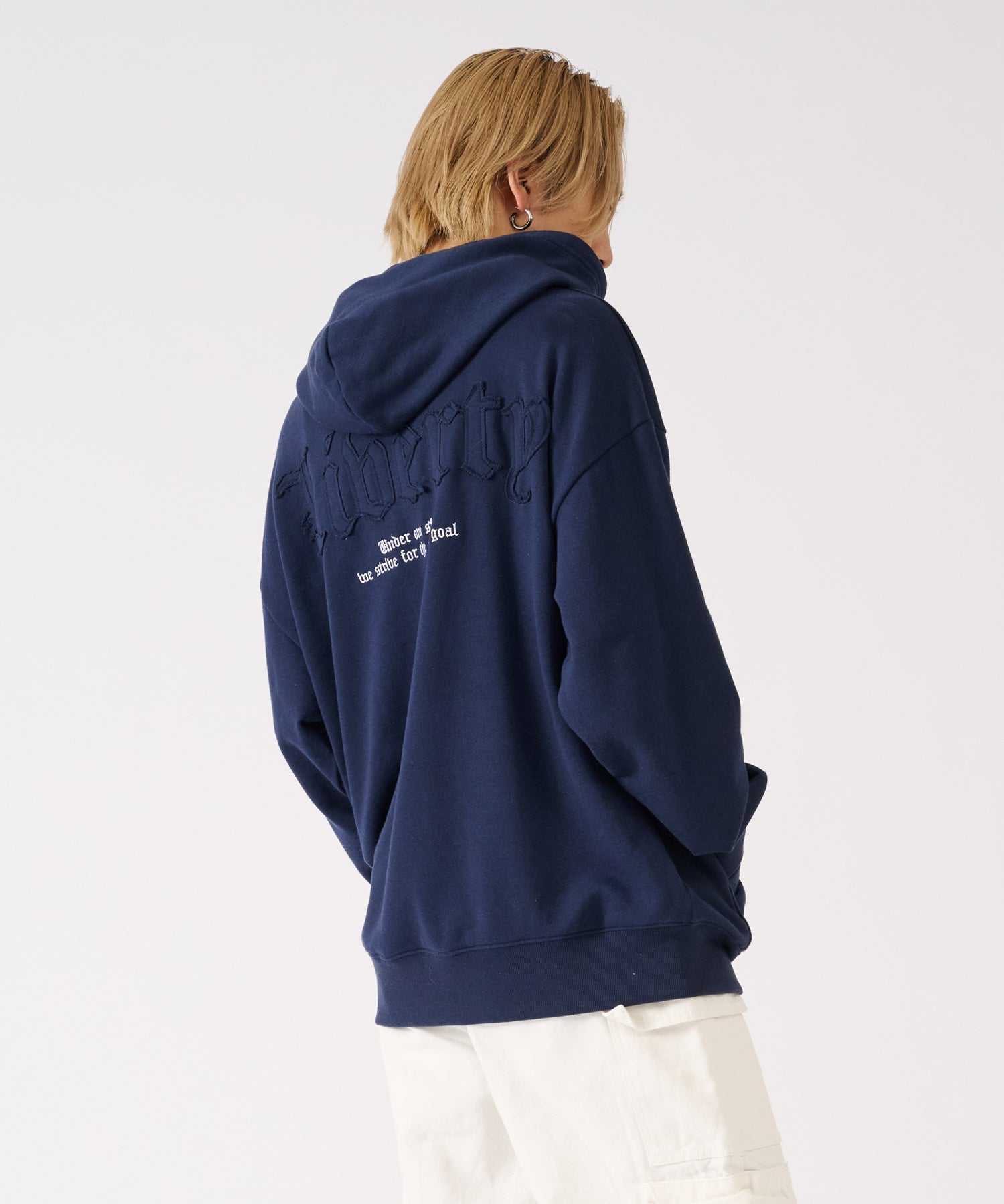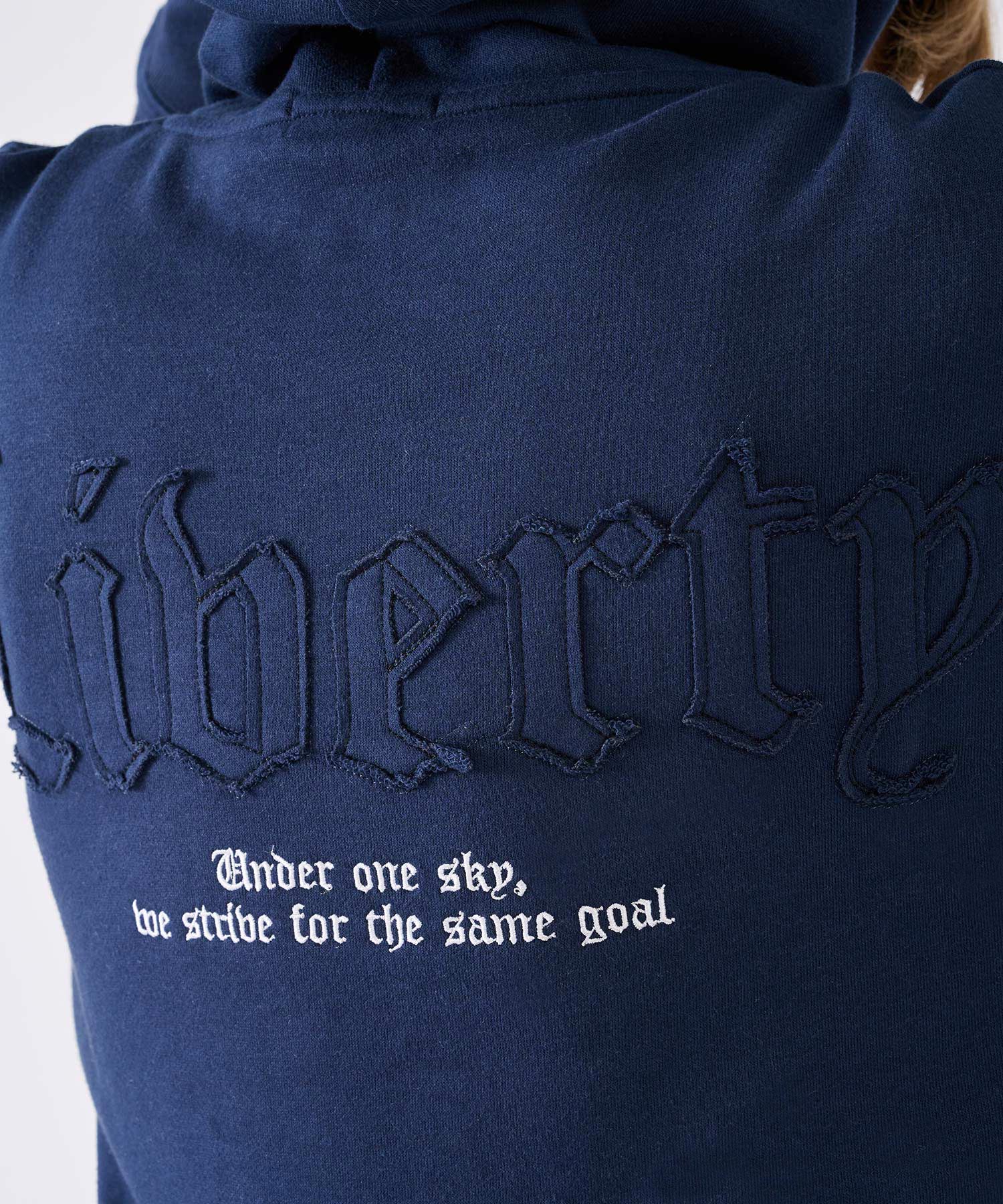 背中に配置したロゴはボディと同素材を使用し、端を切りっ放したアップリケロゴが目立ち過ぎないところがあえていい感じ♪