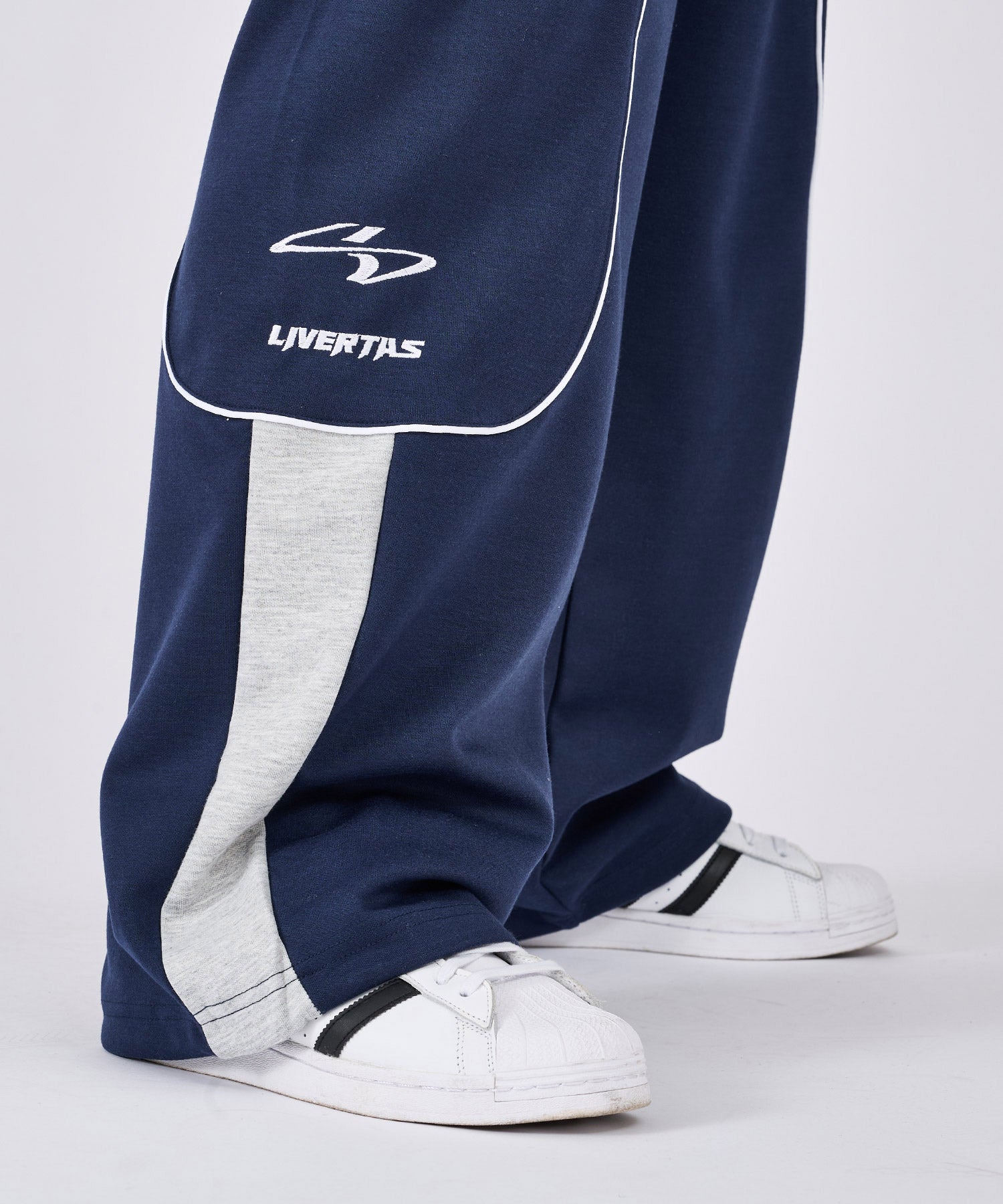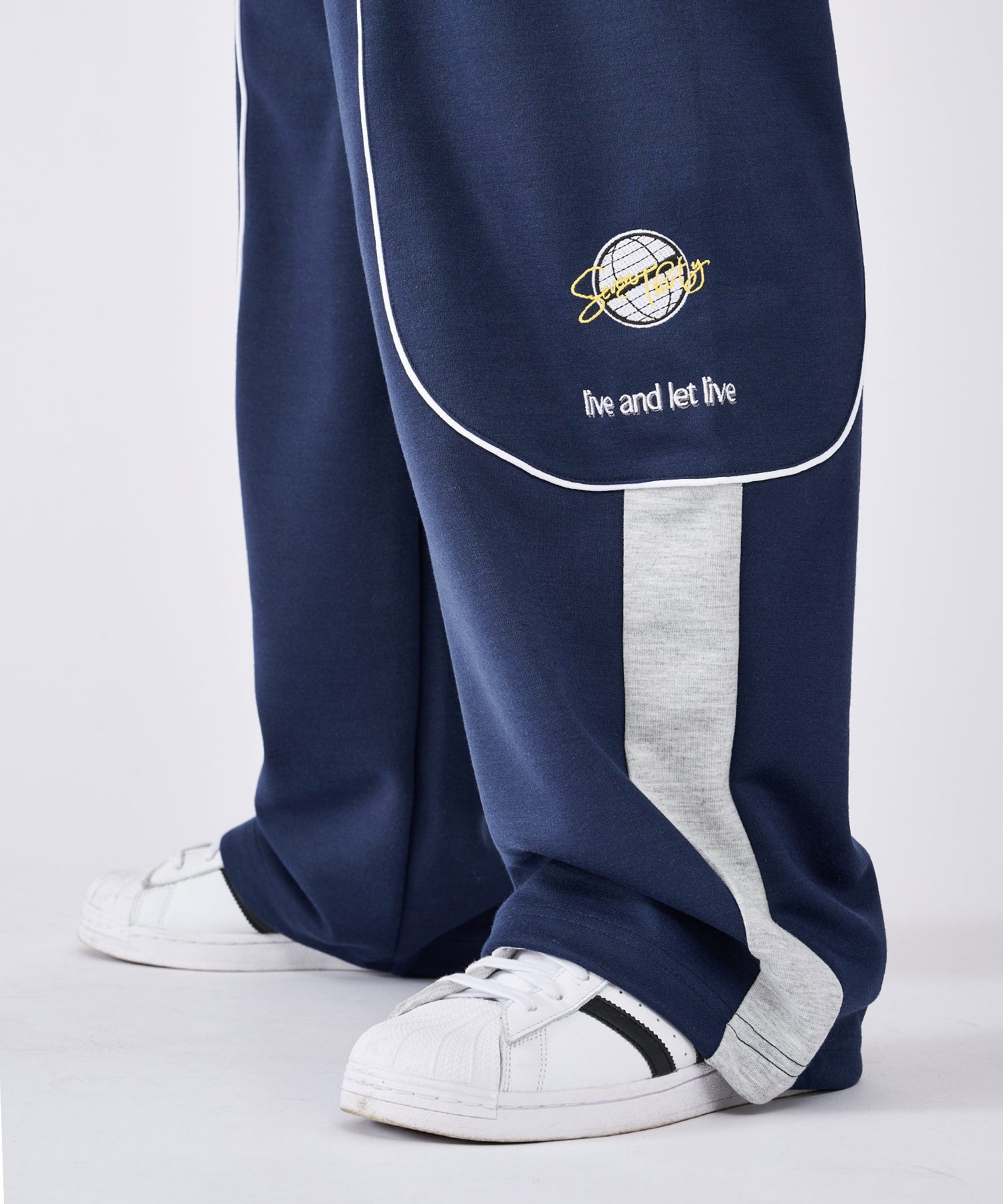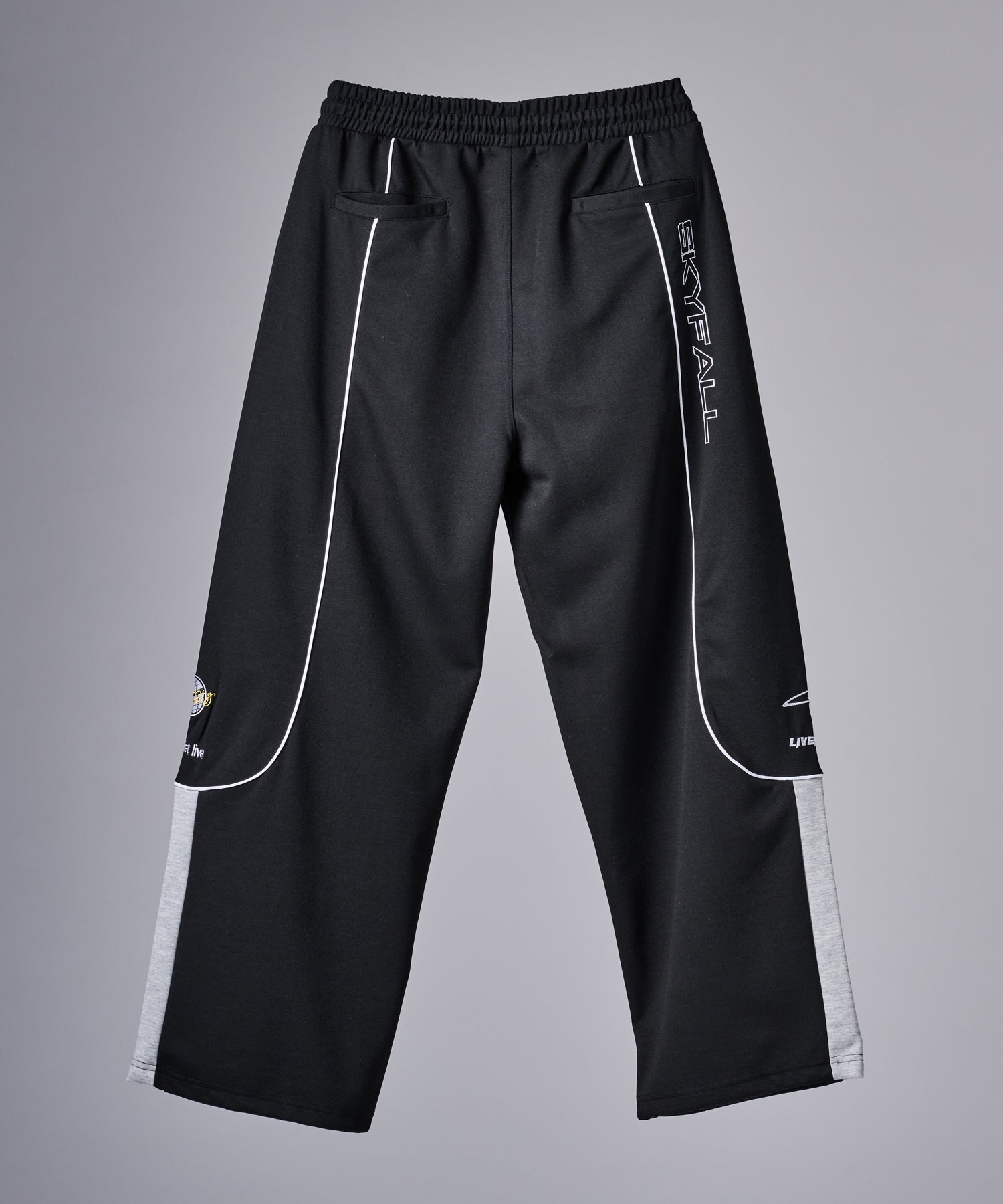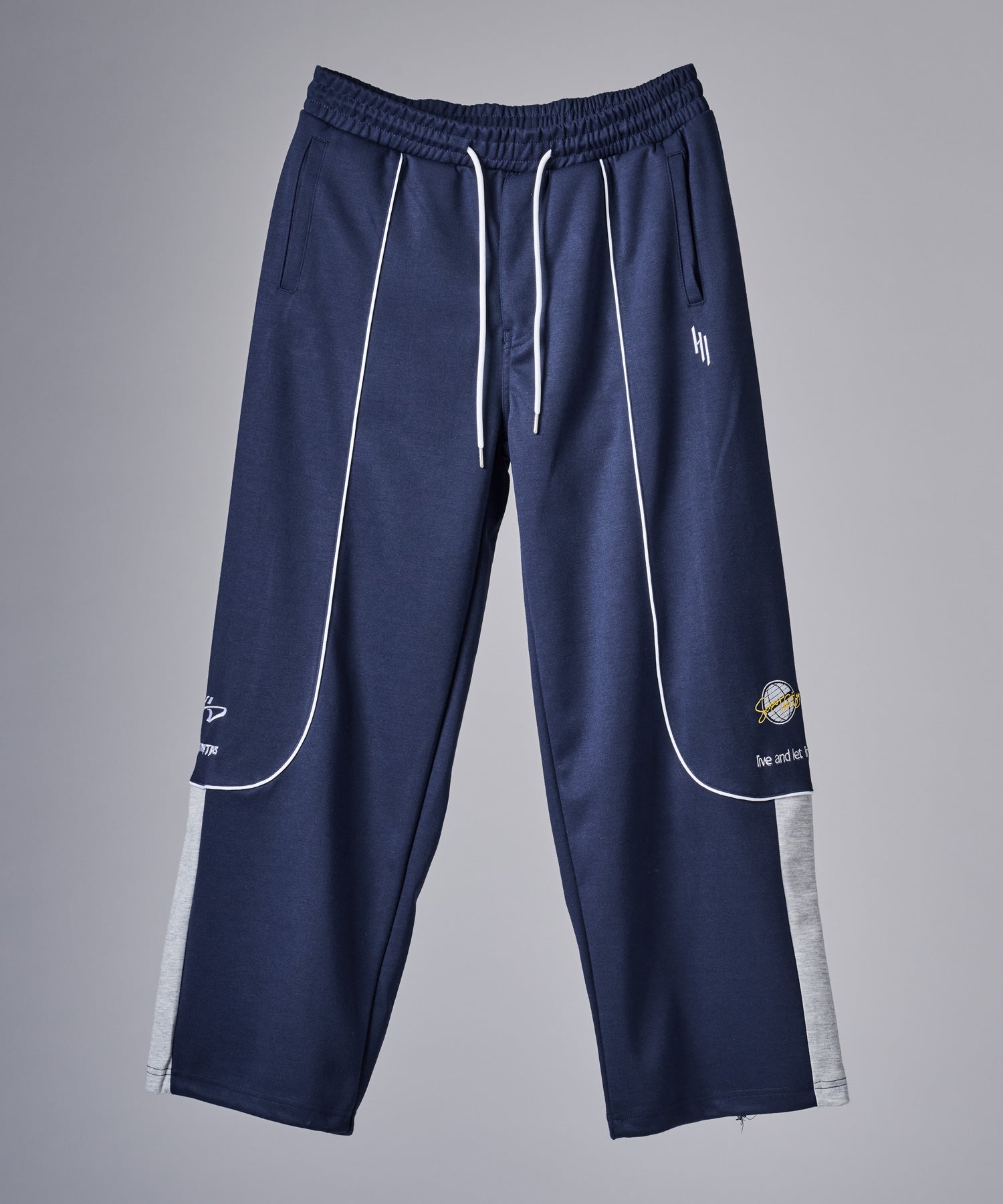 裾が絞られておらず、ドローコードで調整するトラックパンツ仕様!