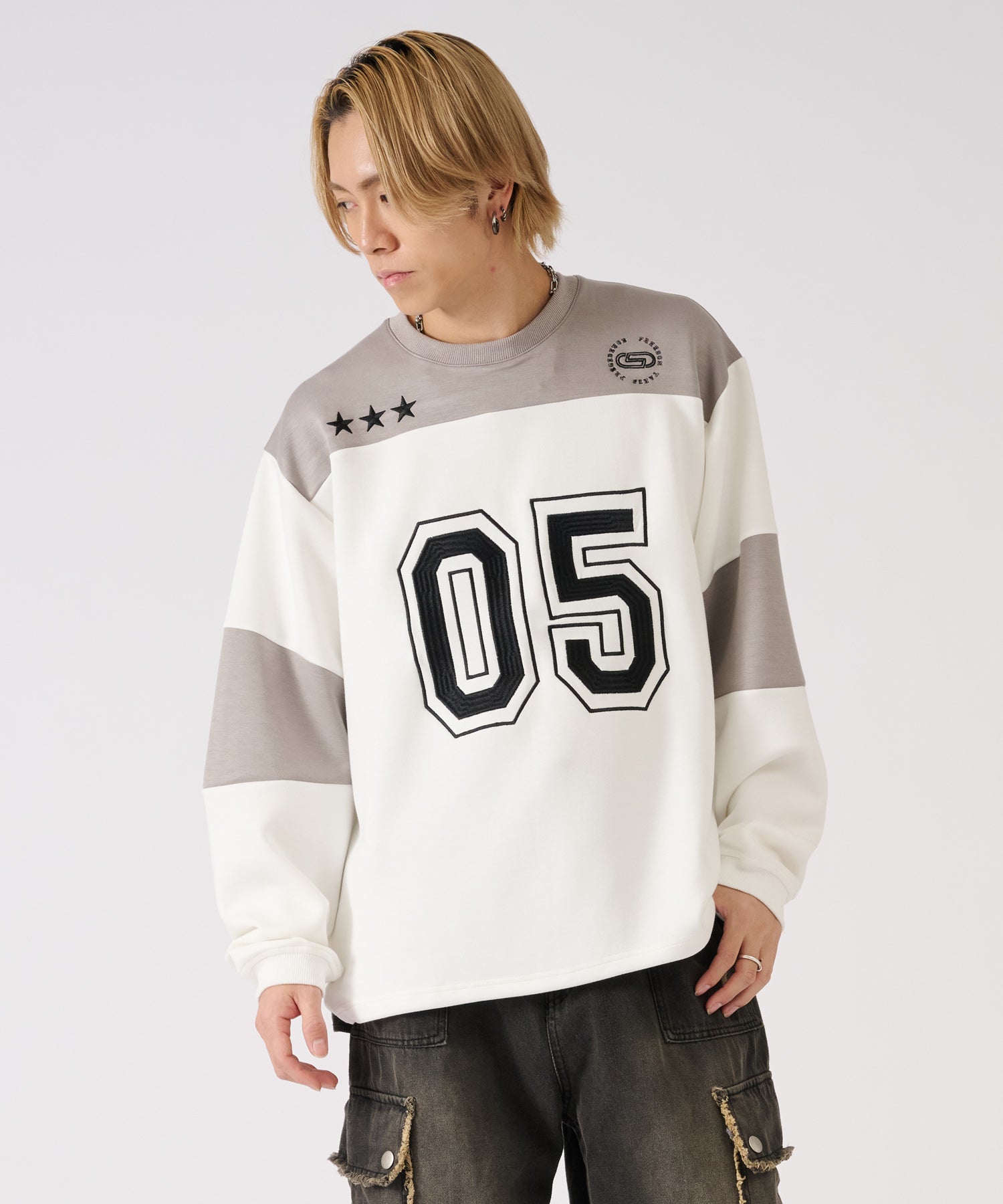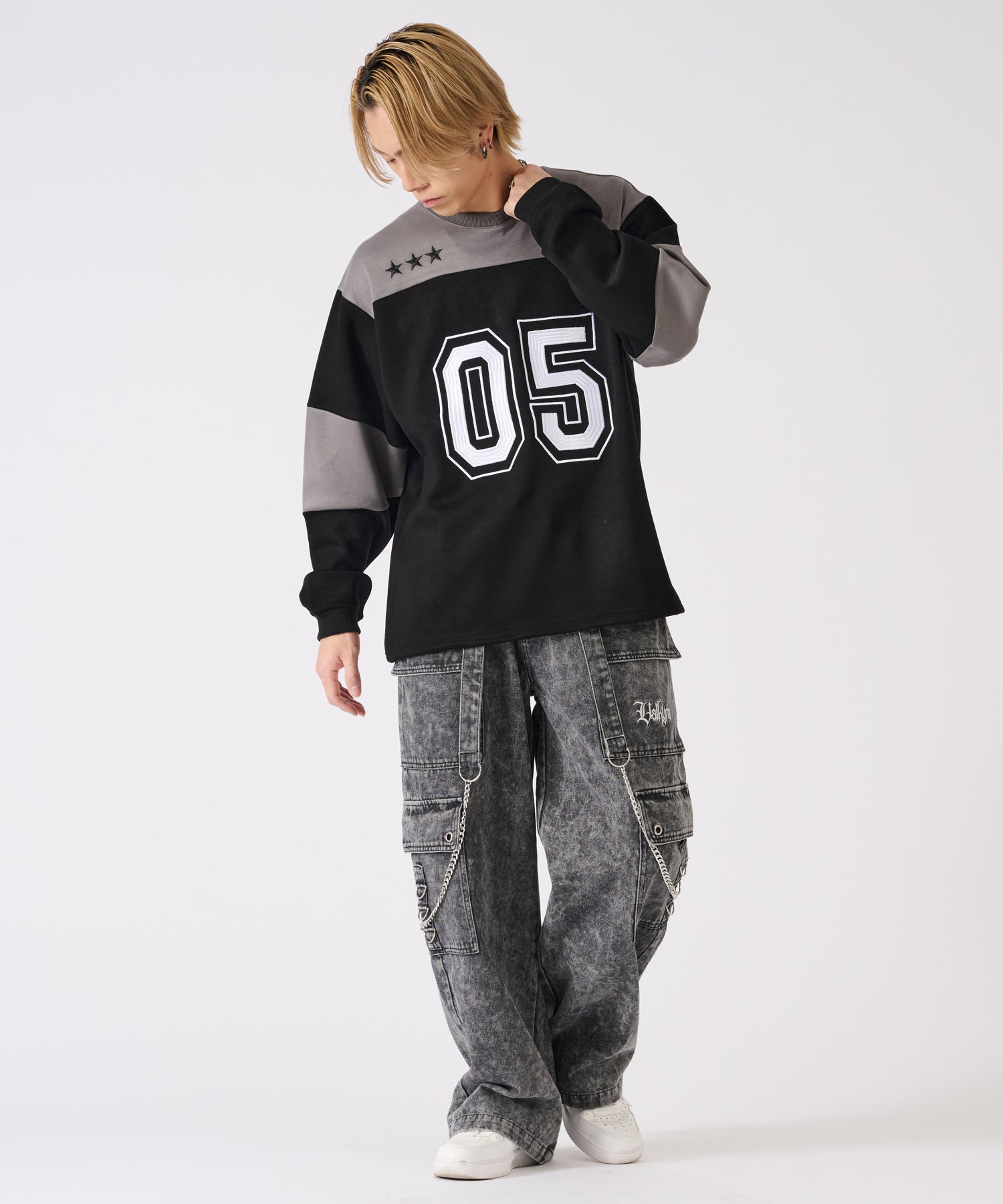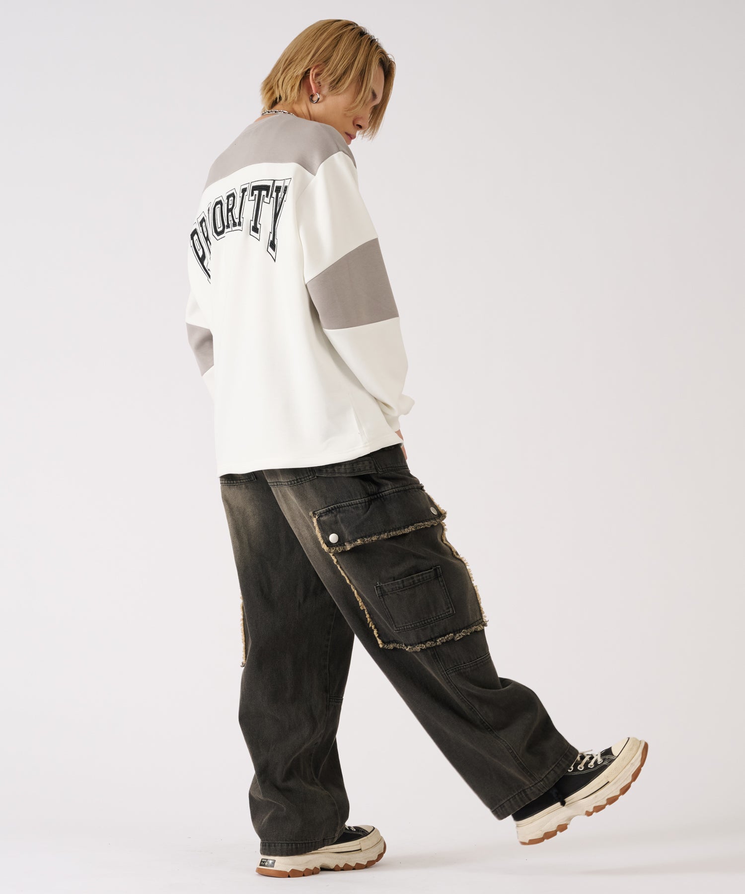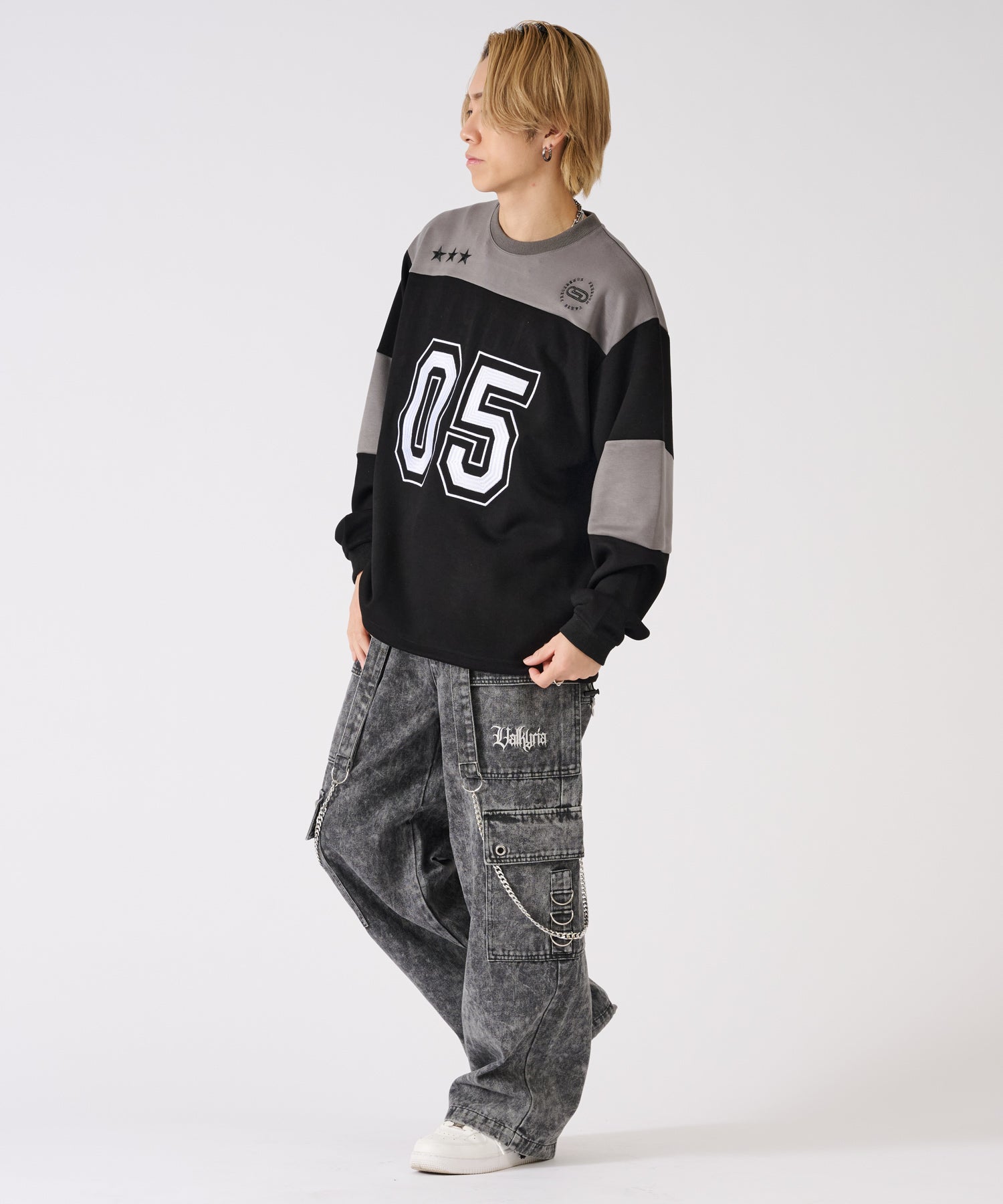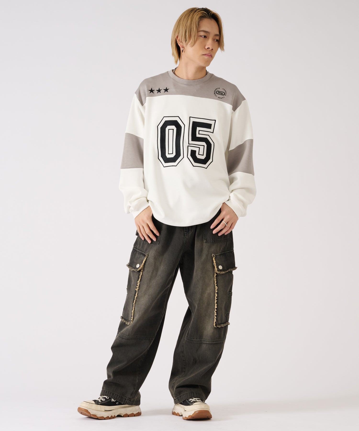 アメカジ感あるデザイン性がデニムとの相性抜群で、オーバーサイズのシルエットは重ね着しやすくストリートにピッタリのアイテムになります☆